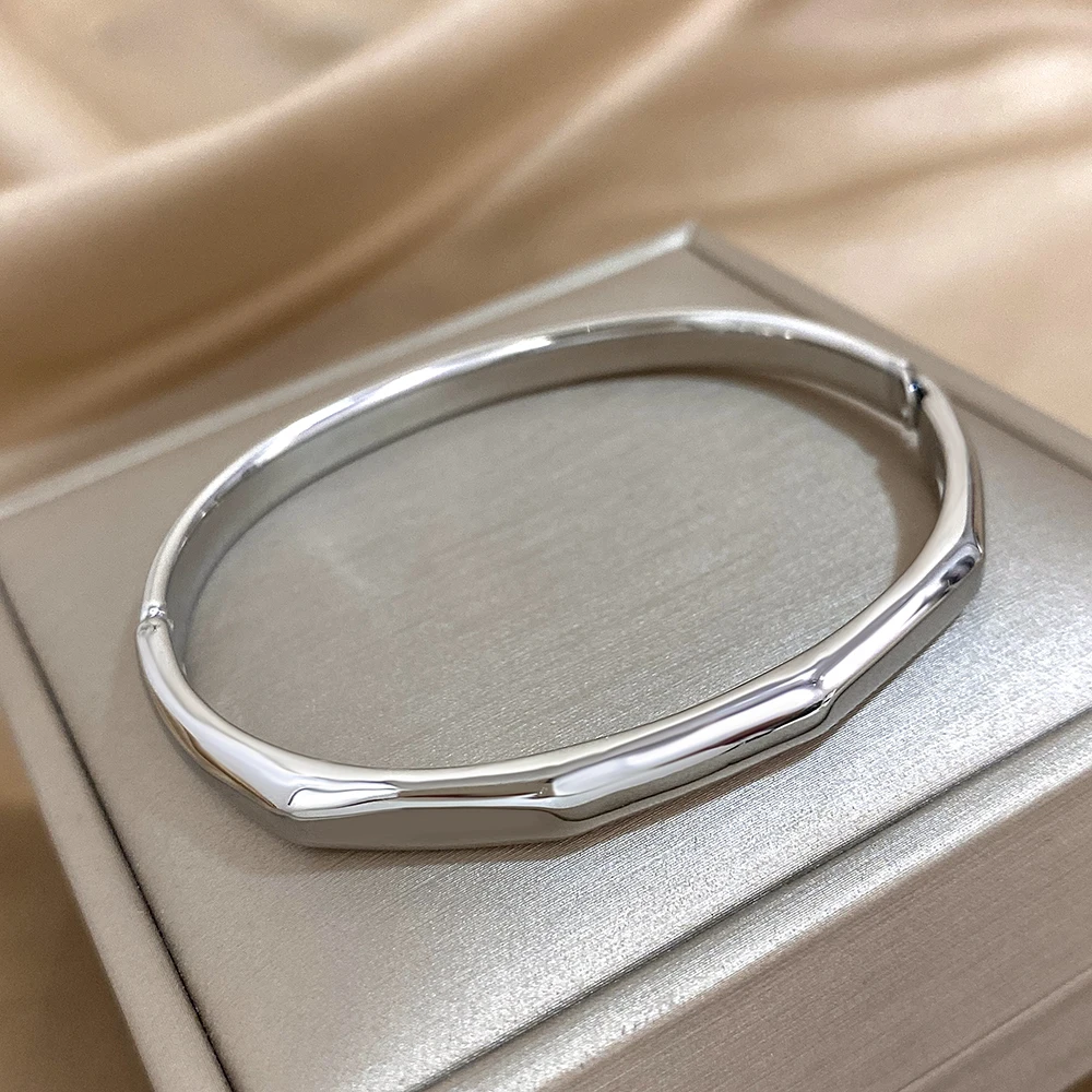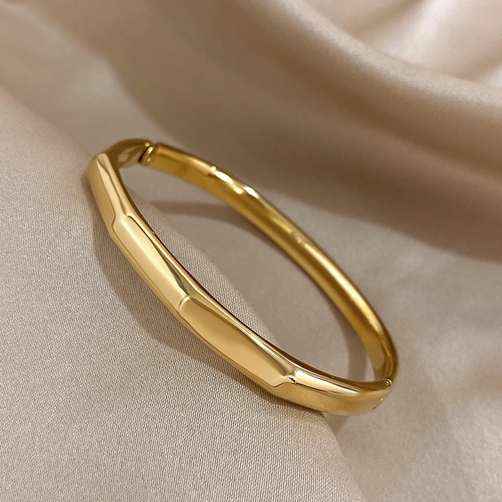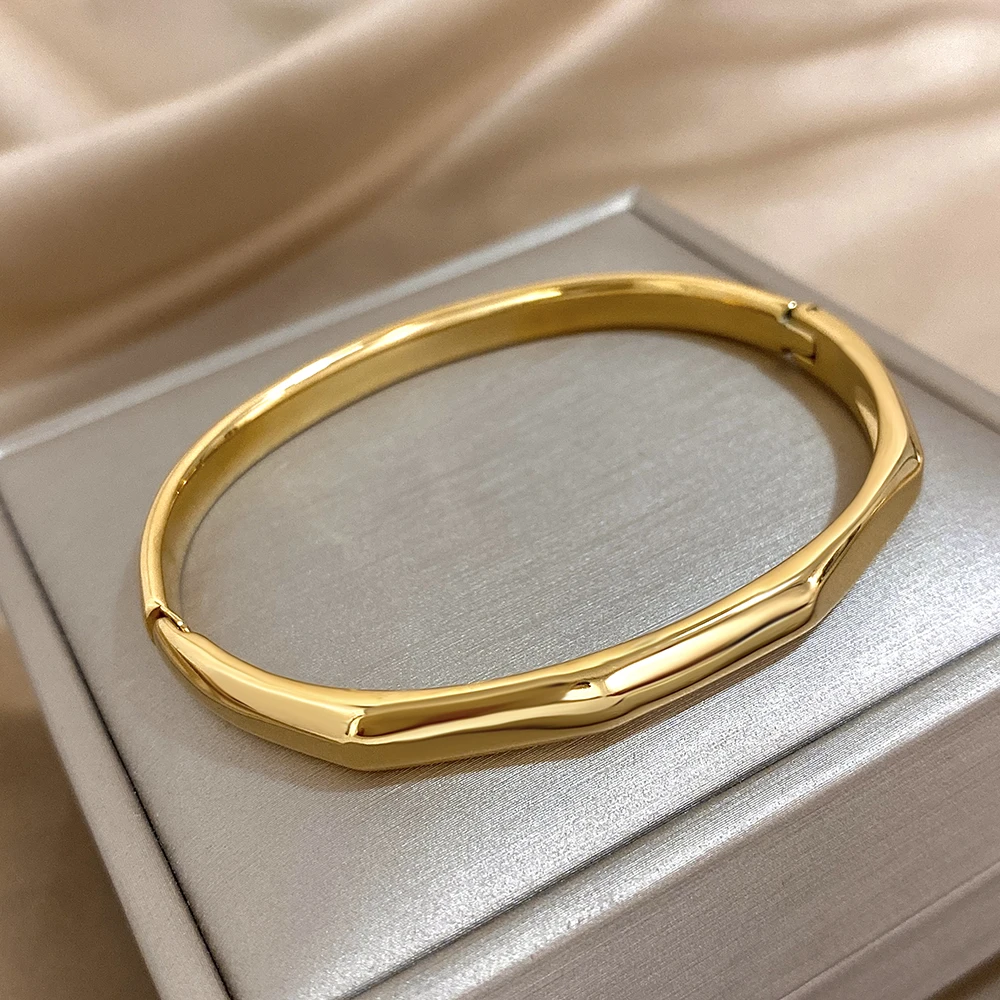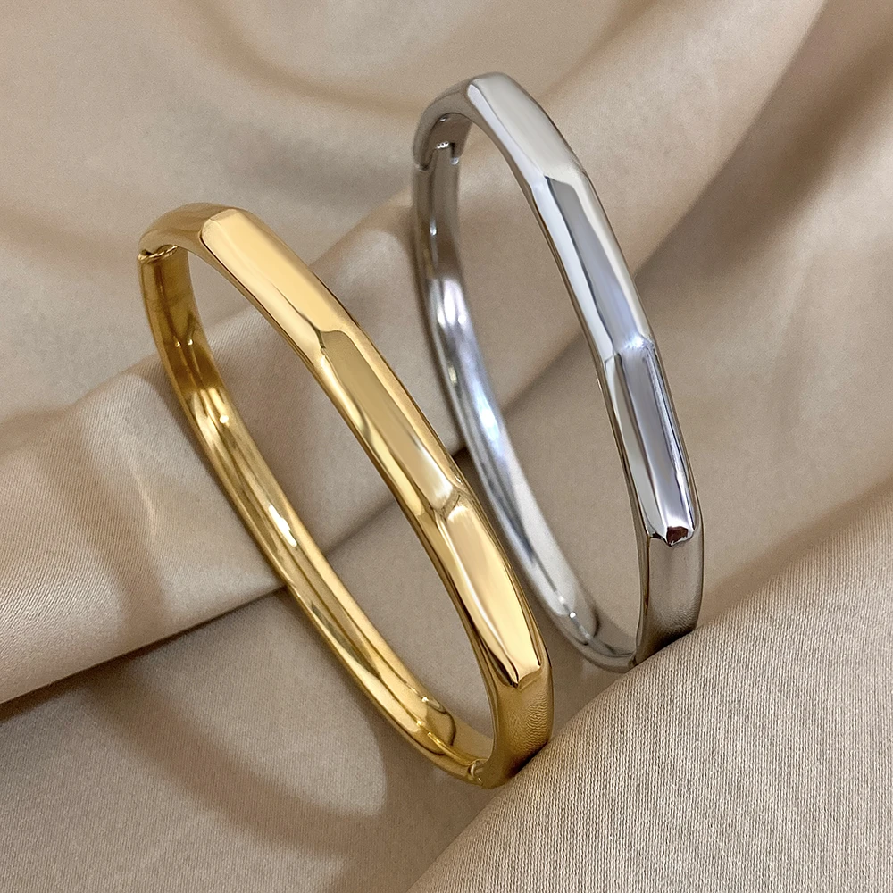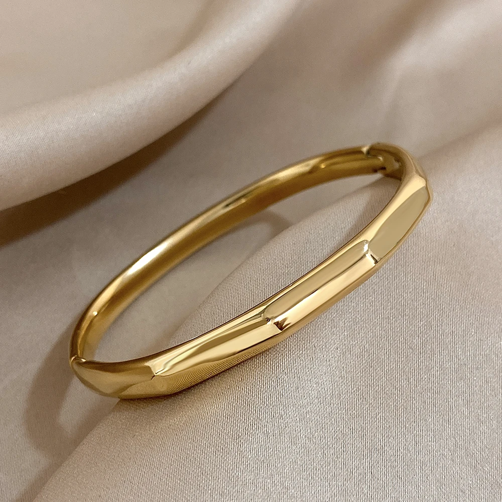 Trendy Classic Geometry Plain Gold Color Stainless Steel Bangles Bracelet For Women Stackable Wrist Jewelry Gift