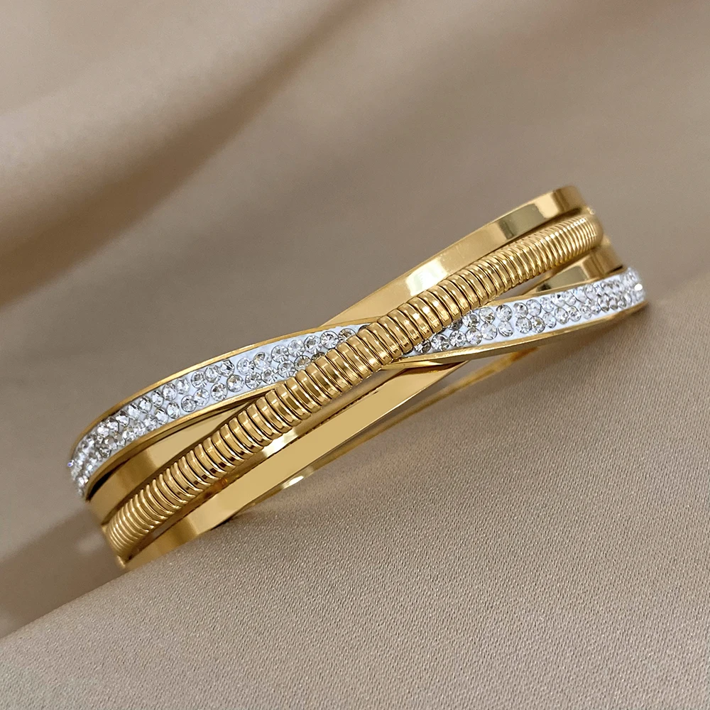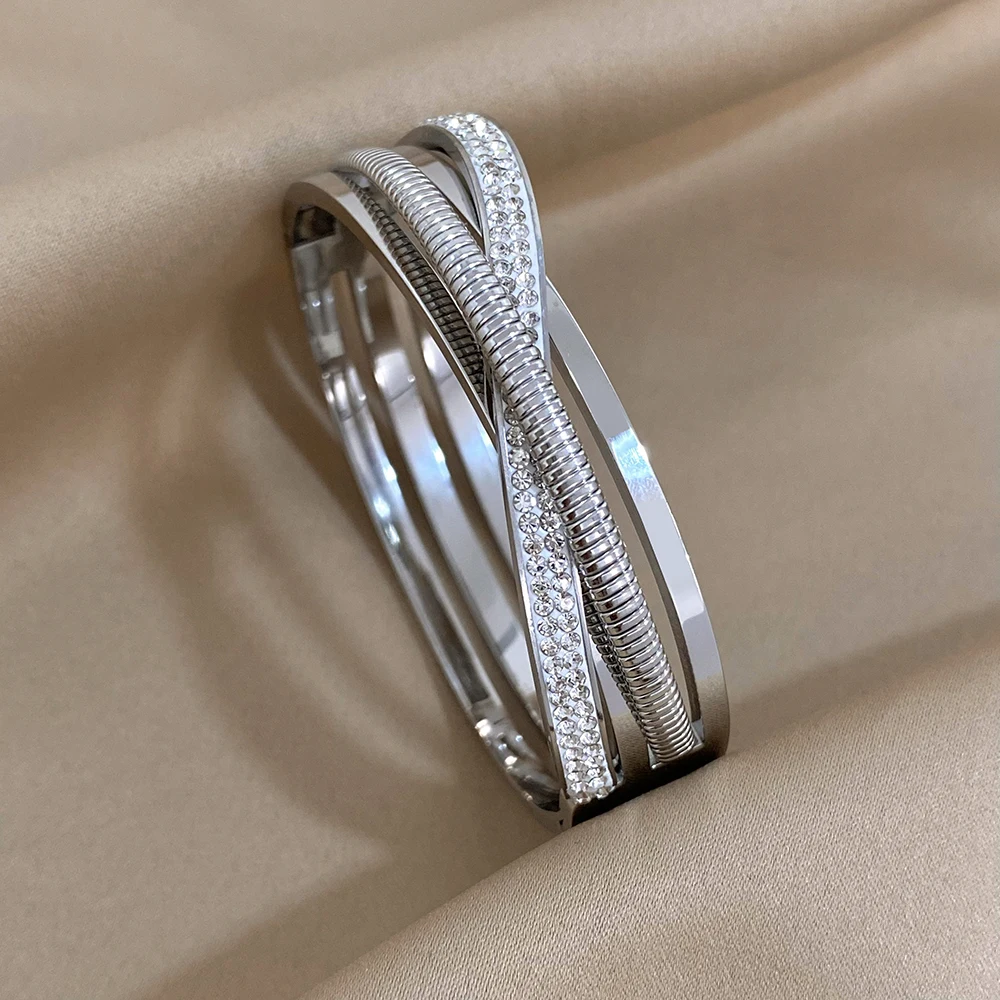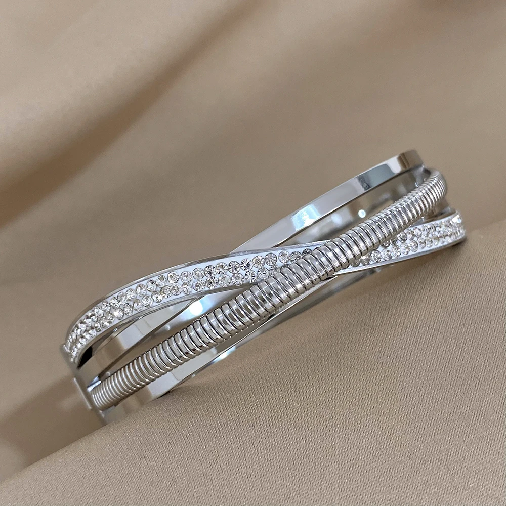 Unique Cross Stainless Steel Bracelet Women's Rhinestone Cuff Bangle Layered Thread Bracelets Vintage Party Jewelry Accessories