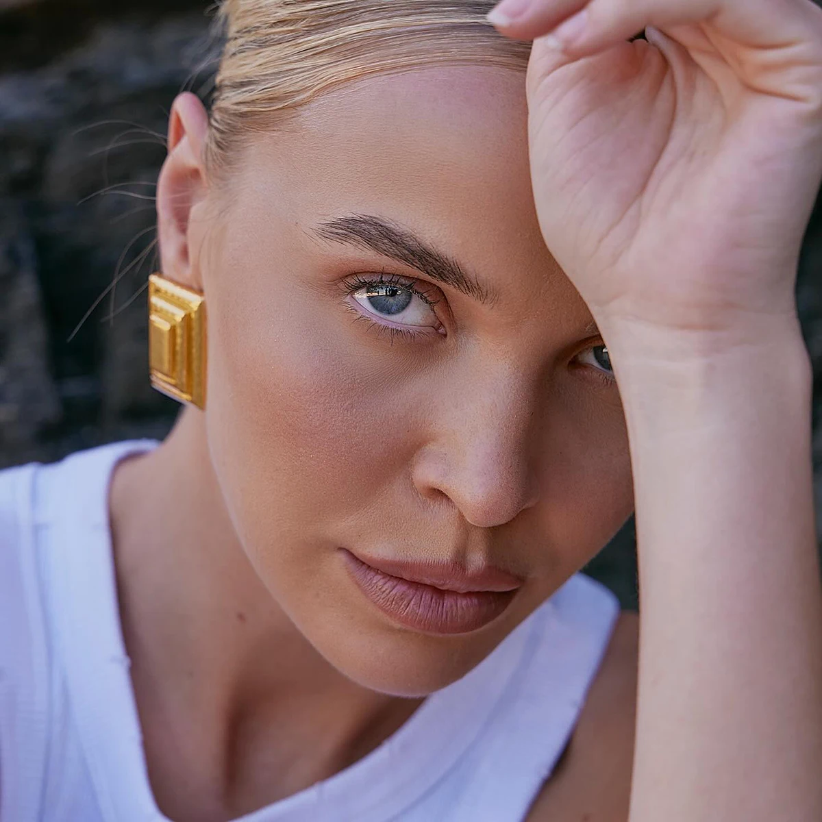 Uworld 316l Stainless Steel Square Metal Stud Earrings Rust Proof 18K PVD Plated Texture Versatile Daily Jewelry for Women