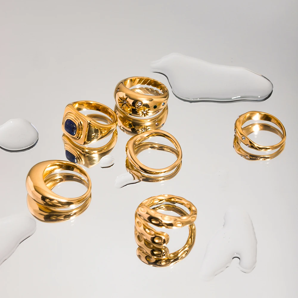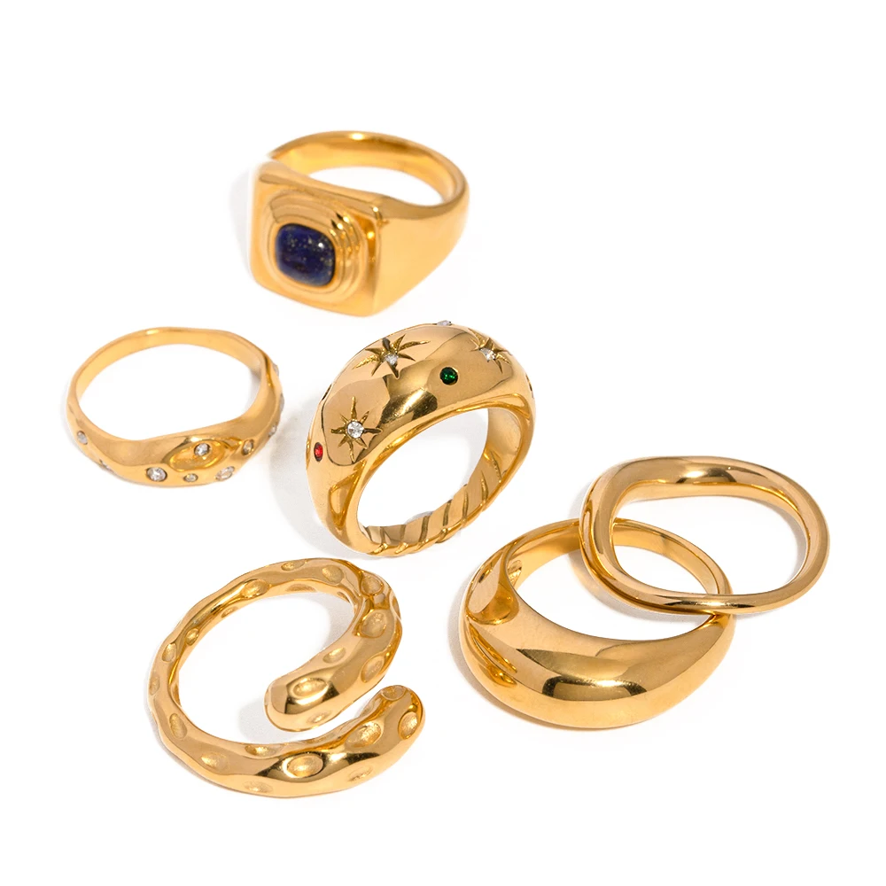 Uworld Croissant Ring 18K Gold Plateding Stainless Steel Statement Ring Engraved stripes Braided Twisted Rope Signet chunky Ring