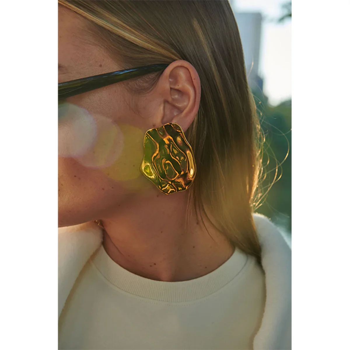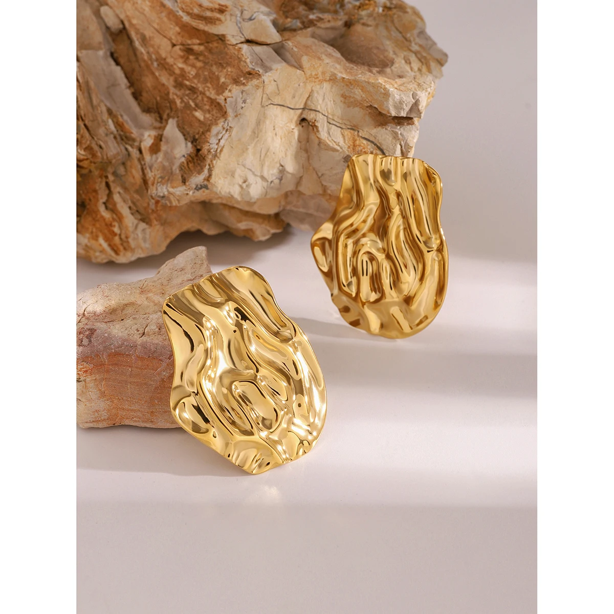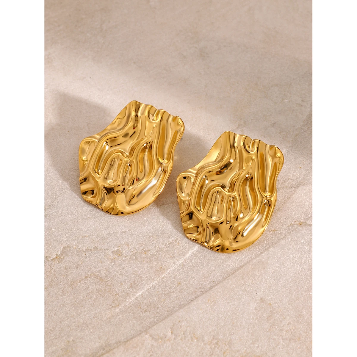 Uworld Stainless Steel Metal 18k Gold-Plated Abstract Shaped Earrings Women Daily Wear Jewelry Pendientes De Acero Inoxidable