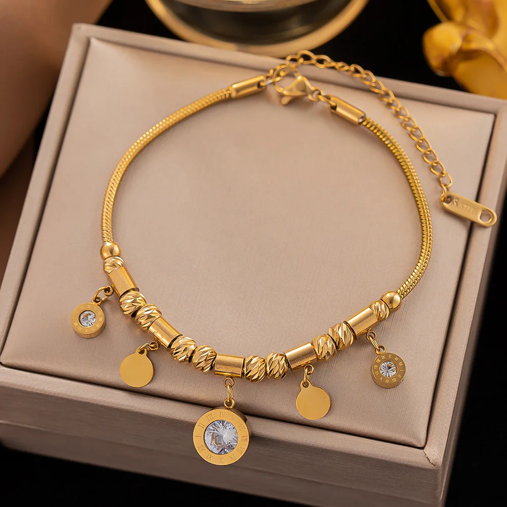 Waterproof Stainless Steel Titanium Bracelet for Women Love Heart Round Pendant Link Chain Charms Men Fashion Jewelry 2023 New