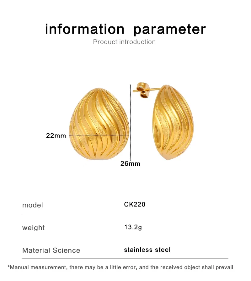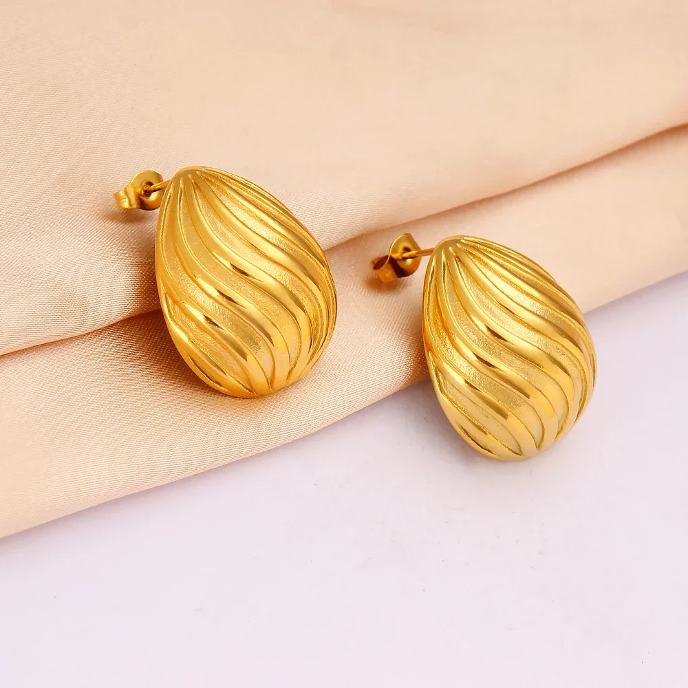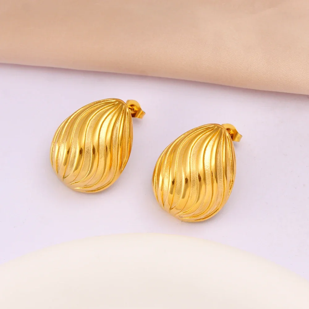 Waterproof Textured Stainless Steel Water Drop Half Empty Earrings Hot Style Popular Metal 18K Gold Plated Jewelry