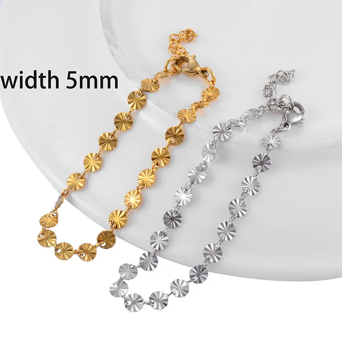 Width 5mm Stainless Steel Handmade Chain Gold Color Round Bracelet High Quality Men's and Women's Jewelry