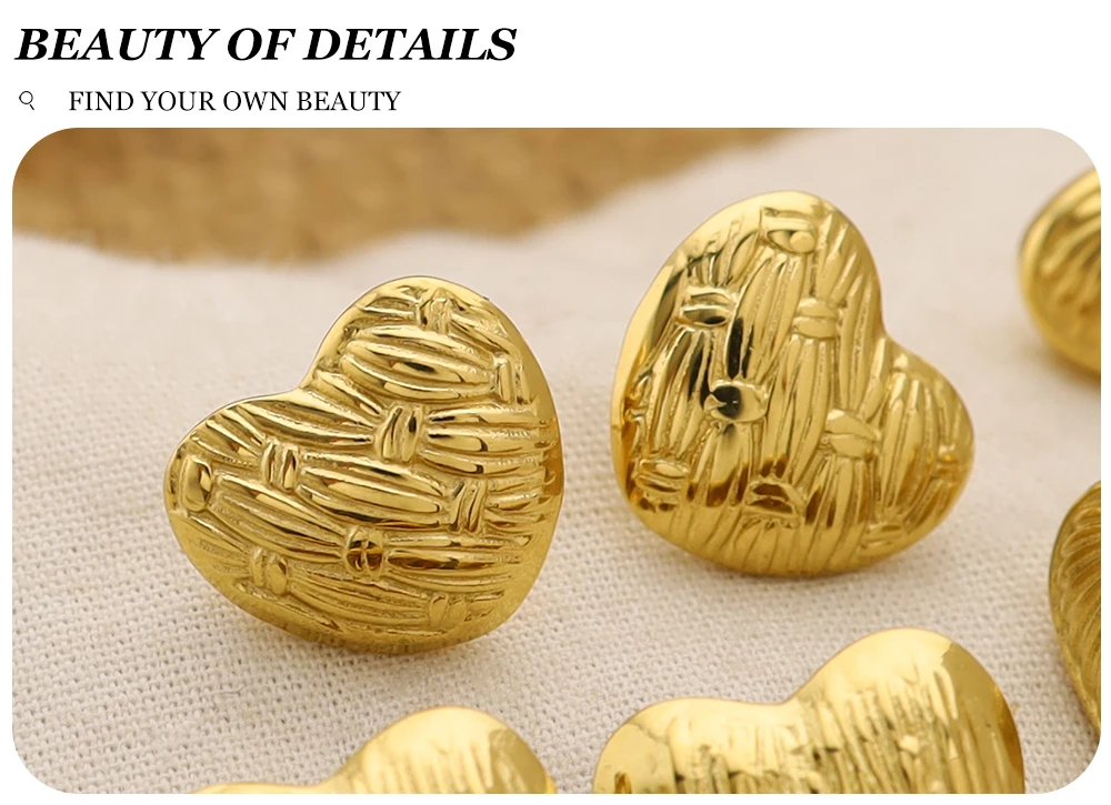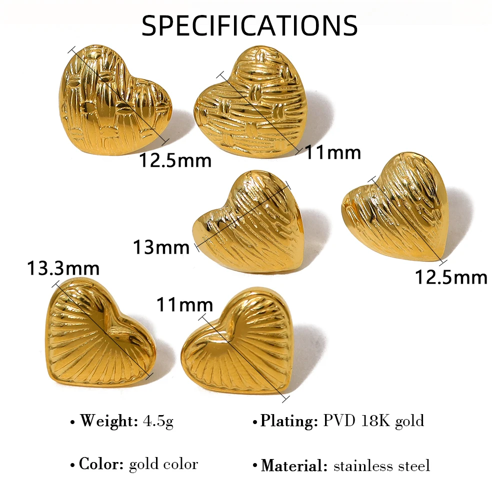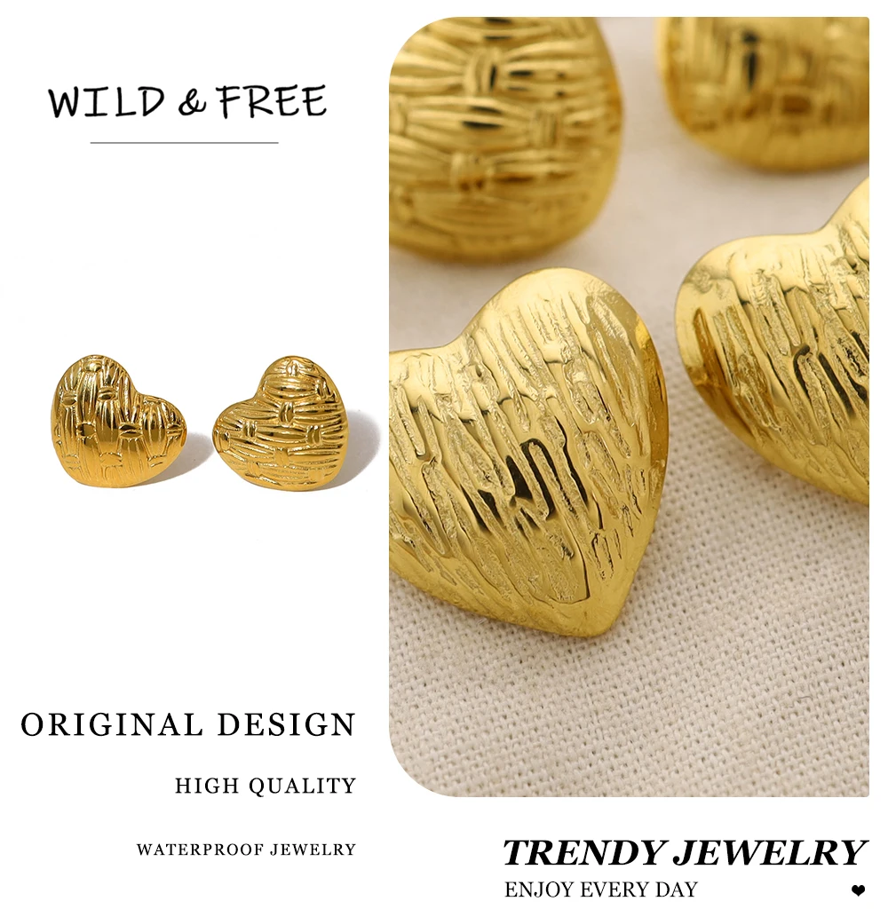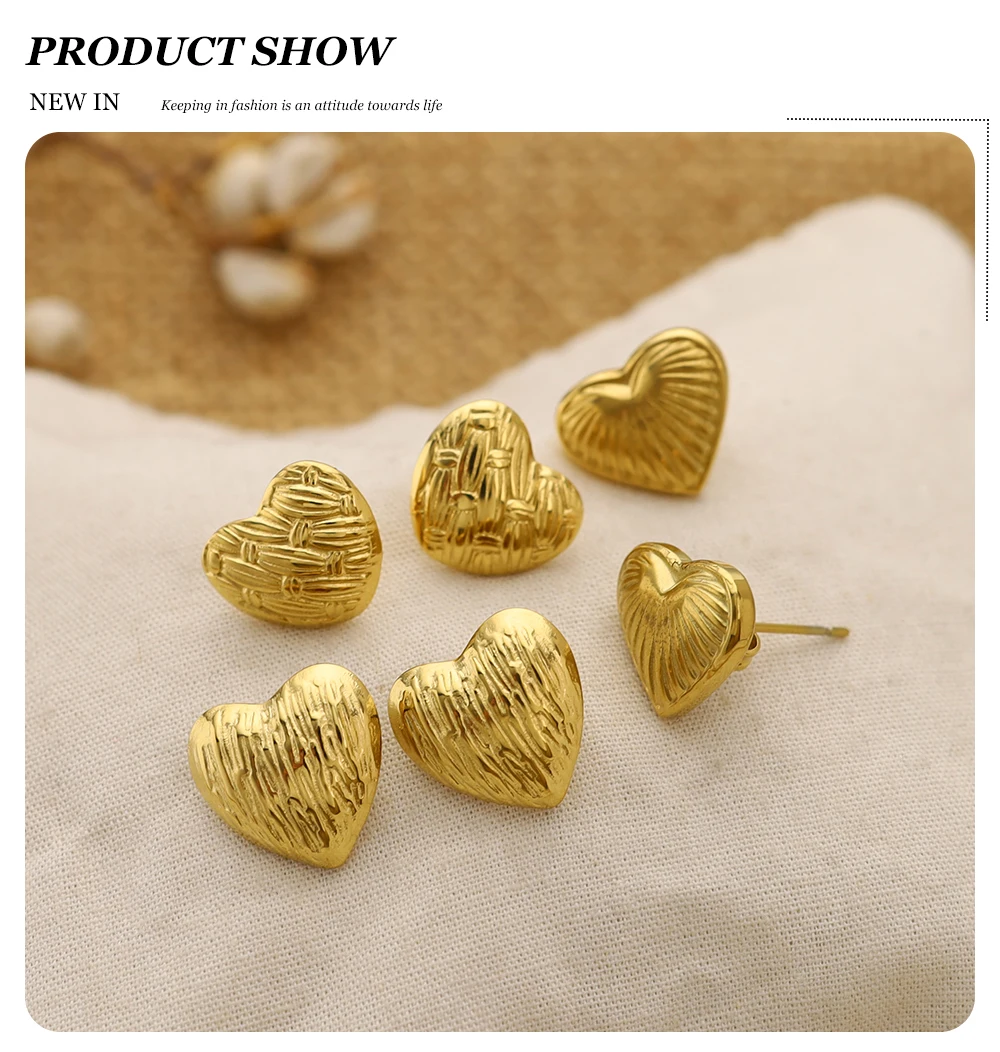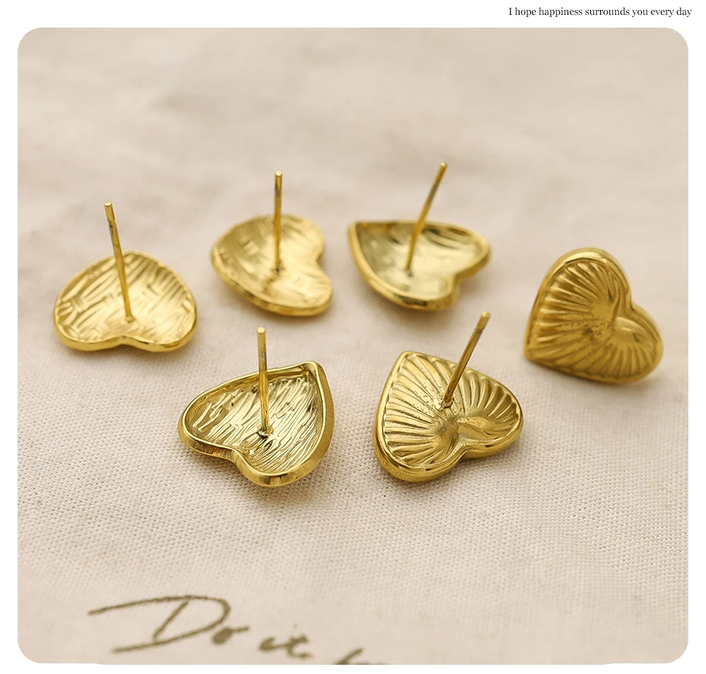 WILD & FREE 18K Gold Plated Stainless Steel Heart Small Stud Earrings for Women Chic Vintage Exquisite Tarnish Free Jewelry