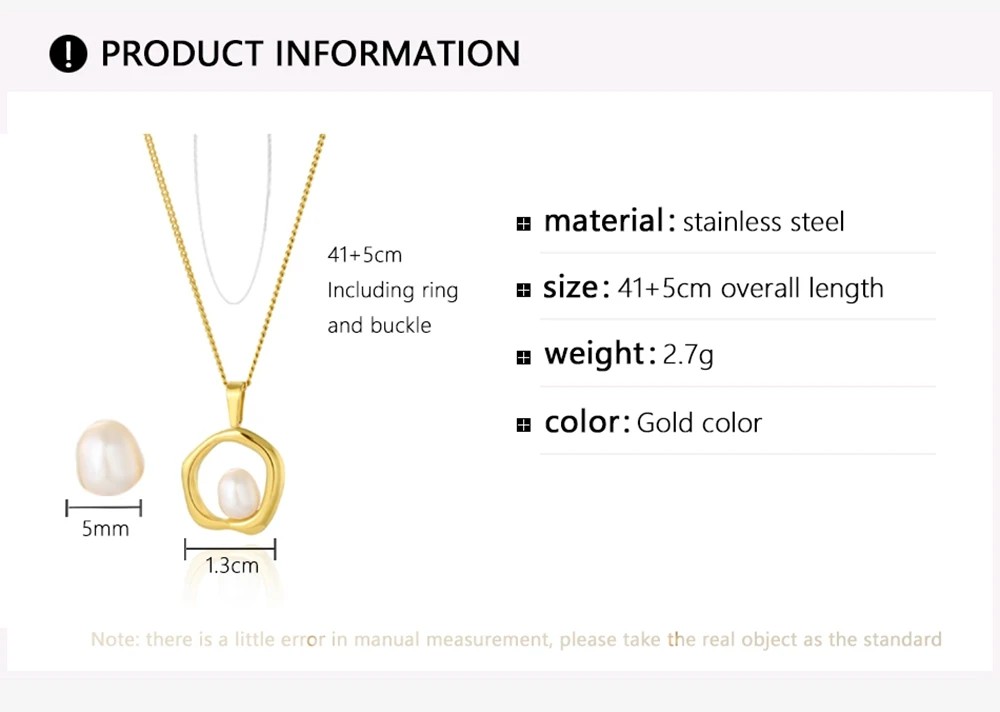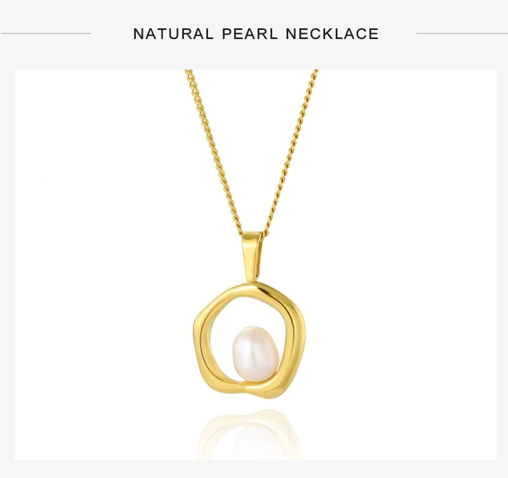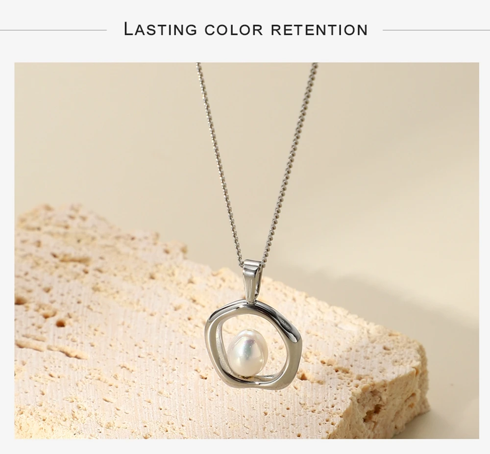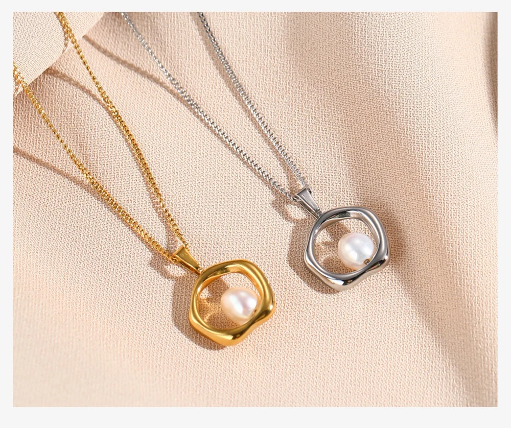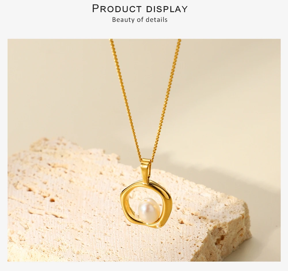 WILD & FREE Trendy Gold Color Stainless Steel Chains Irregular Hollow Pearl Pendants Necklace For Women Korean Fashion Jewelry