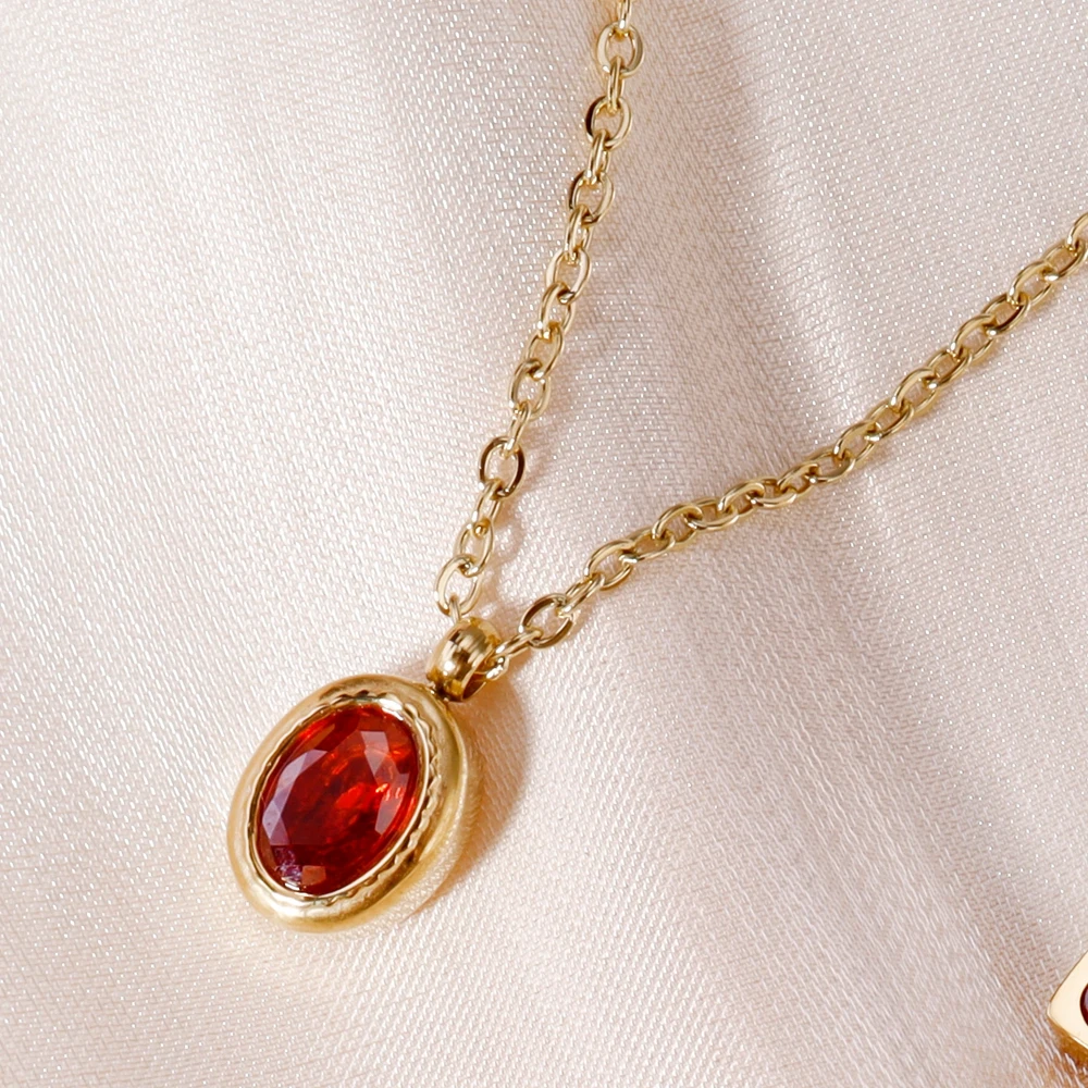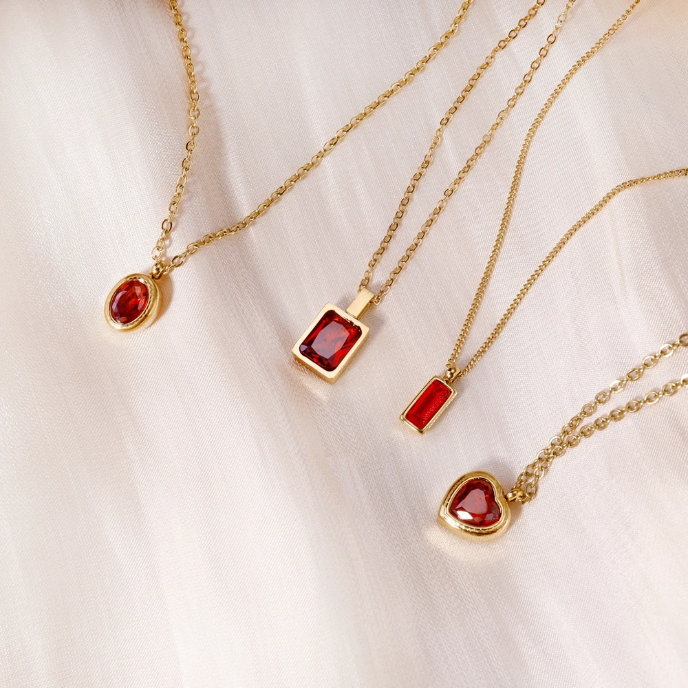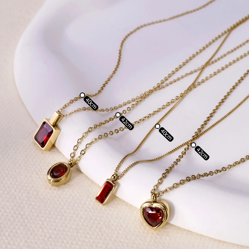 WILD & FREE Trendy Red Zircon Crystal Pendant Stainless Steel Necklace Luxury Exquisite Women Wedding Jewelry