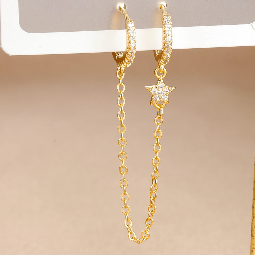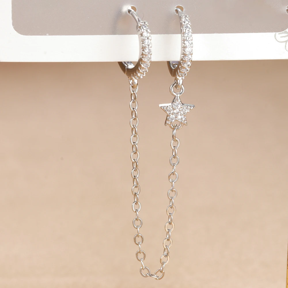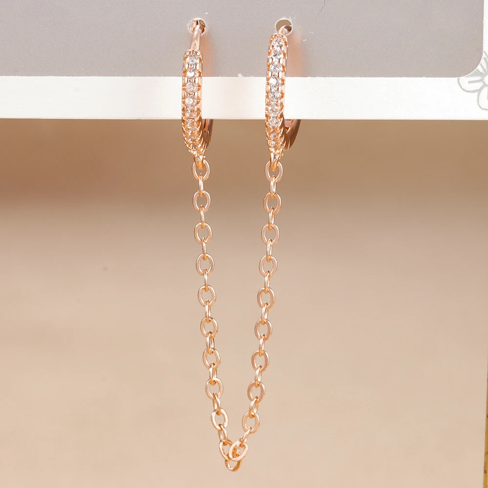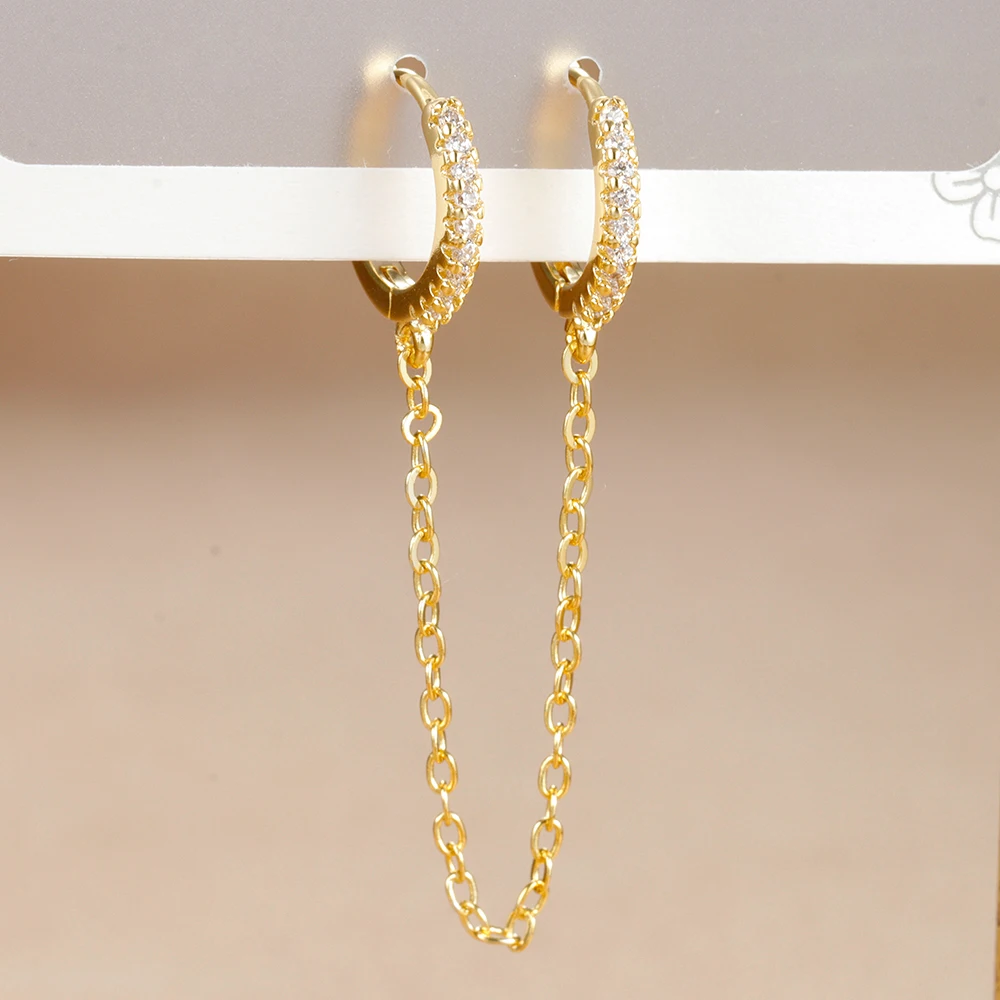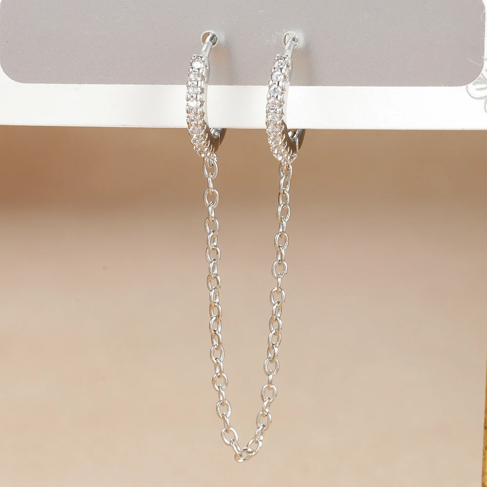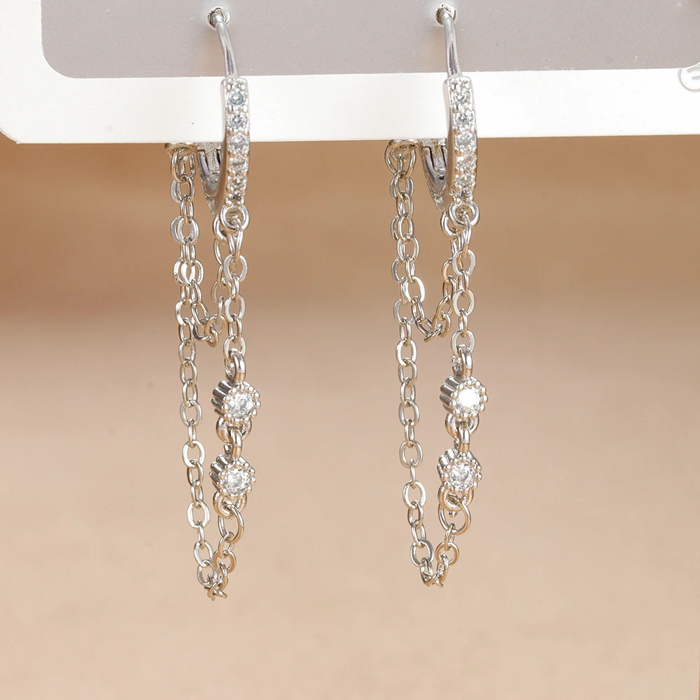 Women Stainless Steel Double Chain Hoop Earrings Crystal Tassel Earrings Fashion Party Wedding Jewelry Statement Gift