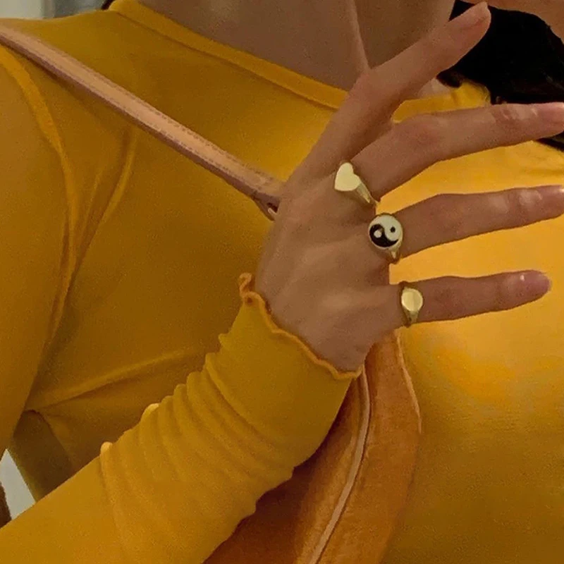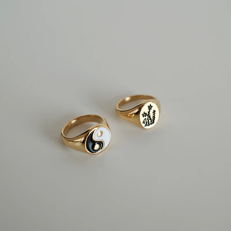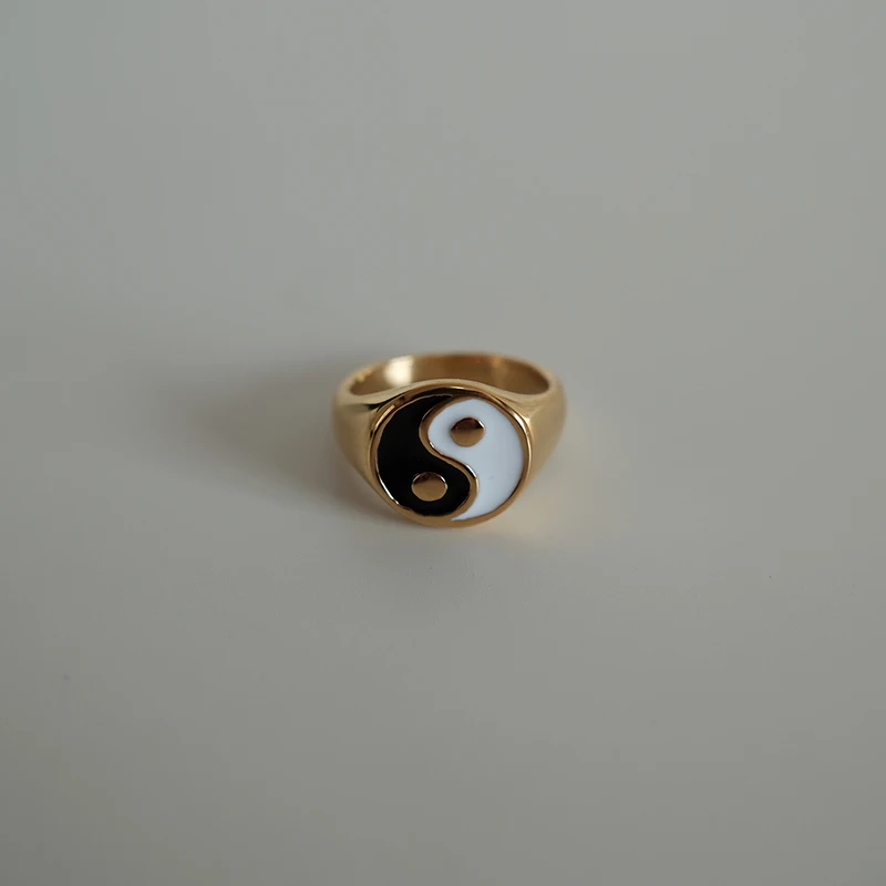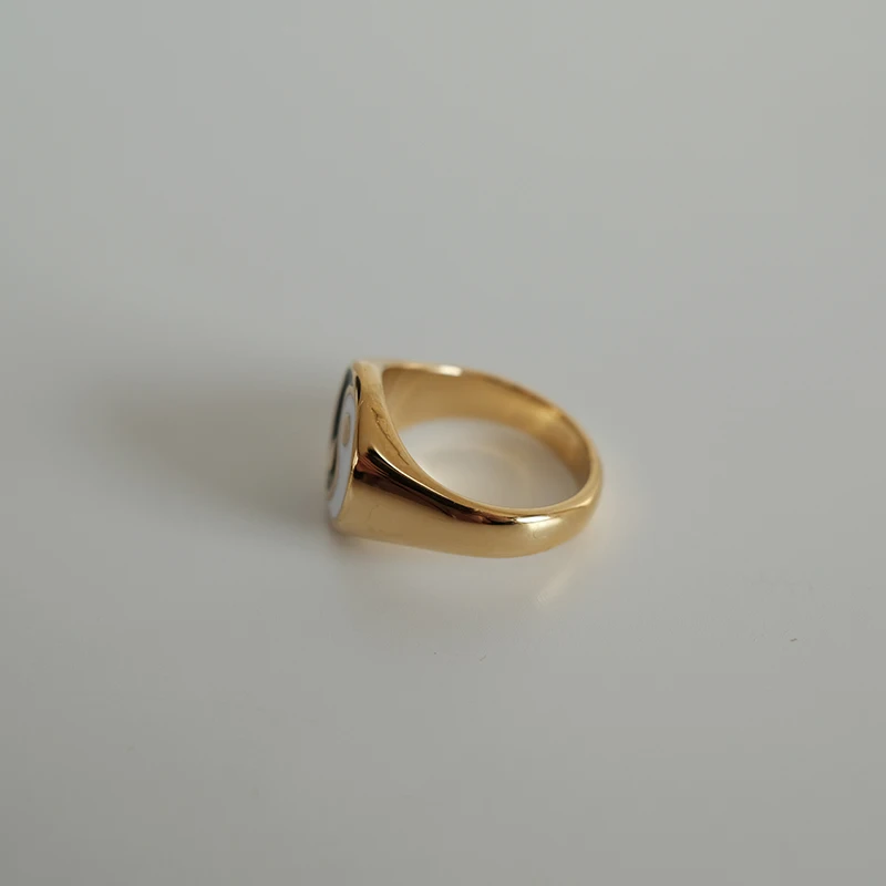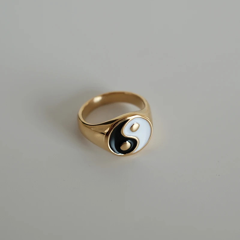 ZJ Hot Sale 2021 Stainless Steel Non Tarnished Statement White Black Ying-yang Signet Rings for Women Fashion Jewelry Wholesale
