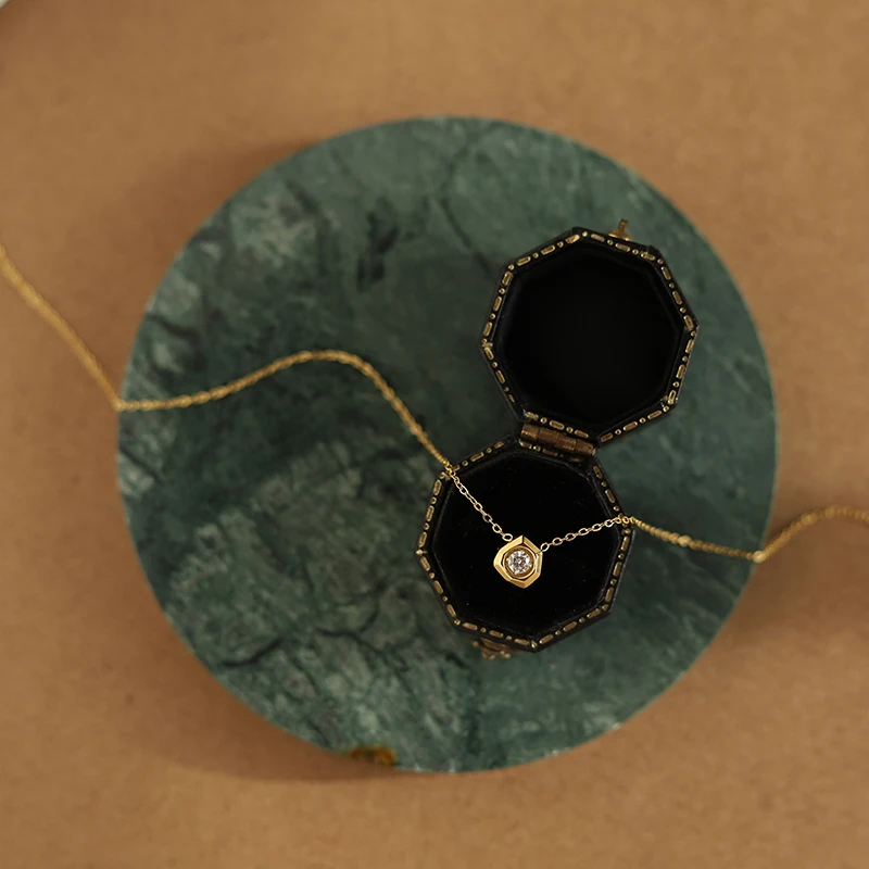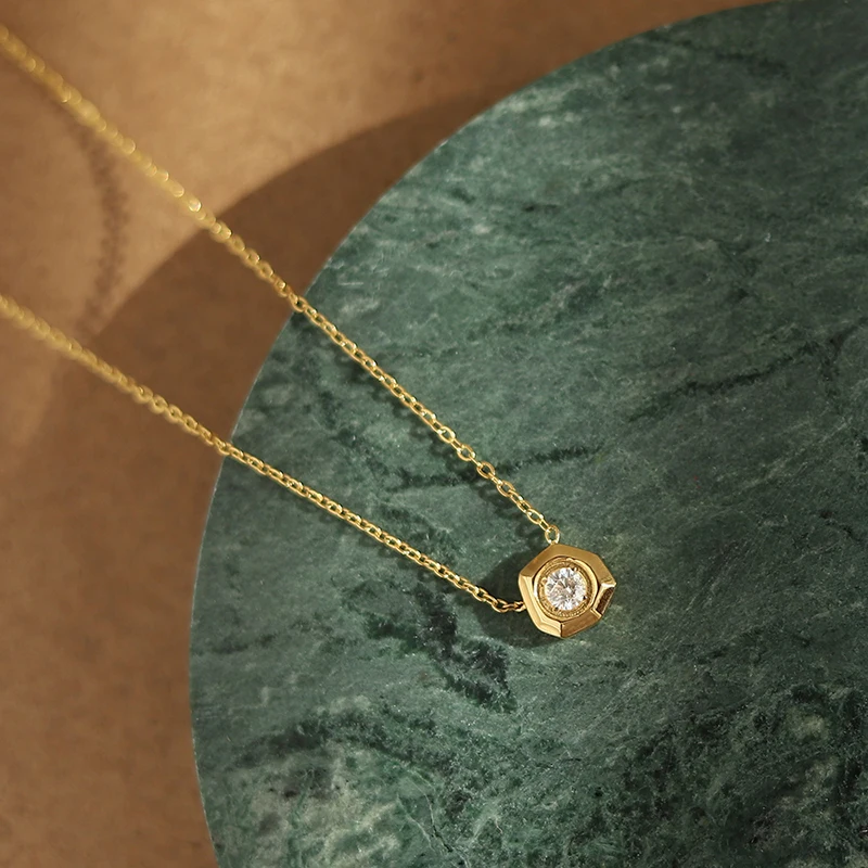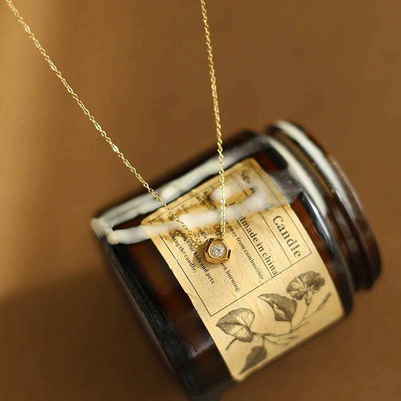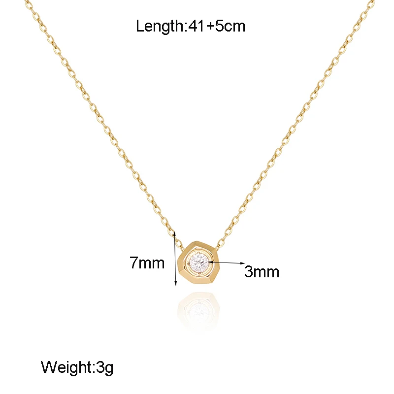 18K Gold Plated Stainless Steel Geometric Cubic Zircon Faceted Pendant Necklace for Women Exquisite Collars Jewelry Gift