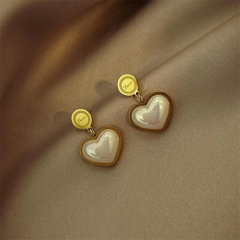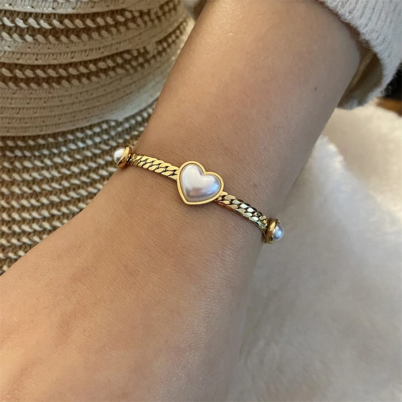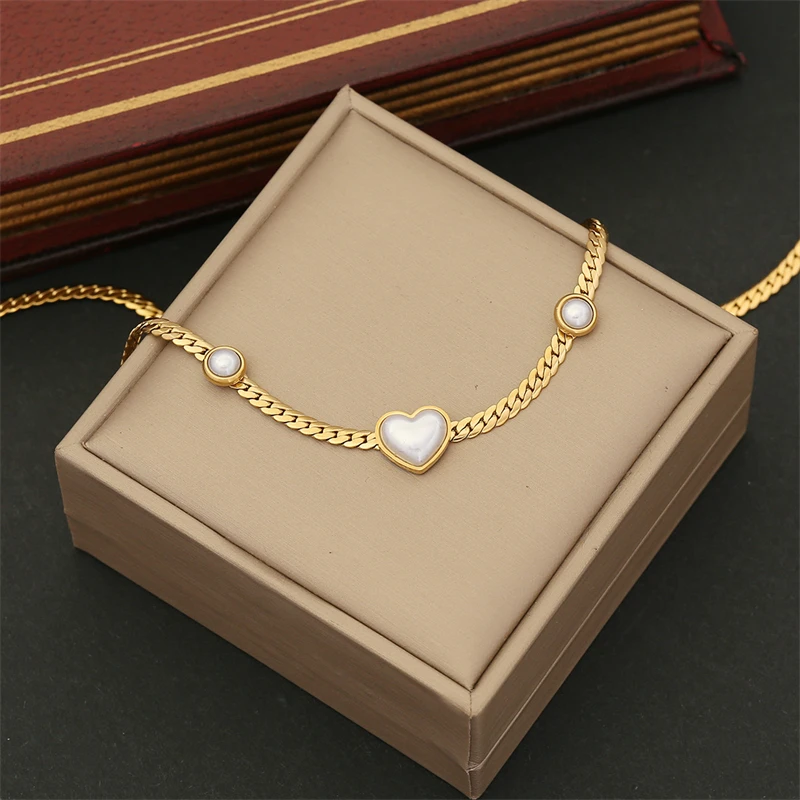 316L Stainless Steel New Fashion Fine Jewelry Set Love Heart Shaped Pearl Charm Chain Necklaces Bracelets Earrings For Women