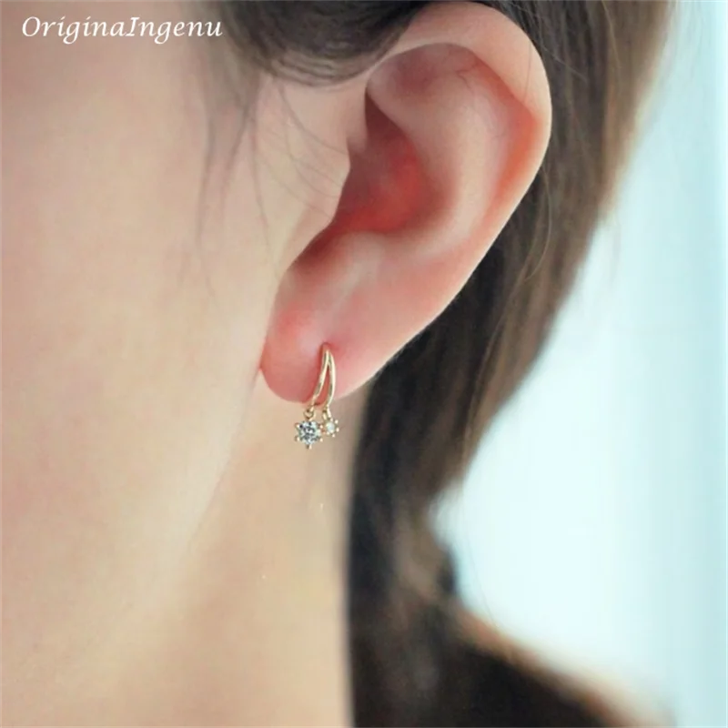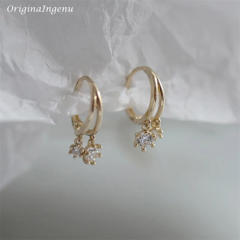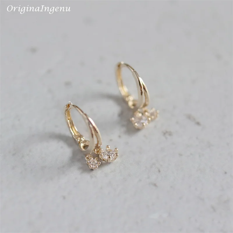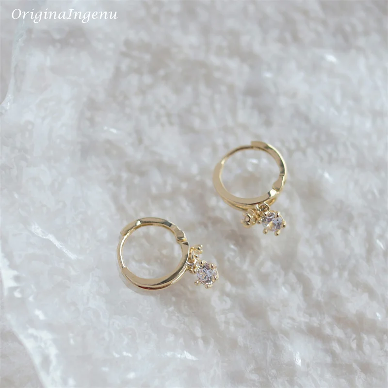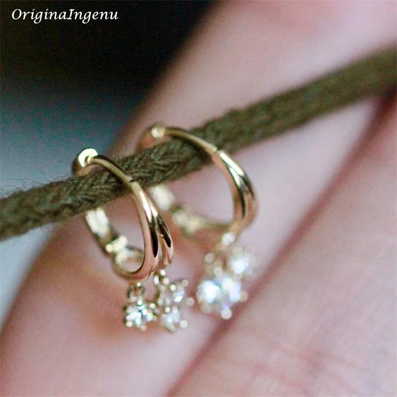 9K Solid Gold Hoop Earrings Delicate Zircon Earrings Yellow Gold Women Earring Gold Fine Jewelry Tarnish Resistant Jewelry