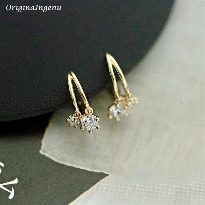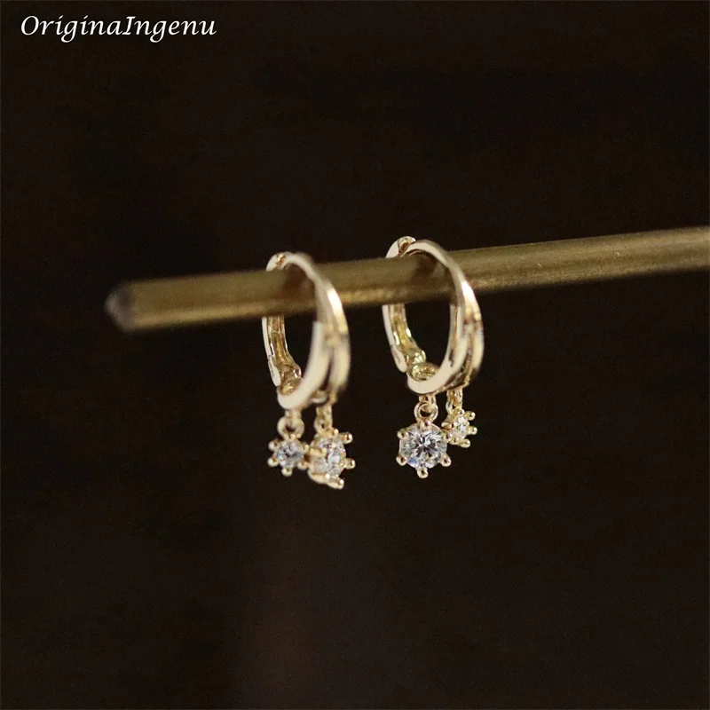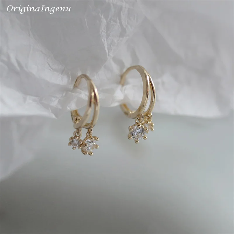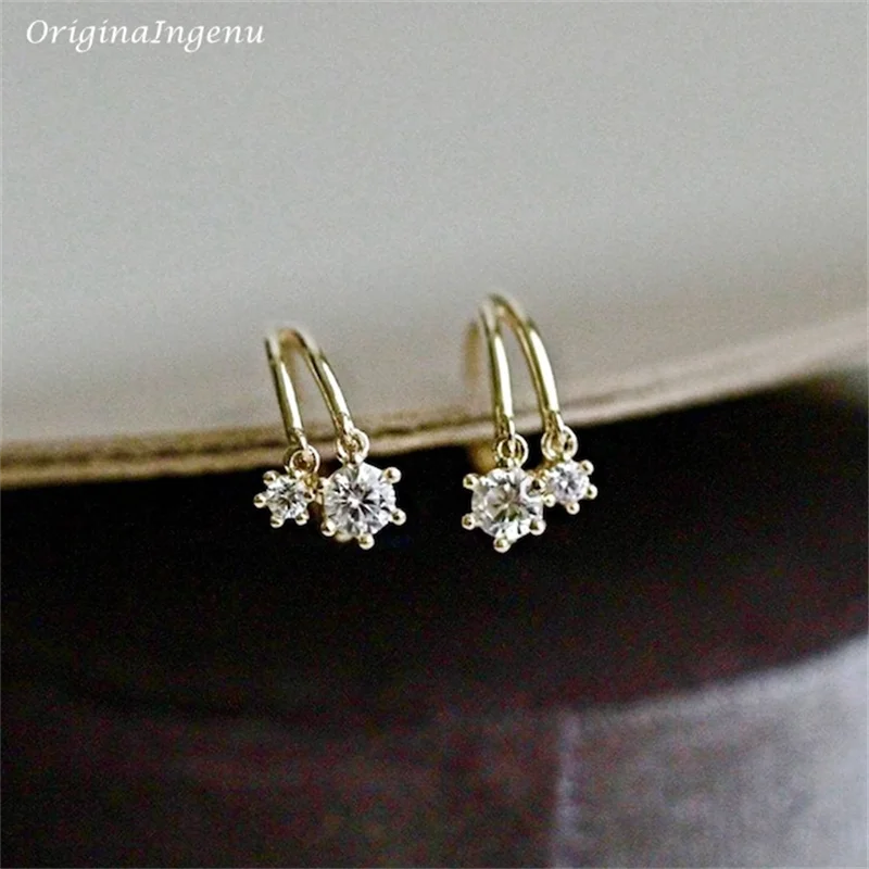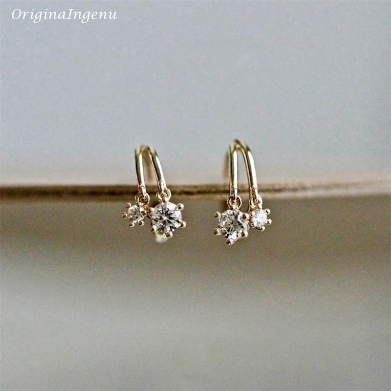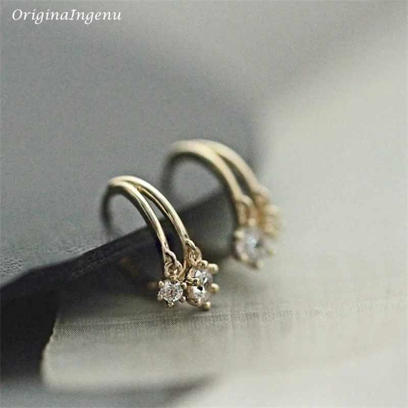 9K Solid Gold Hoop Earrings Delicate Zircon Earrings Yellow Gold Women Earring Gold Fine Jewelry Tarnish Resistant Jewelry