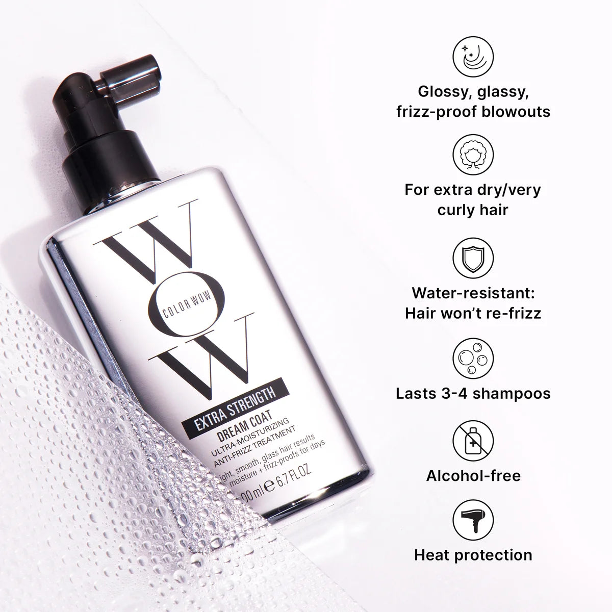 Color Wow Extra Strength Dream Coat Ultra Moisturizing Anti‑Frizz Treatment – 200ml is a premium haircare solution engineered to tame frizz, deeply hydrate, and bring out your hair’s natural smoothness and shine. Perfect for those battling humidity, dryness, or unruly hair, this advanced treatment delivers salon‑level results in the comfort of your home.