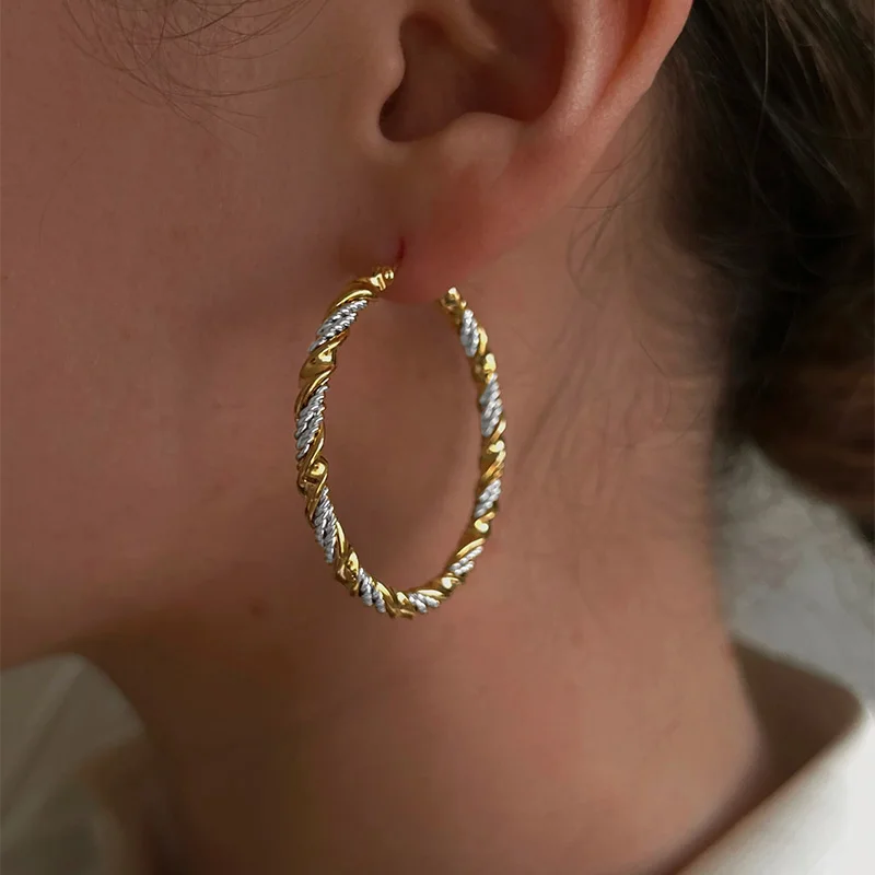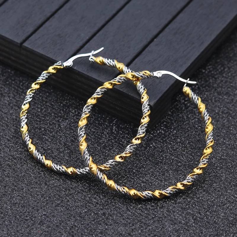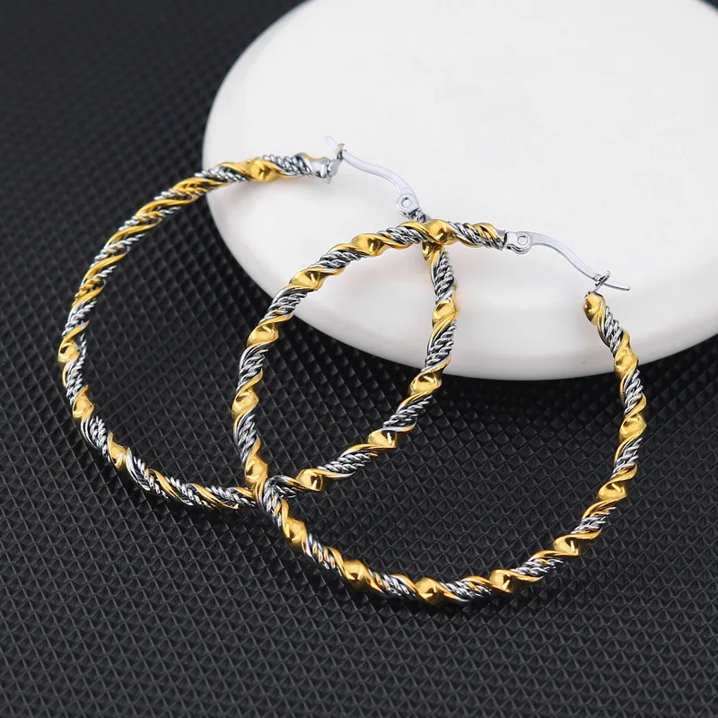 Double Color Stainless Steel Earrings For Women Woven Twist Titanium Steel Hoop Earring Exaggerate Trendy Jewelry Accessories