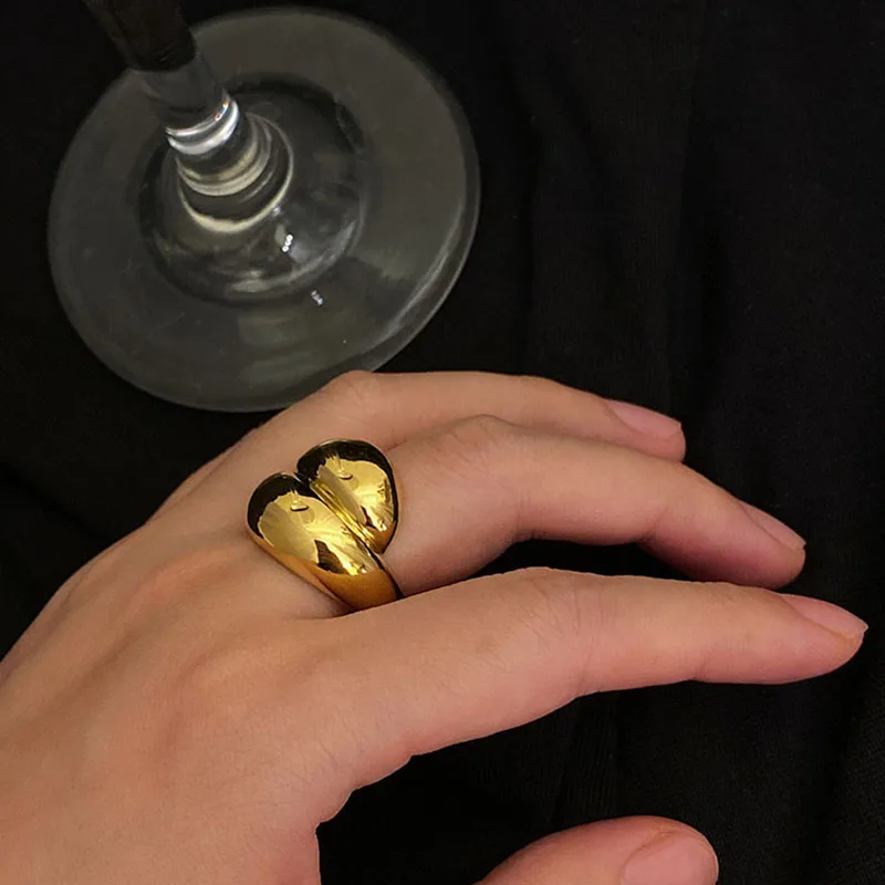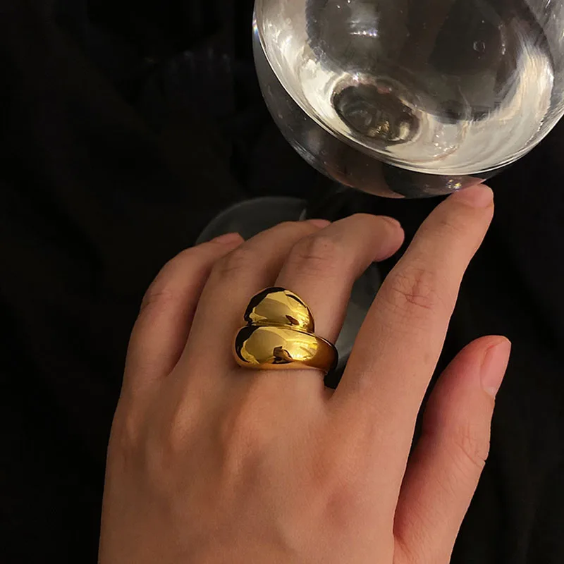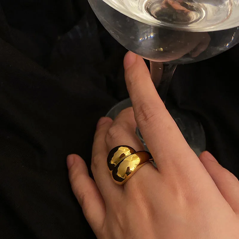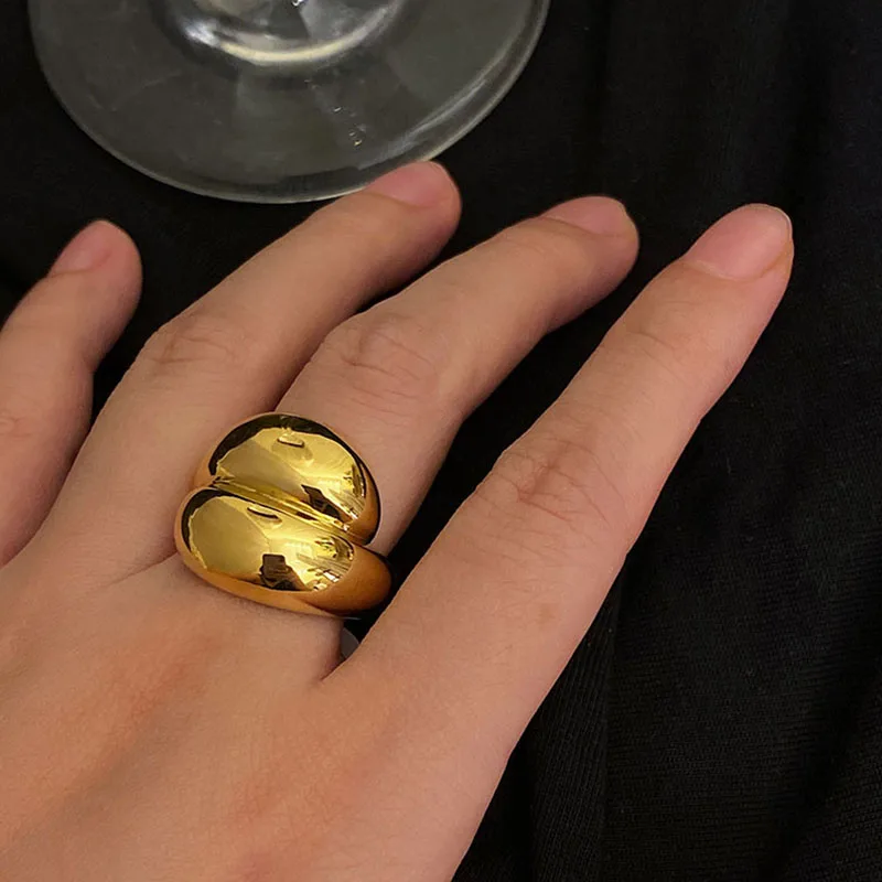 Double layered chunky rings stainless steel chubby statement rings for women simple minimalist waterproof non tarnish jewelry