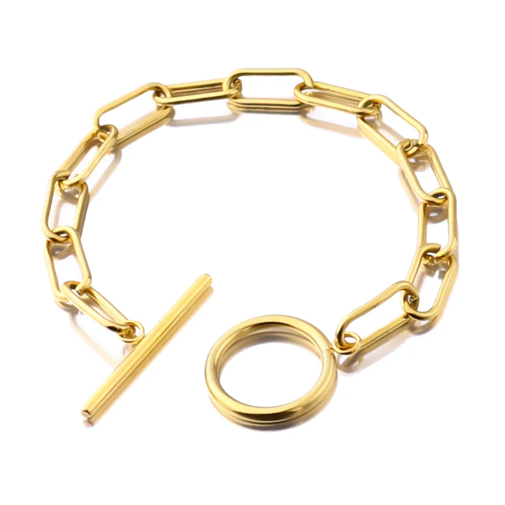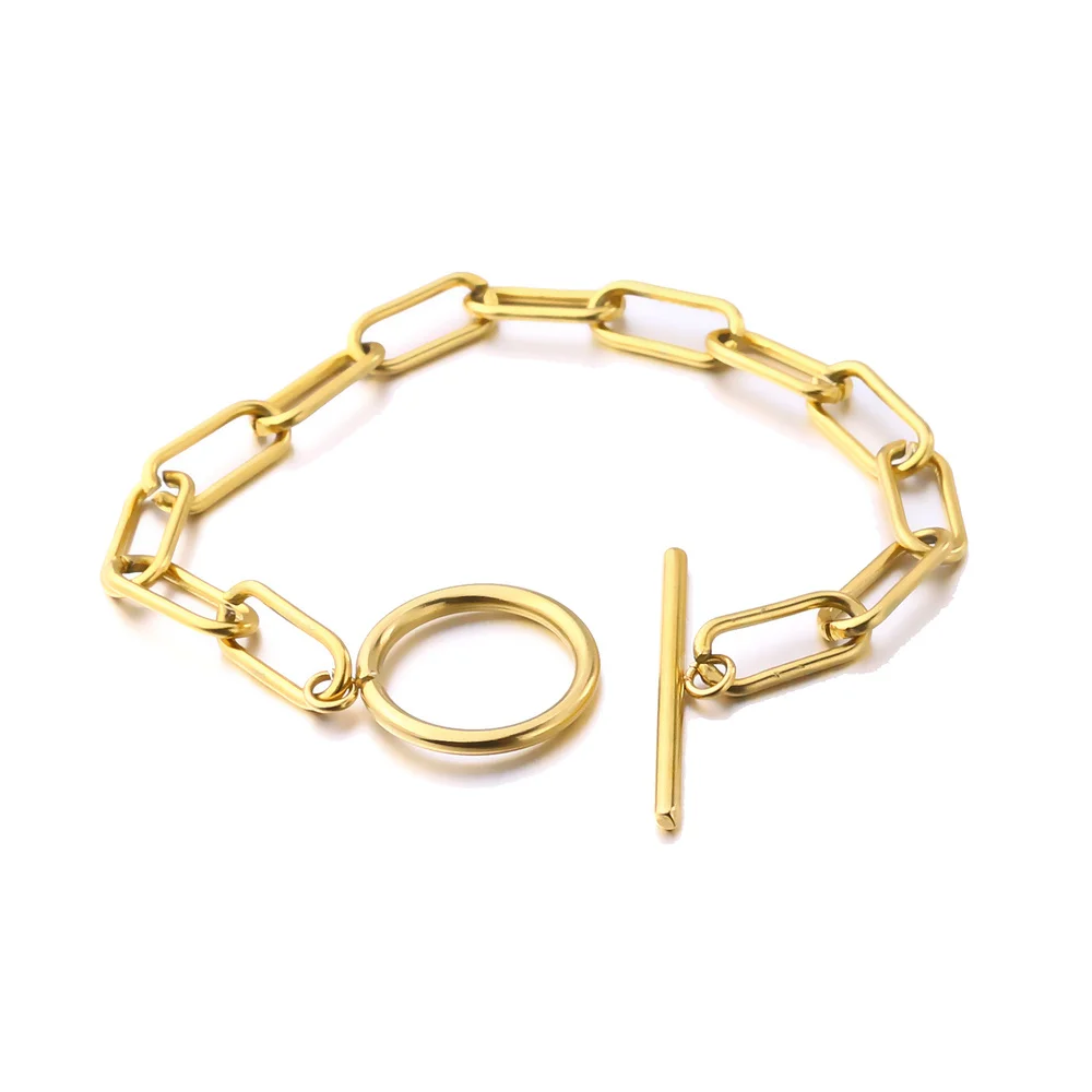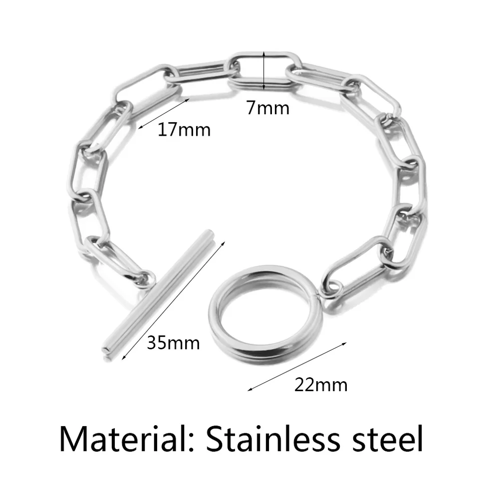 NEW Gold Stainless Steel Mens Bracelet 7mm OT Buckle Large Circle Cuban Link Bracelet Hip Hop Jewellery Charm Bracelet Wholesale