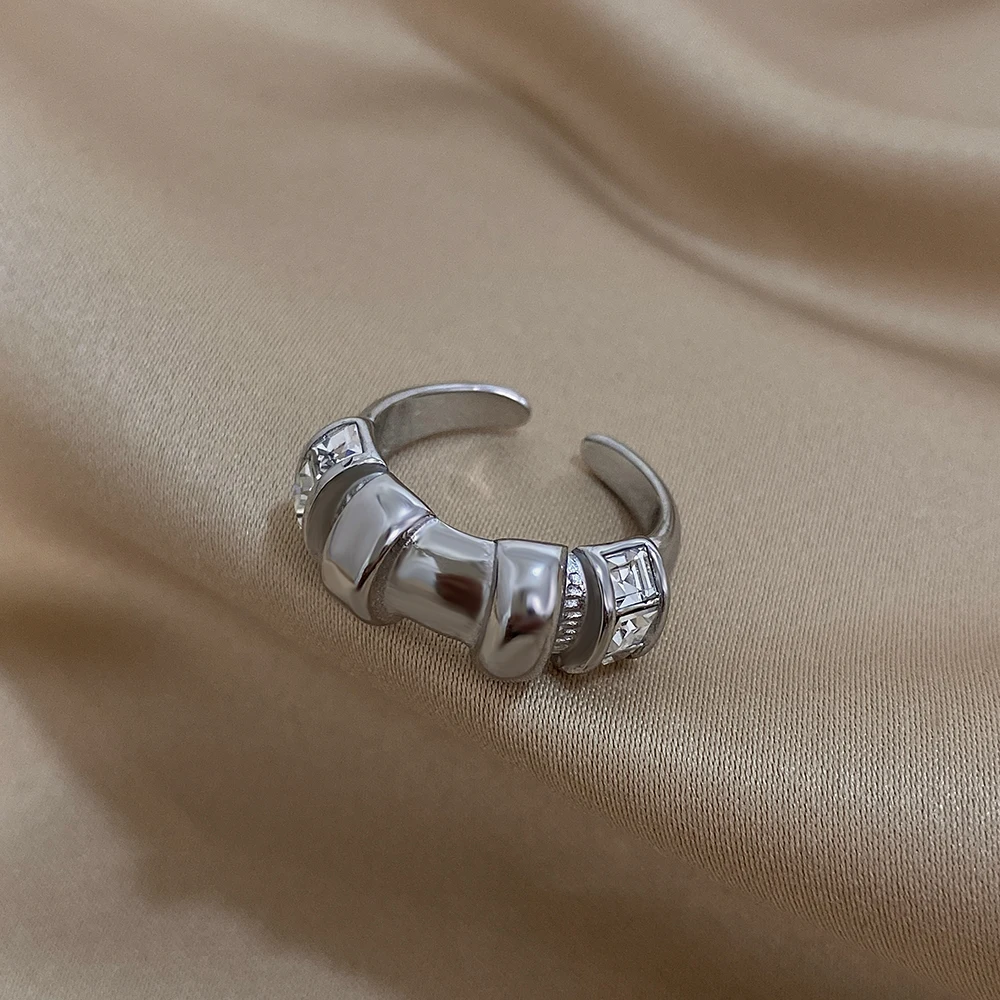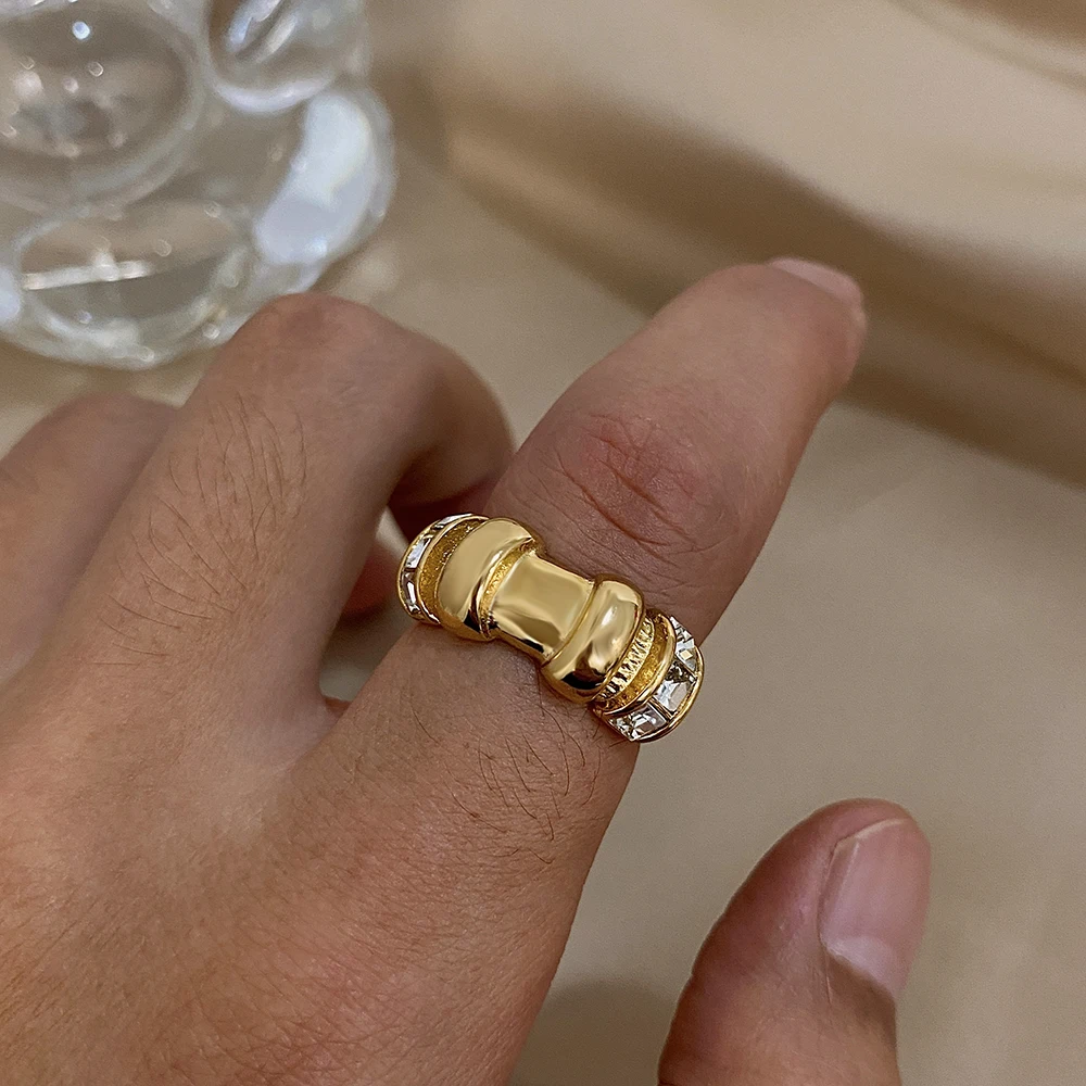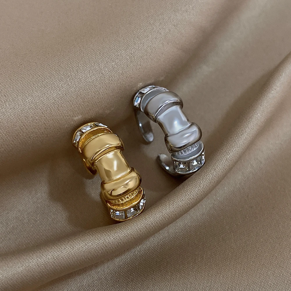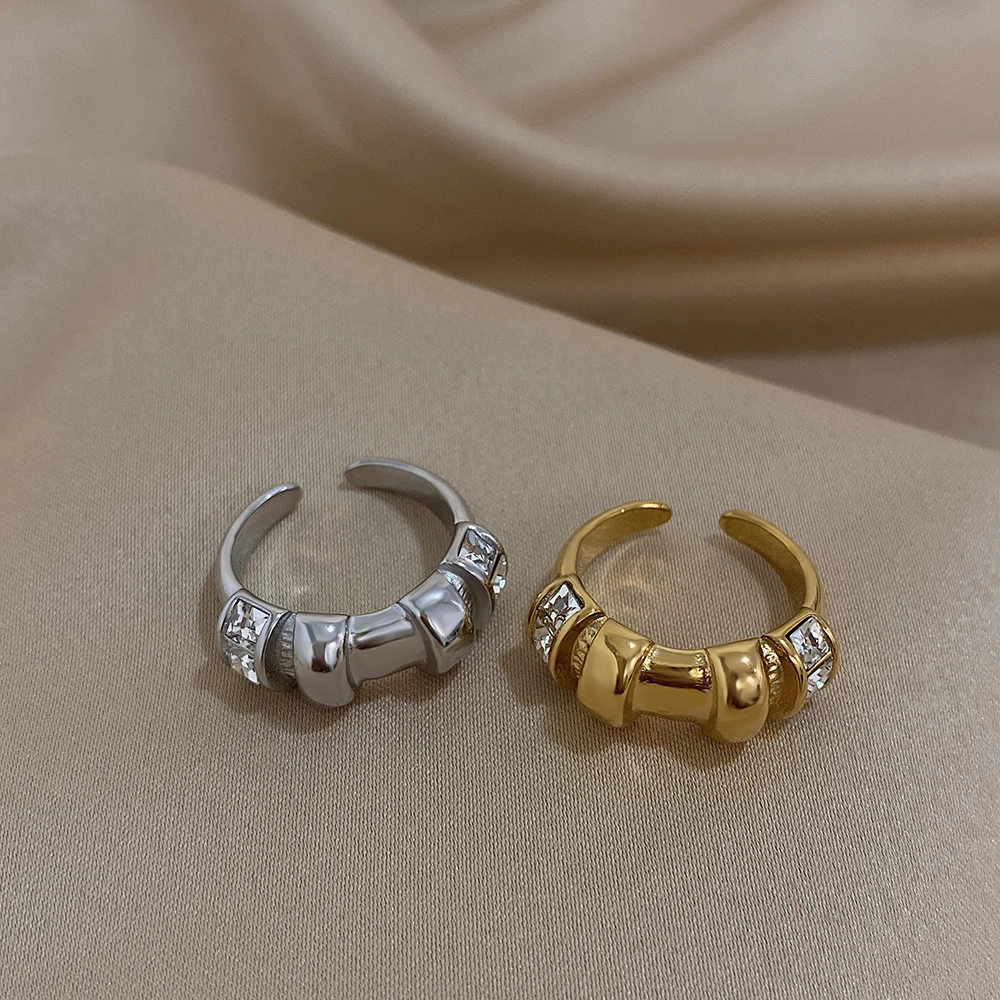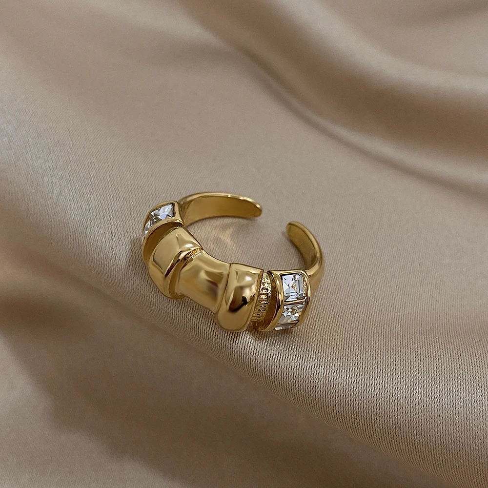 Greatera Stainless Steel Opening Rings for Women Gold Plated Cubic Zirconia Joint Finger Ring Waterproof Jewelry Accessories