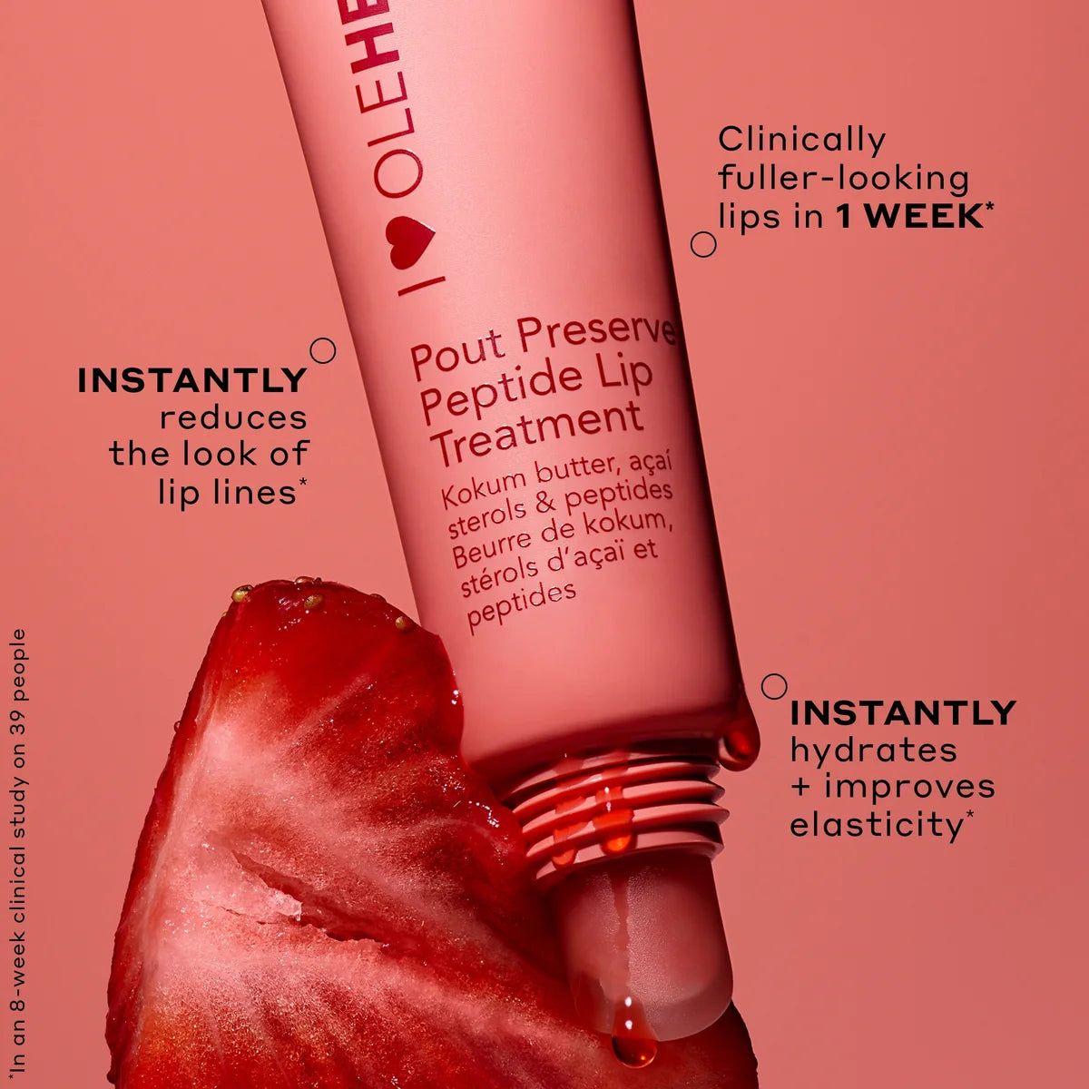HENRIKSEN Strawberry Sorbet Pout Preserve Peptide Lip Treatment – 12ml is a luxurious, ultra-hydrating lip treatment designed to deliver soft, smooth, and naturally plump-looking lips. Inspired by the refreshing sweetness of a classic strawberry sorbet, this nourishing formula combines rich skincare ingredients with a delicious fruity experience that makes every application feel indulgent.