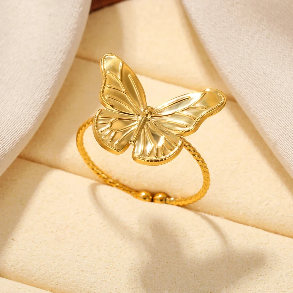 Hollow Butterfly Rings for Women Waterproof Gold Color Stainless Steel Ring Aesthetic Couple Jewelry Finger Accessories anillos