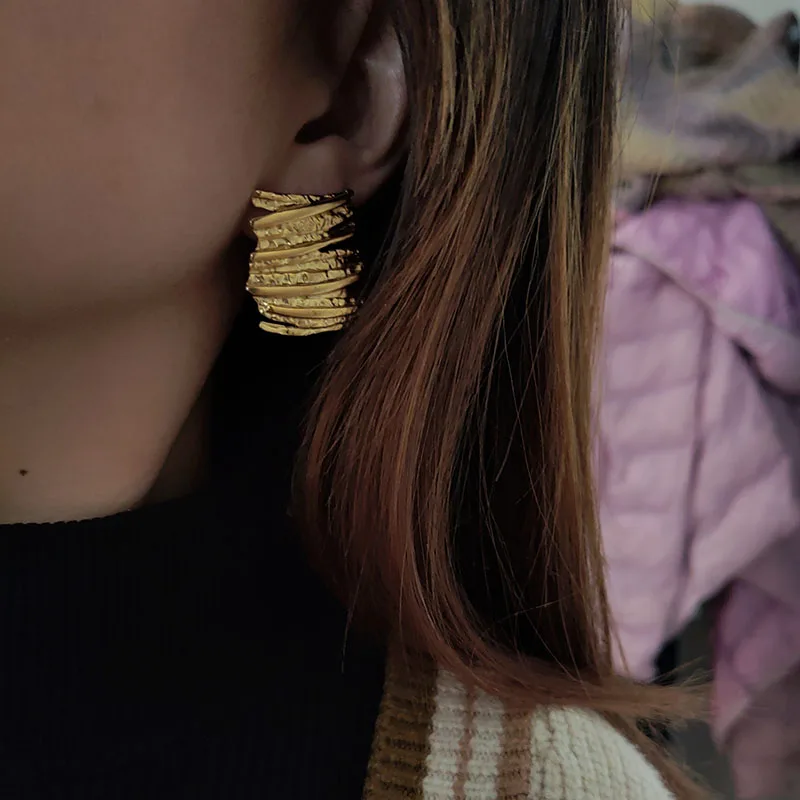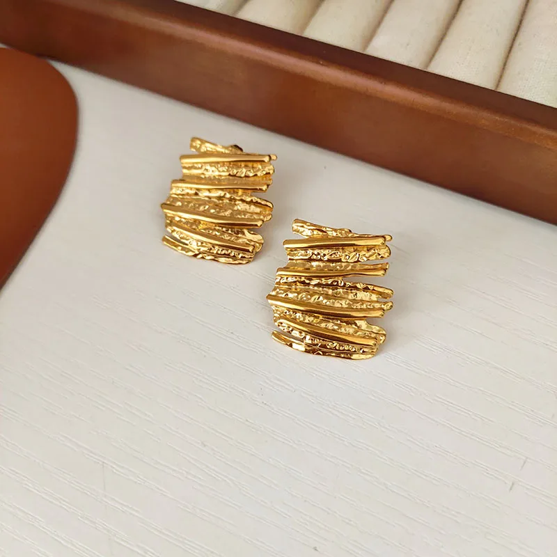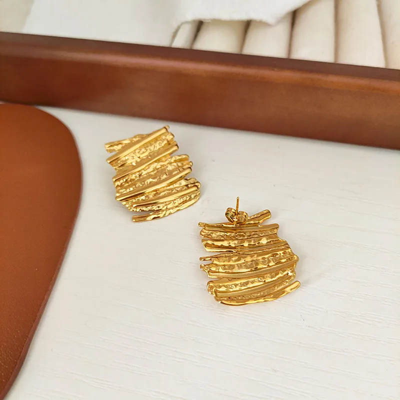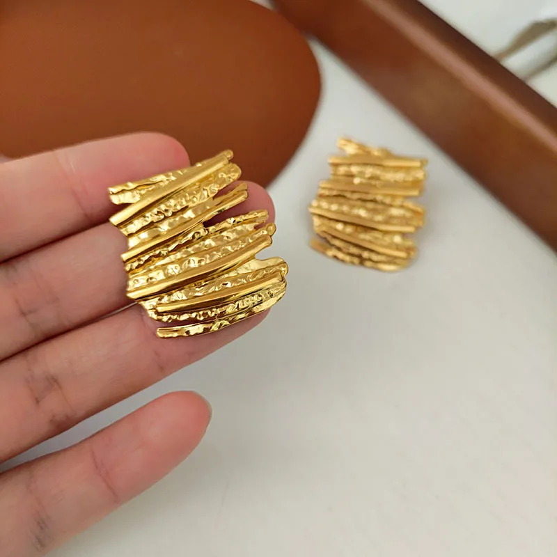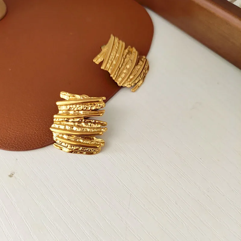 Irregular texture statement stud earrings stainless steel earrings for women simple chunky stainless steel jewelry waterproof