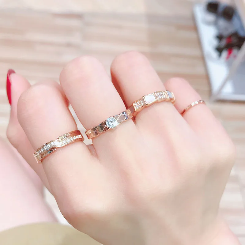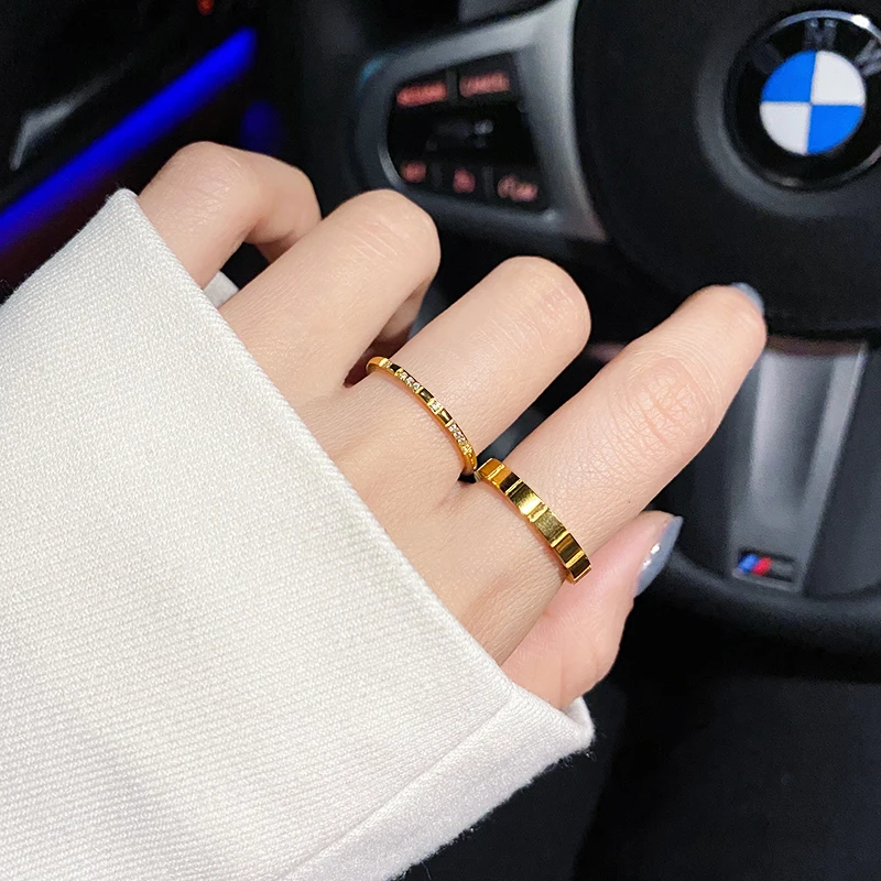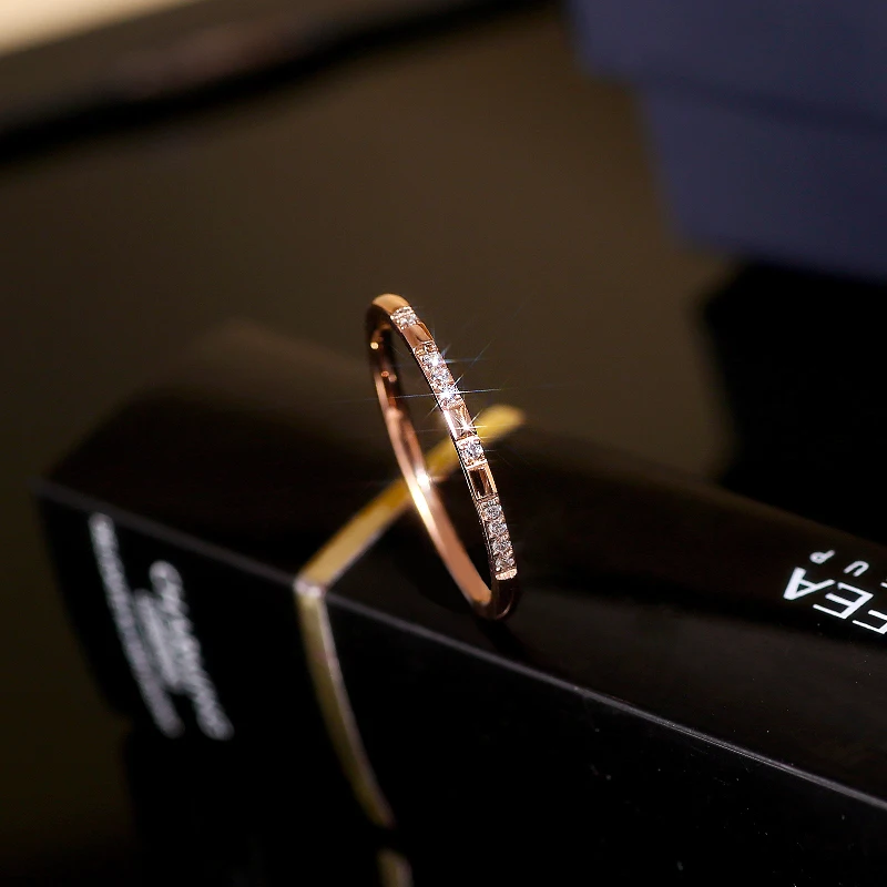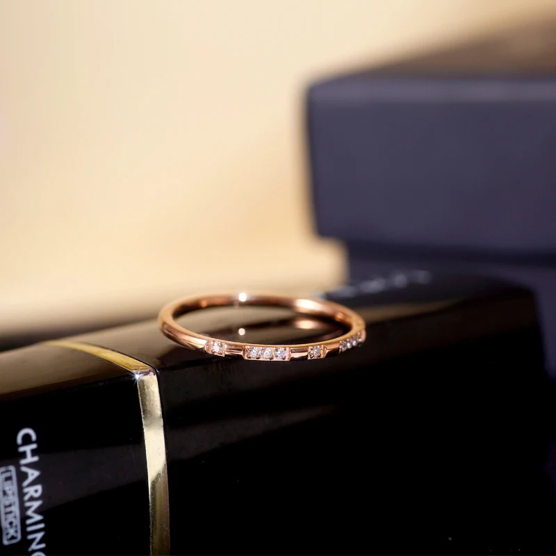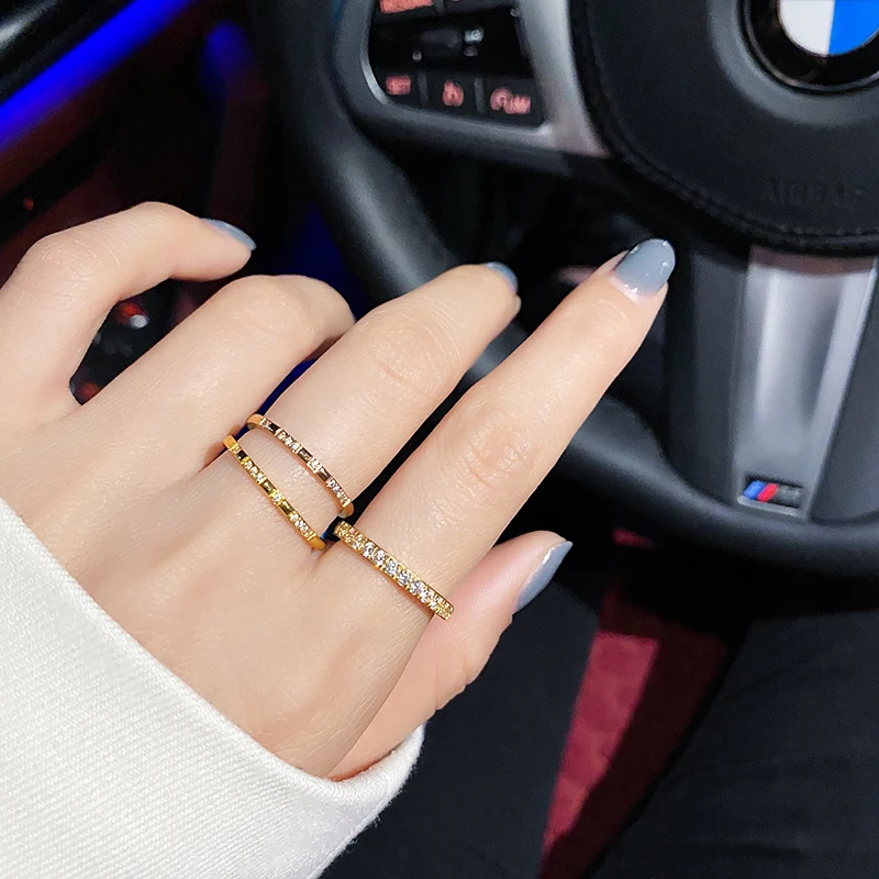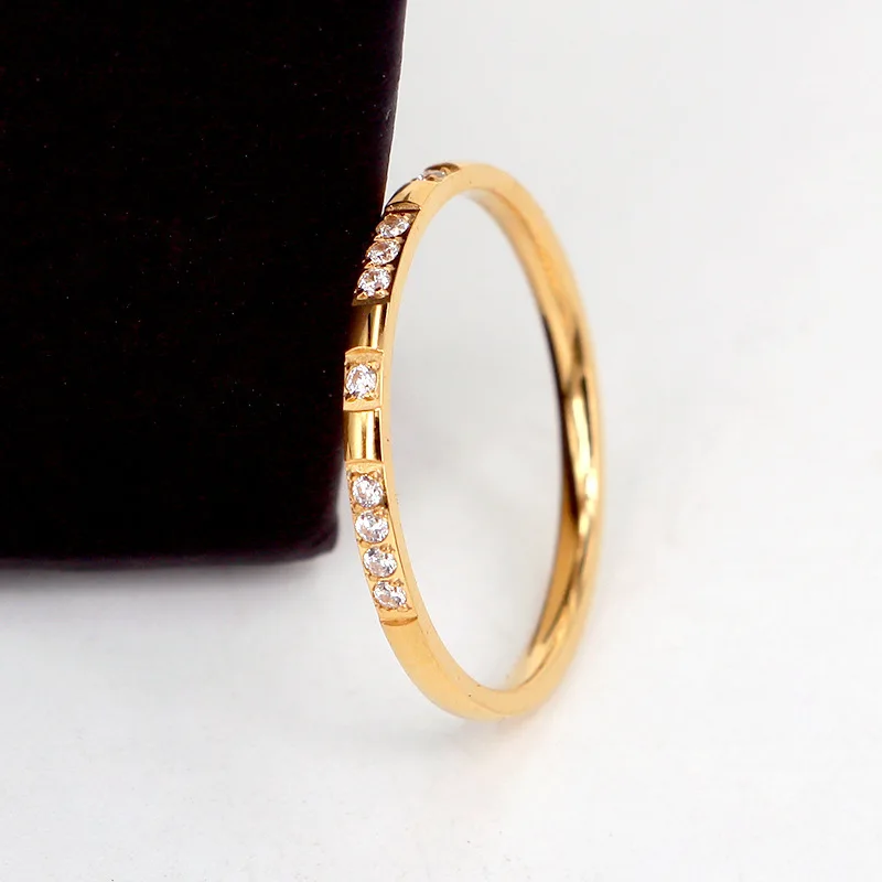 Luxury Non fade 316 L Stainless Steel Pave Micro Zircon Ring Woman 18 K Gold Plating Fashion Personality Ring Not Fade