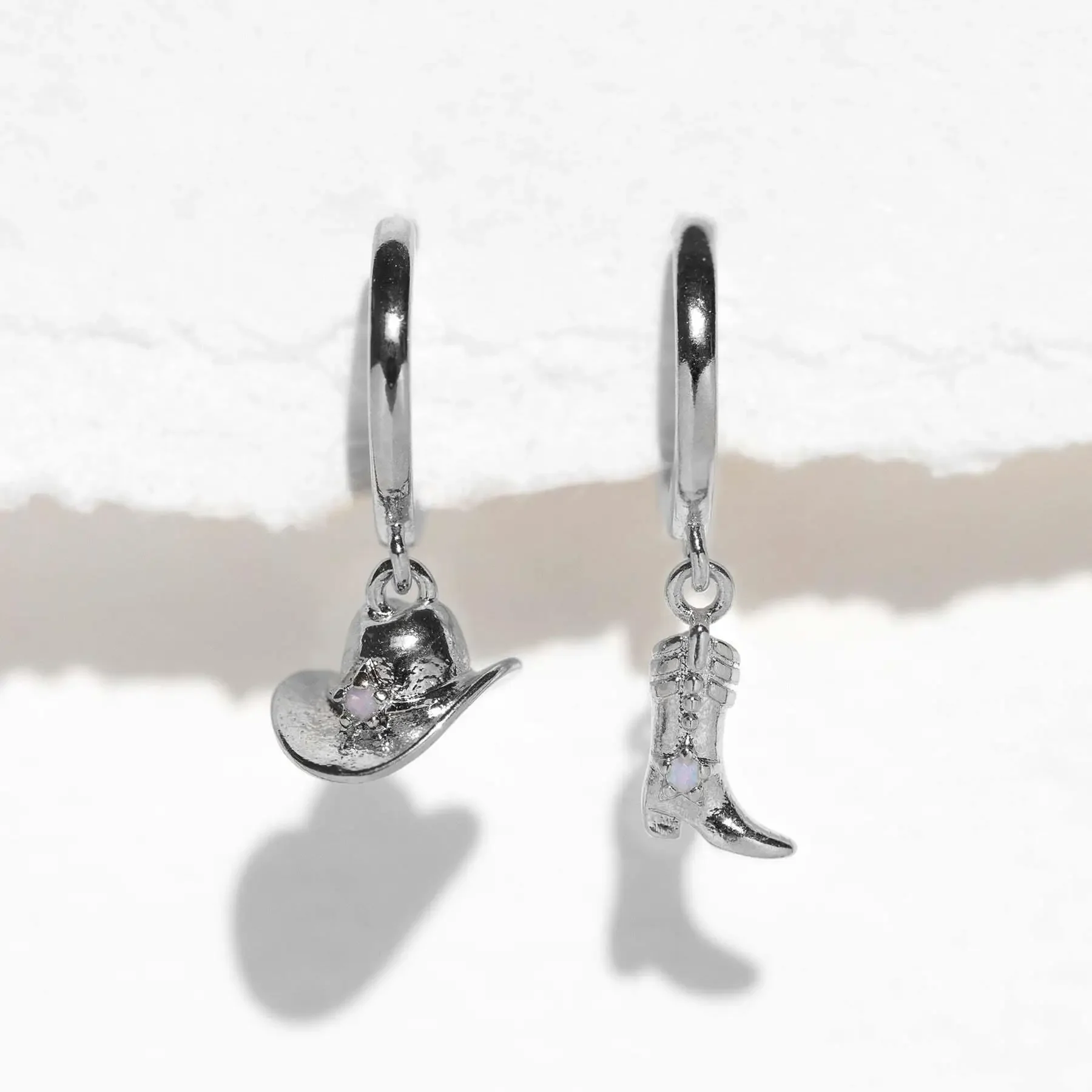 New 1Pair Western Cowboy Boots Hat Pendant Earrings Waterproof 316L Stainless Steel Women's Studs Hoop Earrings Jewelry Gifts