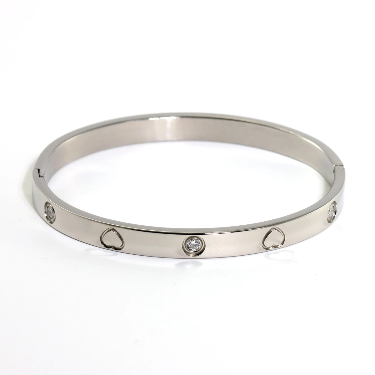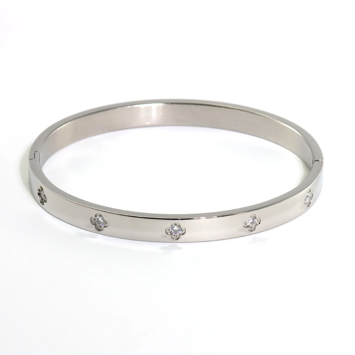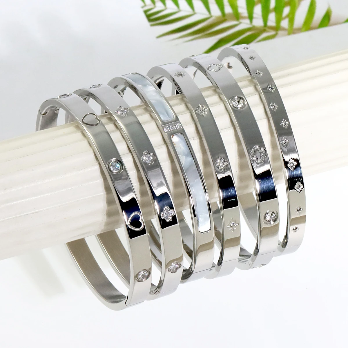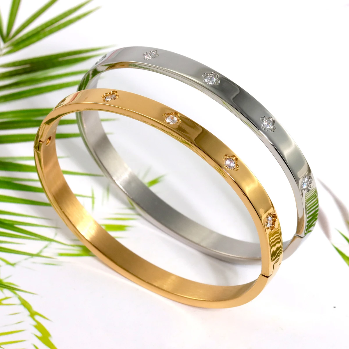 New Waterproof Cubic Zirconia Heart Flower Bangles Stainless Steel Bracelets Tarnish Free Jewelry for Women Factory Wholesales
