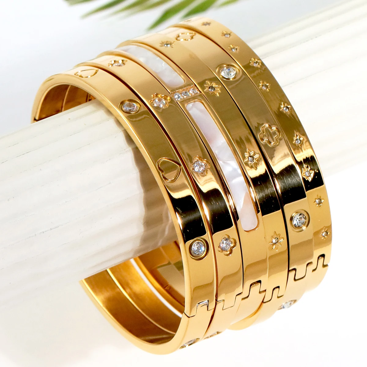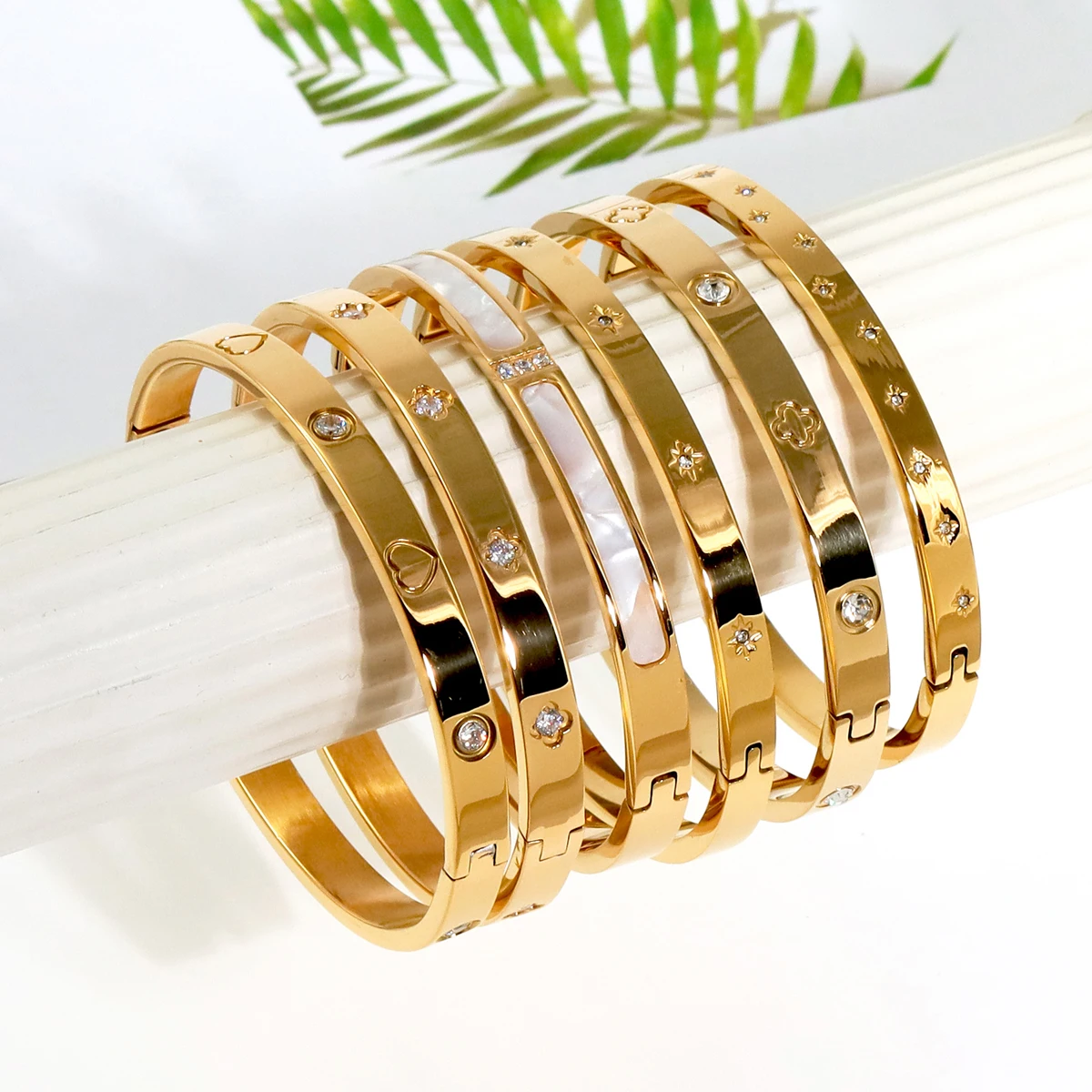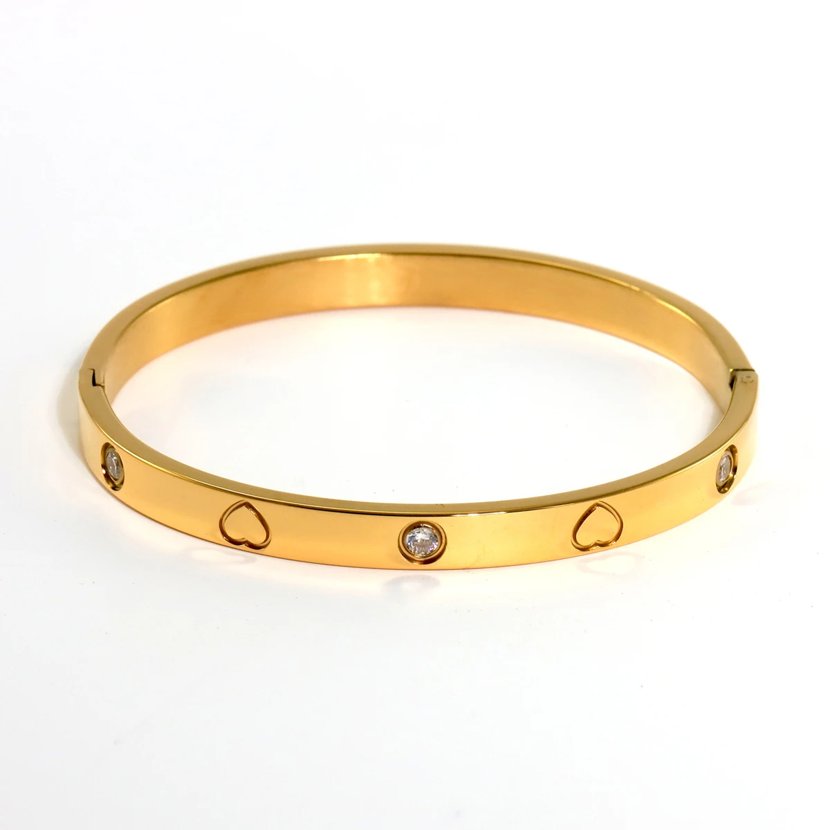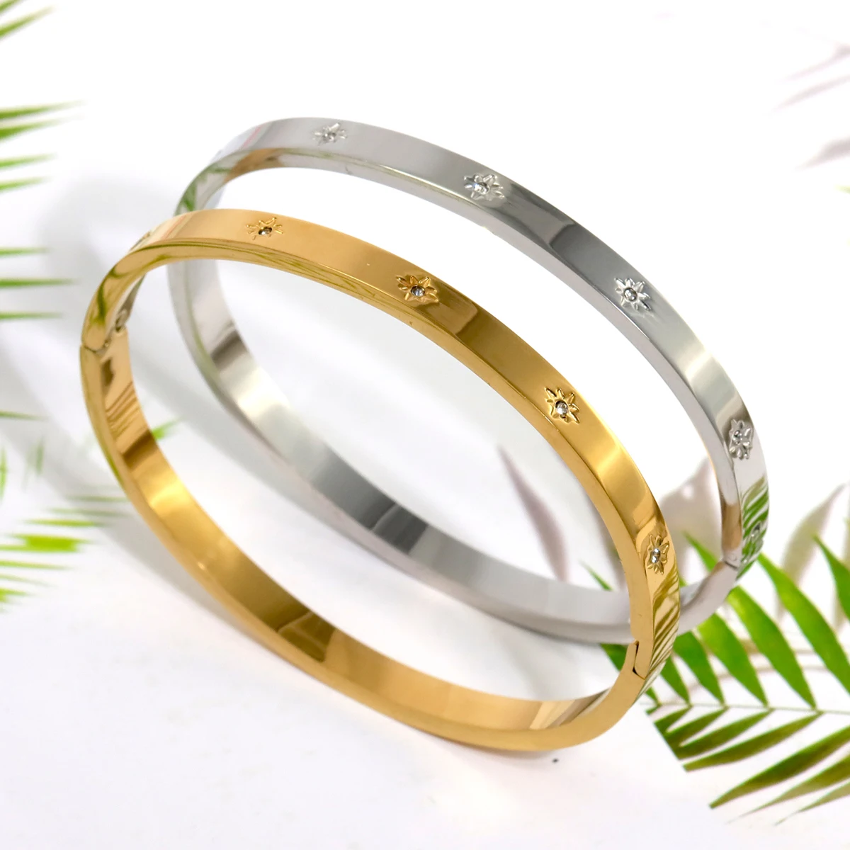 New Waterproof Cubic Zirconia Heart Flower Bangles Stainless Steel Bracelets Tarnish Free Jewelry for Women Factory Wholesales