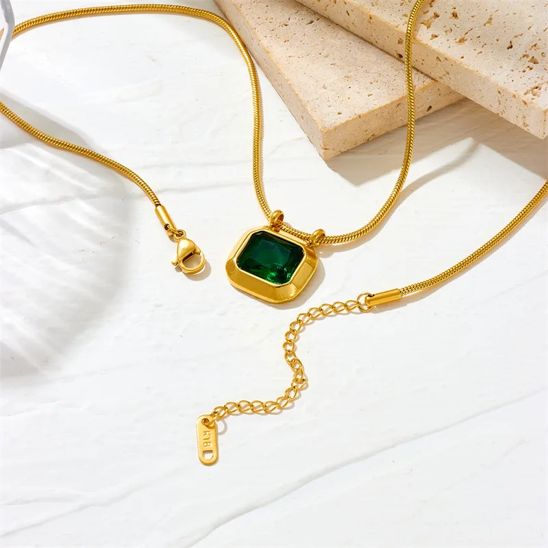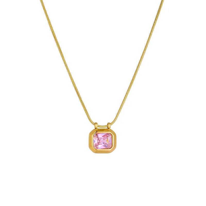 Octagonal Sugar Titanium Steel Clavicle Necklace with Zircon 18K Gold Plated Waterproof Non-Tarnish Chains Jewelry for Women