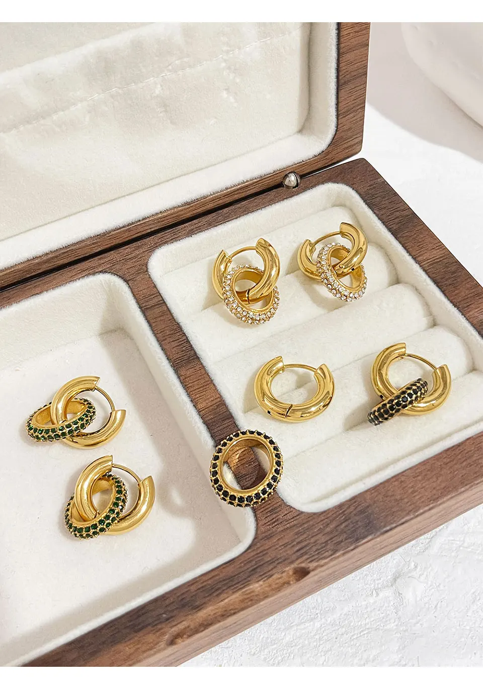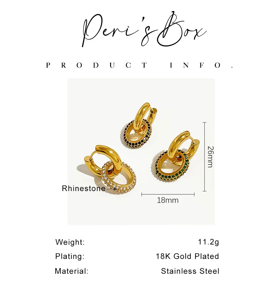 Peri'sbox 18K Gold Plated on Stainless Steel Double Hoop Earrings with Stunning Cz Zircons Fashion Statement Jewelry Waterproof