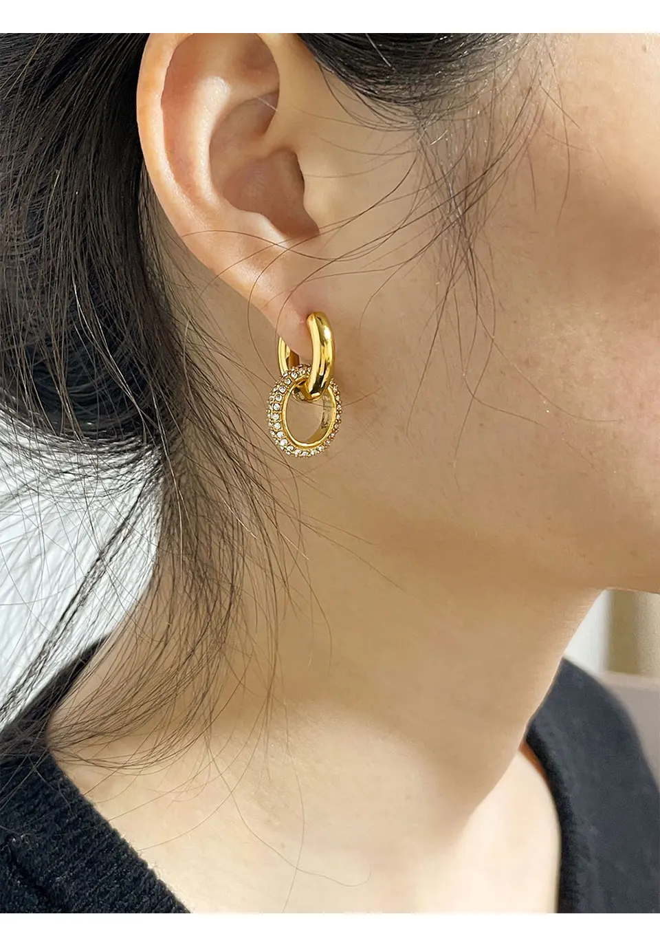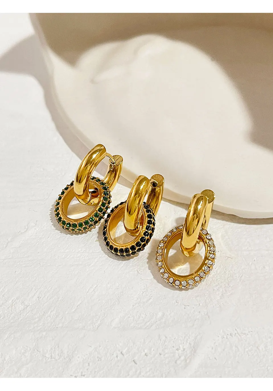 SPECIFICATIONSMaterial: Stainless SteelPacking: Opp Bag+CardPlace of Origin: From ChinaStyle: Double Hoop Earrings with Stunning Cz ZirconsFeature: Statement...
