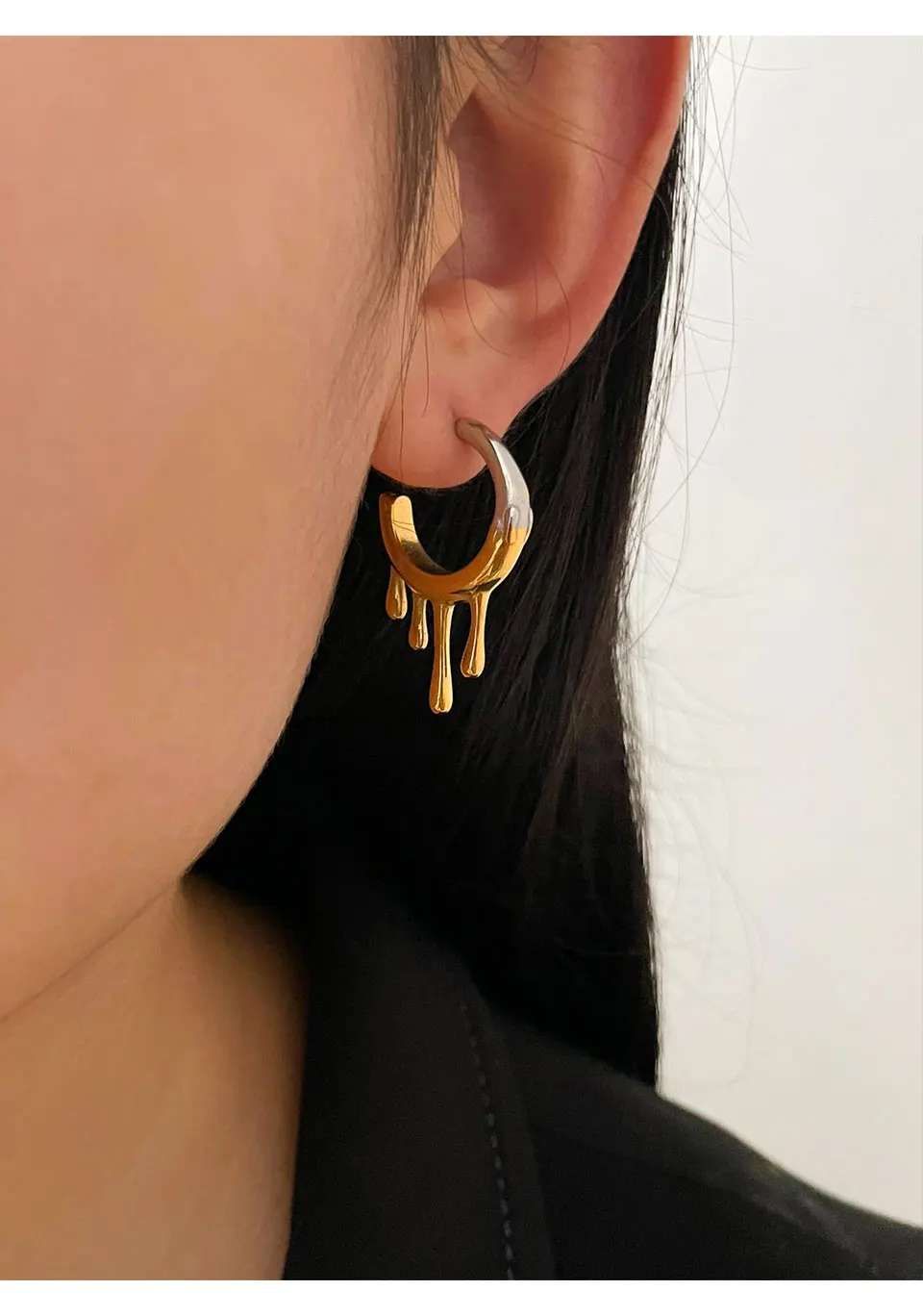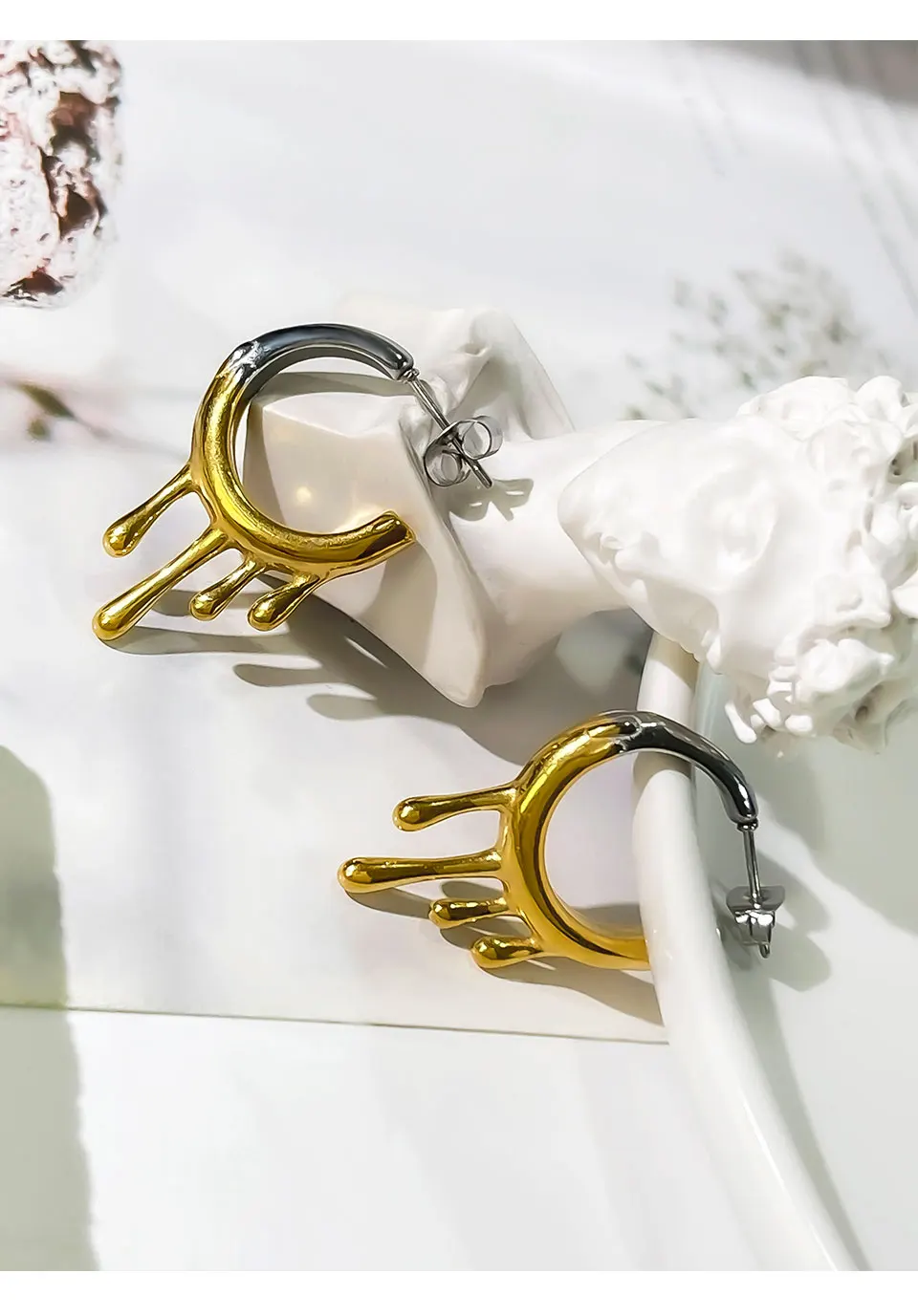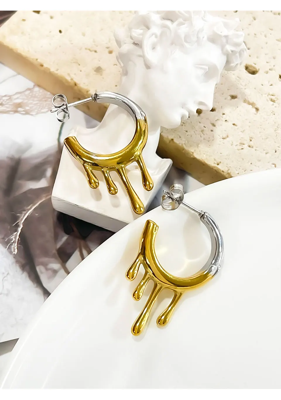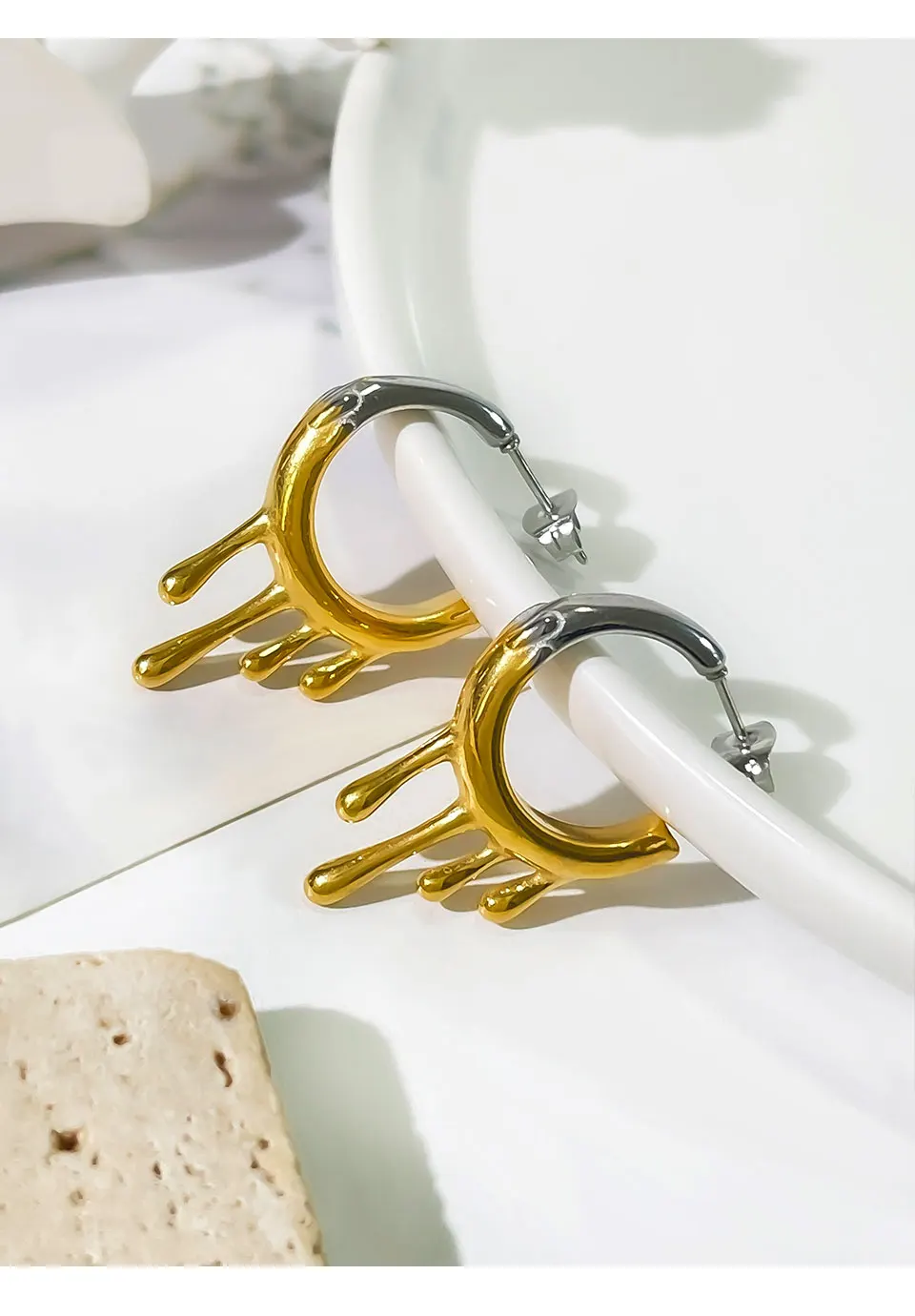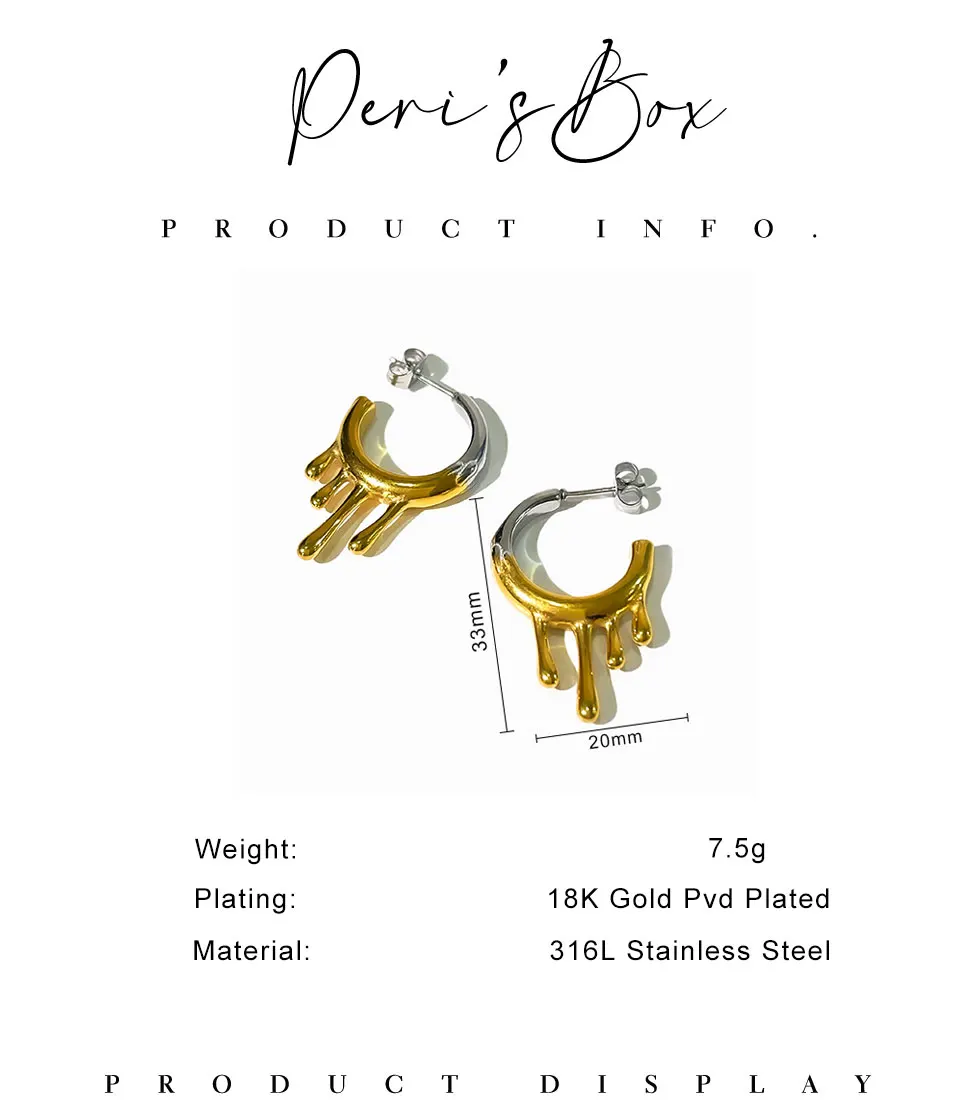 Peri'sbox Statement Gold Silver Double Color Irregular Hoop Earrings for Women Stainless Steel Waterproof Fashion Party Jewelry
