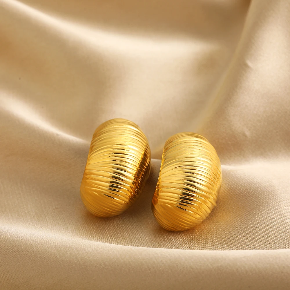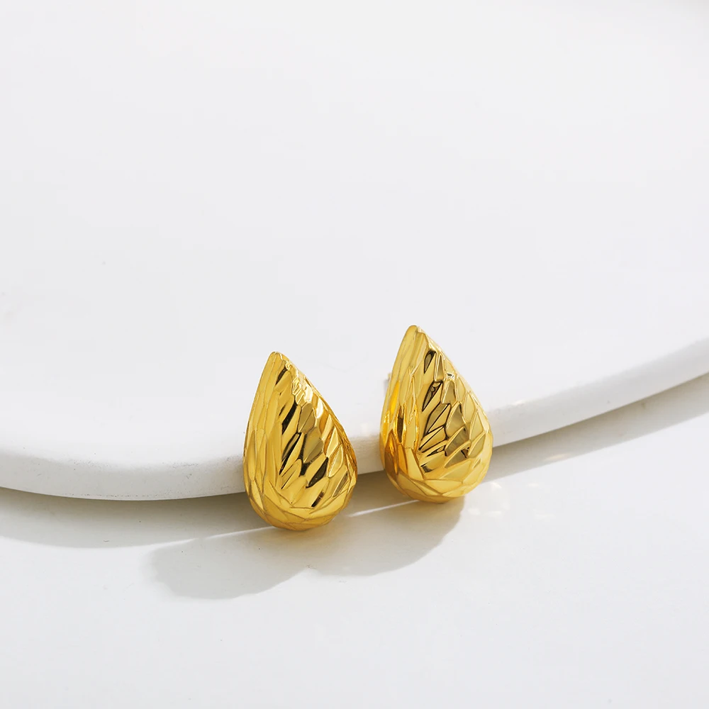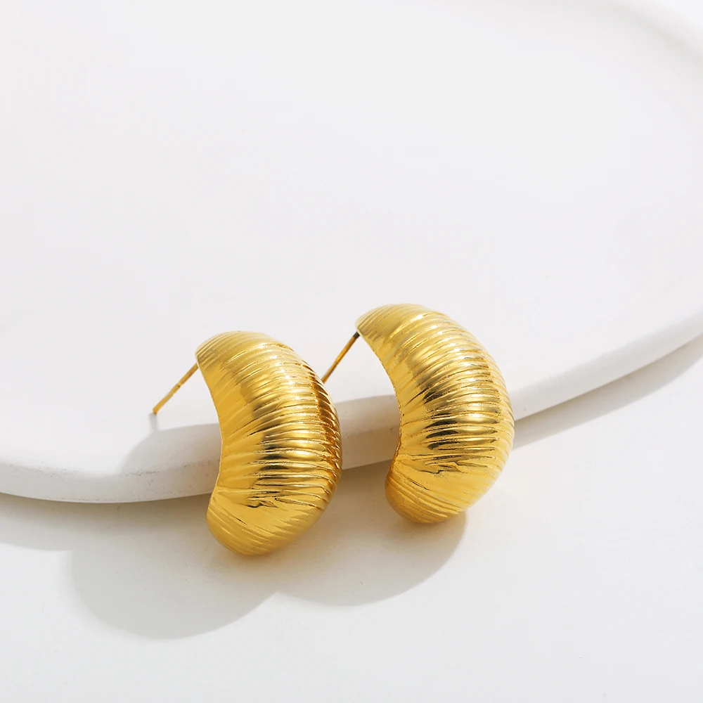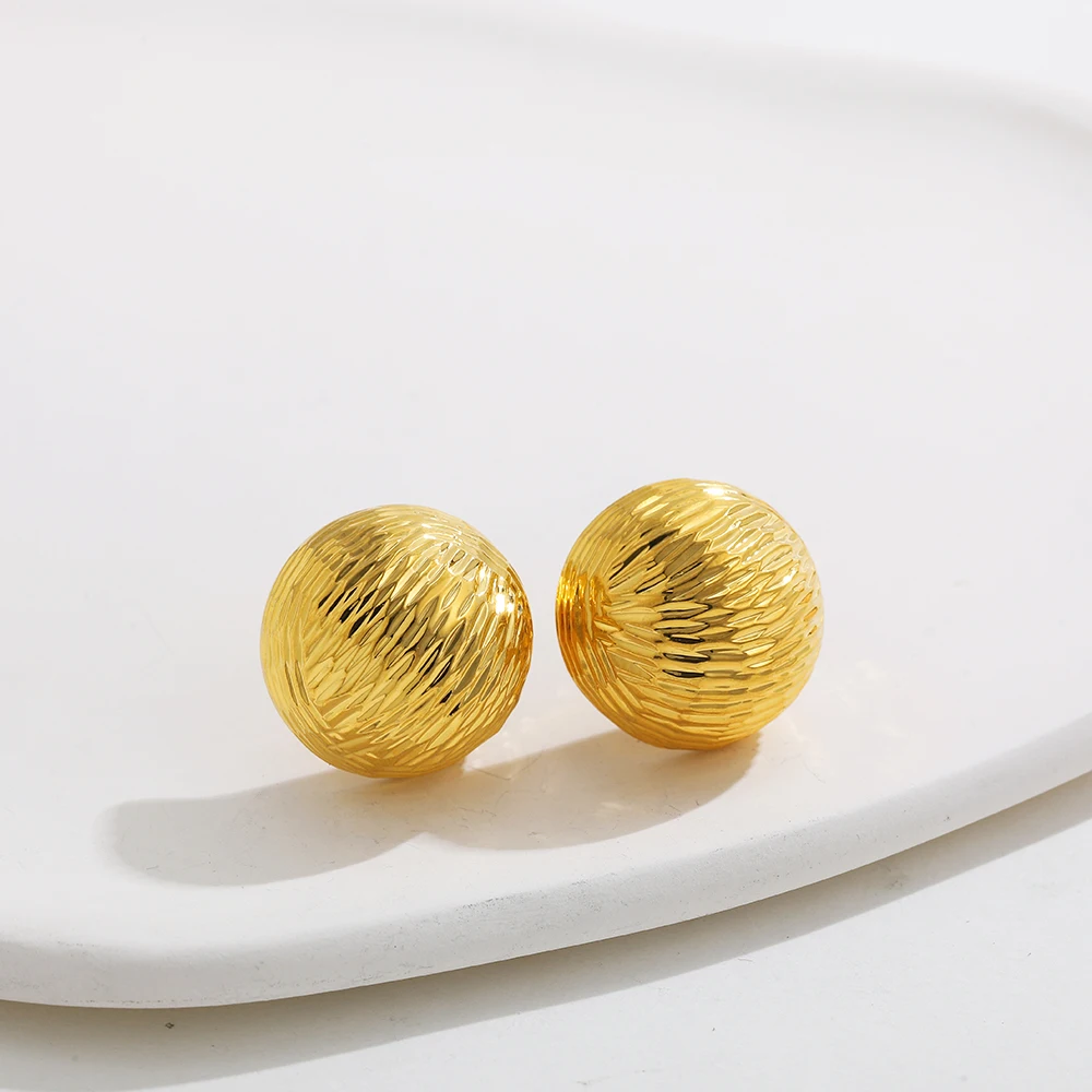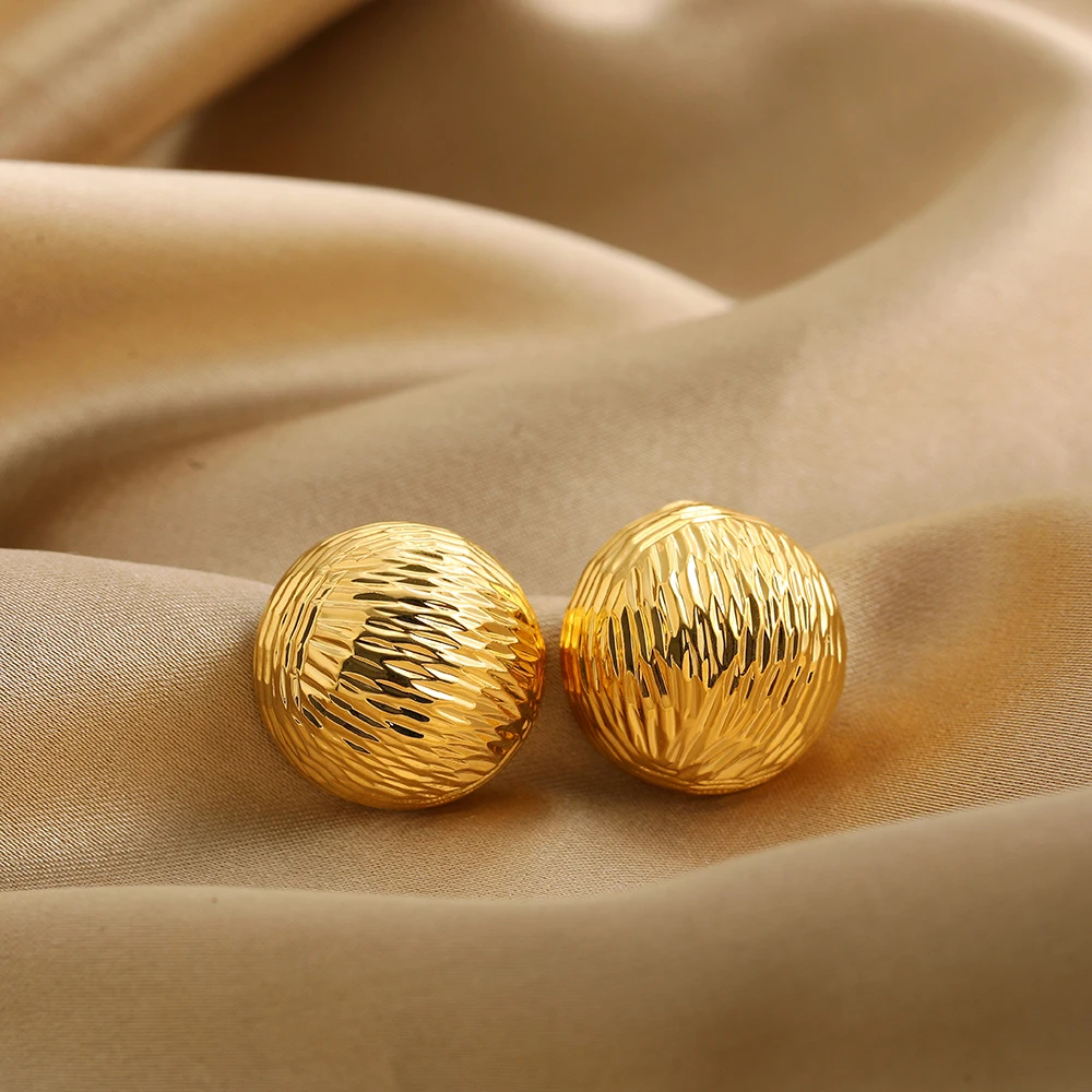 Retro Stainless Steel Geometric Irregular Texture Hemispheres Earrings Gold Plated Waterdrop Waterproof Small Studs Ear Jewelry