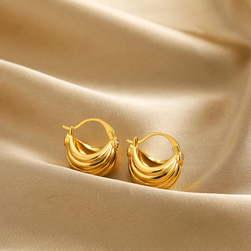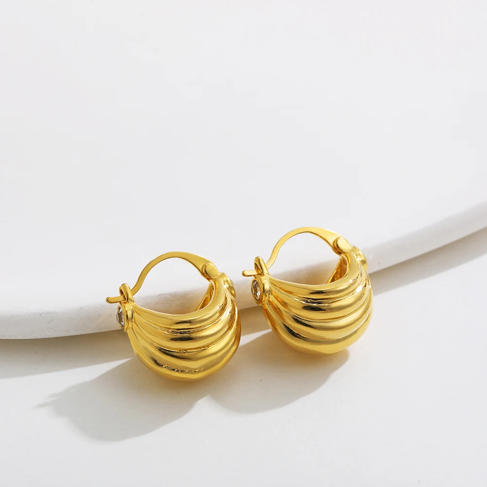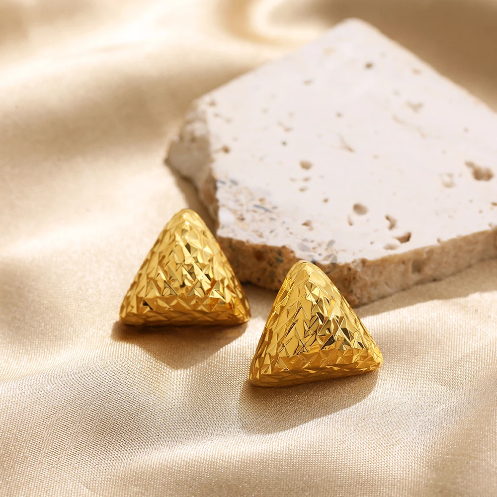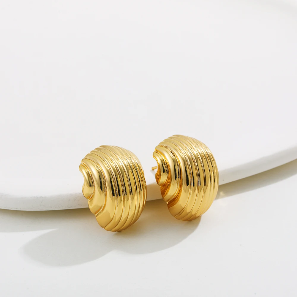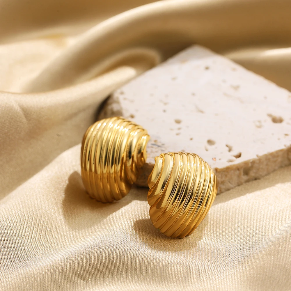 Retro Stainless Steel Geometric Irregular Texture Hemispheres Earrings Gold Plated Waterdrop Waterproof Small Studs Ear Jewelry