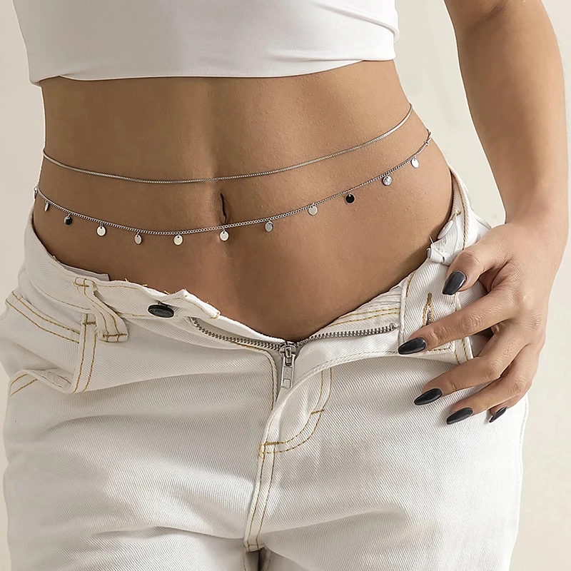Sexy Double Thin Chain Women's Waist Chain Charming Butterfly Stainless Steel Belly Chain Summer Beach Bikini Body Jewelry