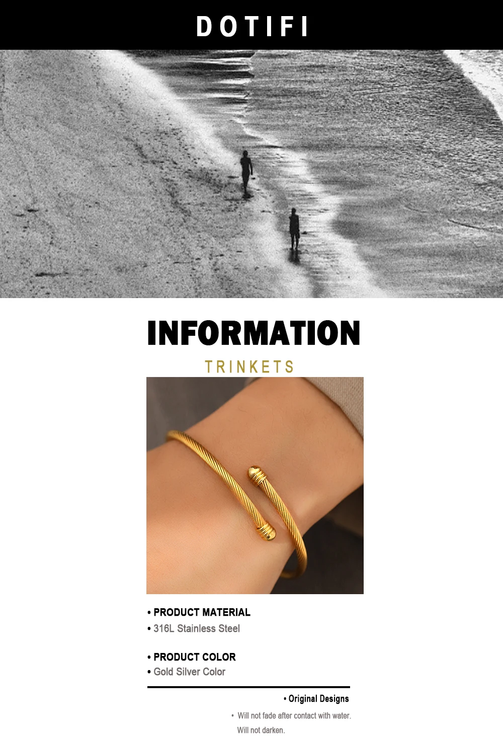 SPECIFICATIONSBrand Name: DOTIFIOrigin: Mainland ChinaGender: UnisexMetals Type: STAINLESS STEELBracelets Type: Cuff BraceletFine or Fashion: fashionStyle: TRENDYMaterial: MetalPlating:...