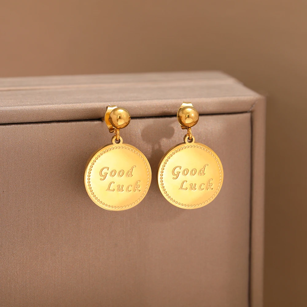 Stainless Steel Earrings Good Luck Pendants Bell Light Luxury Dangle Earrings For Women Jewelry New Trendy