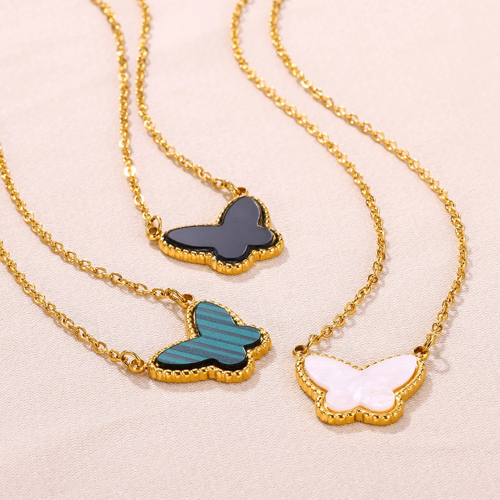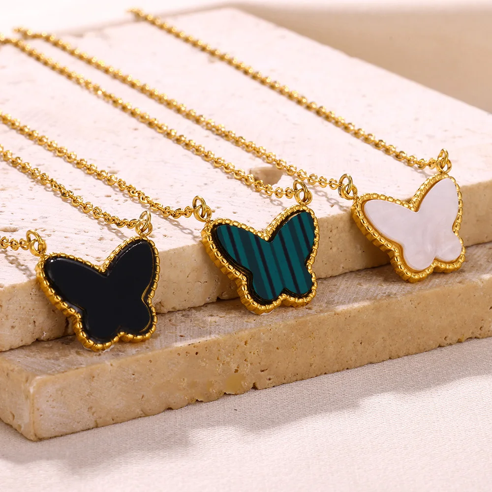 Stainless Steel Heart Hazelnut Avocado Pendant Necklaces For Women Classic Gold Color Butterfly Necklace Valentine's Day Jewelry