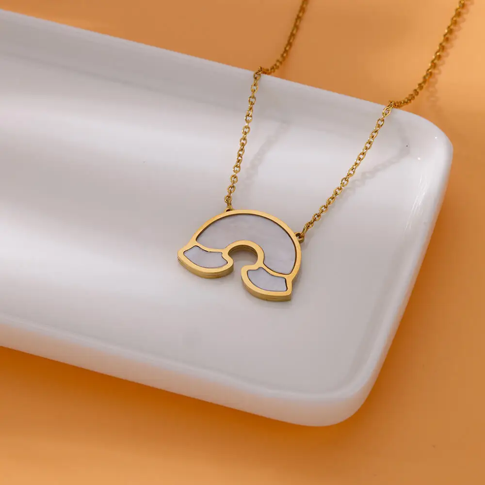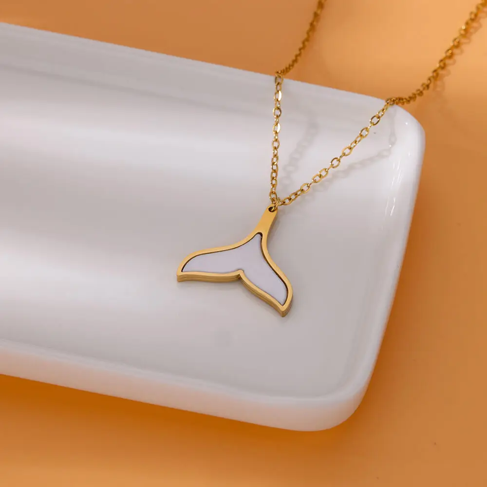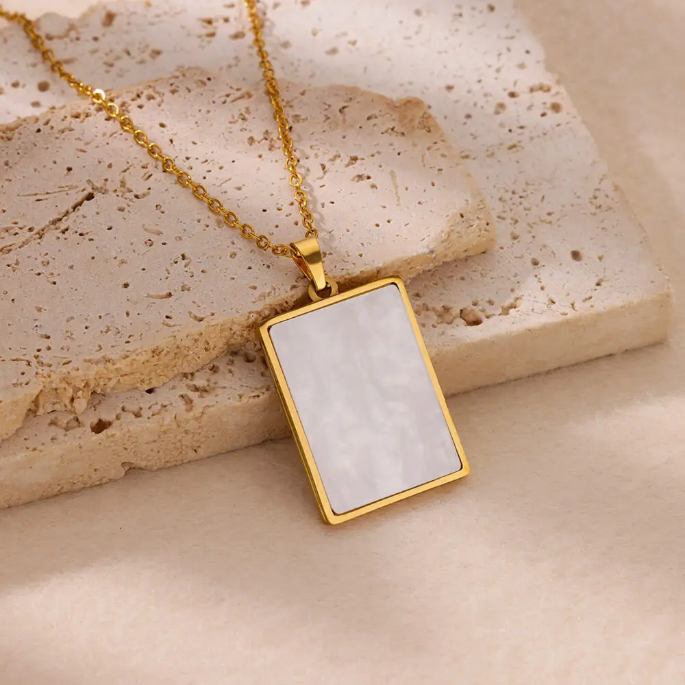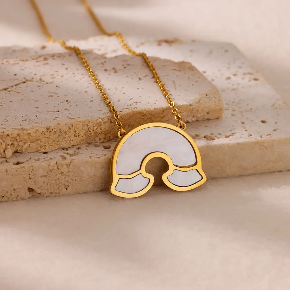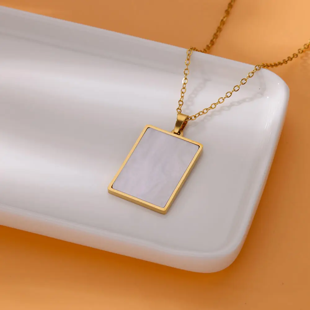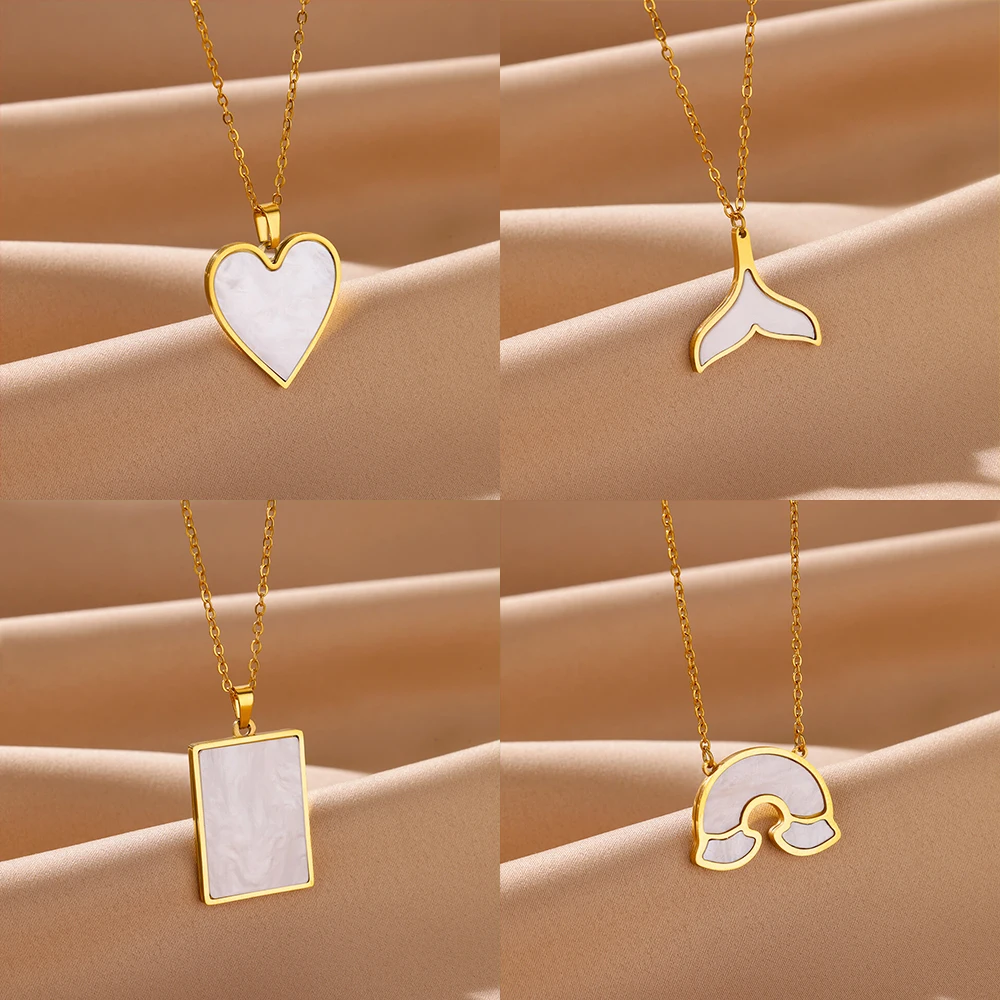 Stainless Steel Love Heart Necklace Clavicle Chain Gold Color Acrylic Square Fishtail Rainbow Necklace For Women Jewelry Gift