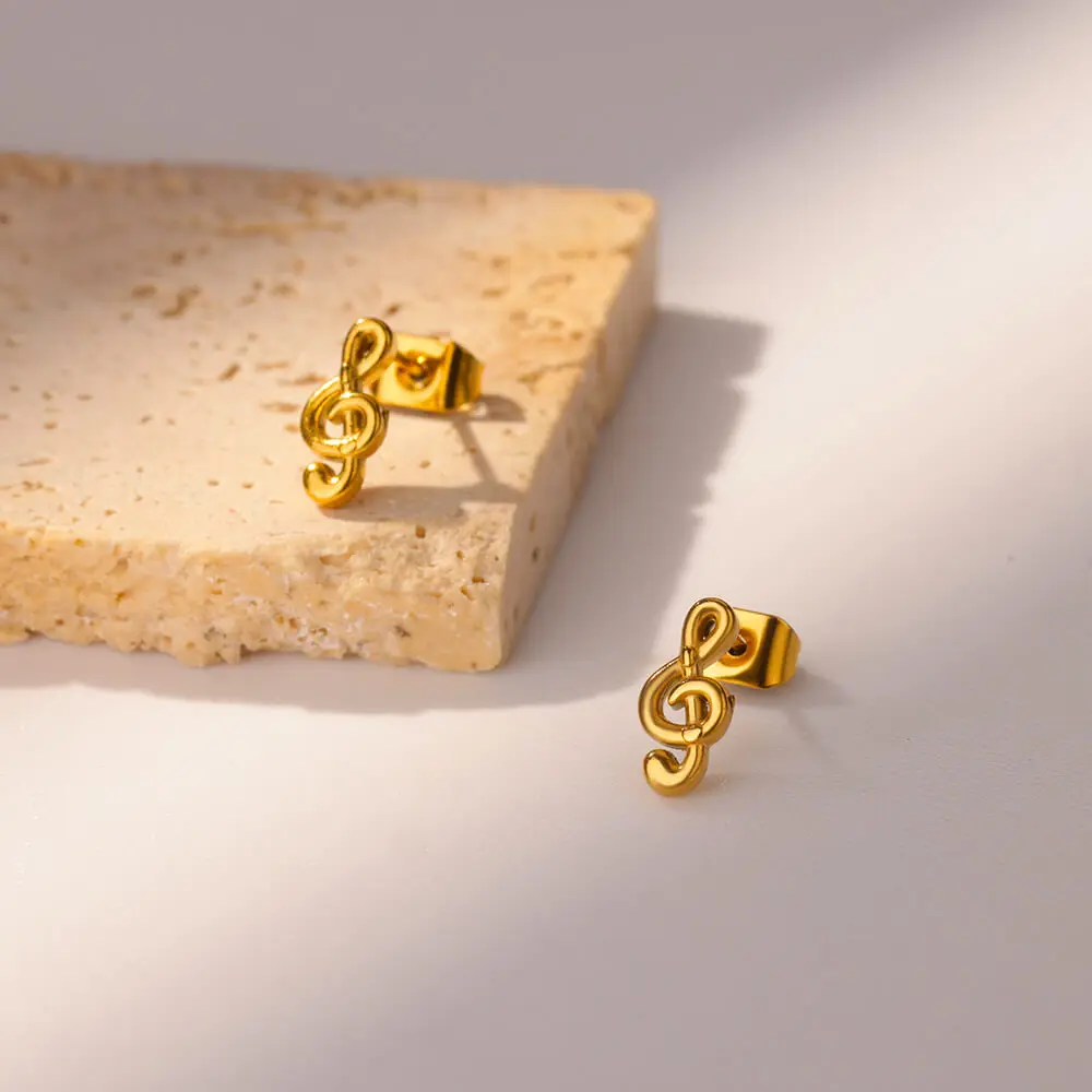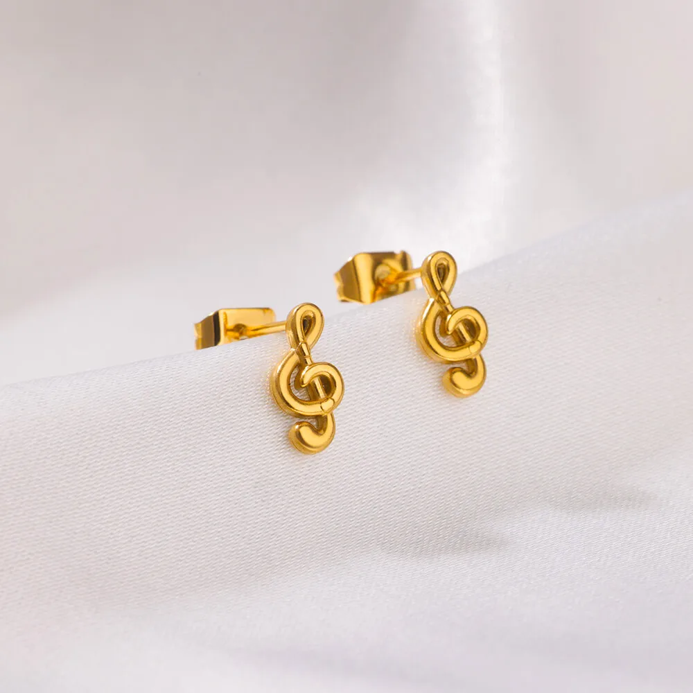 Stainless Steel Musical Note Earrings For Women Geometric Earring Waterproof Vintage Trend Wedding Fashion Jewelry Gift aretes