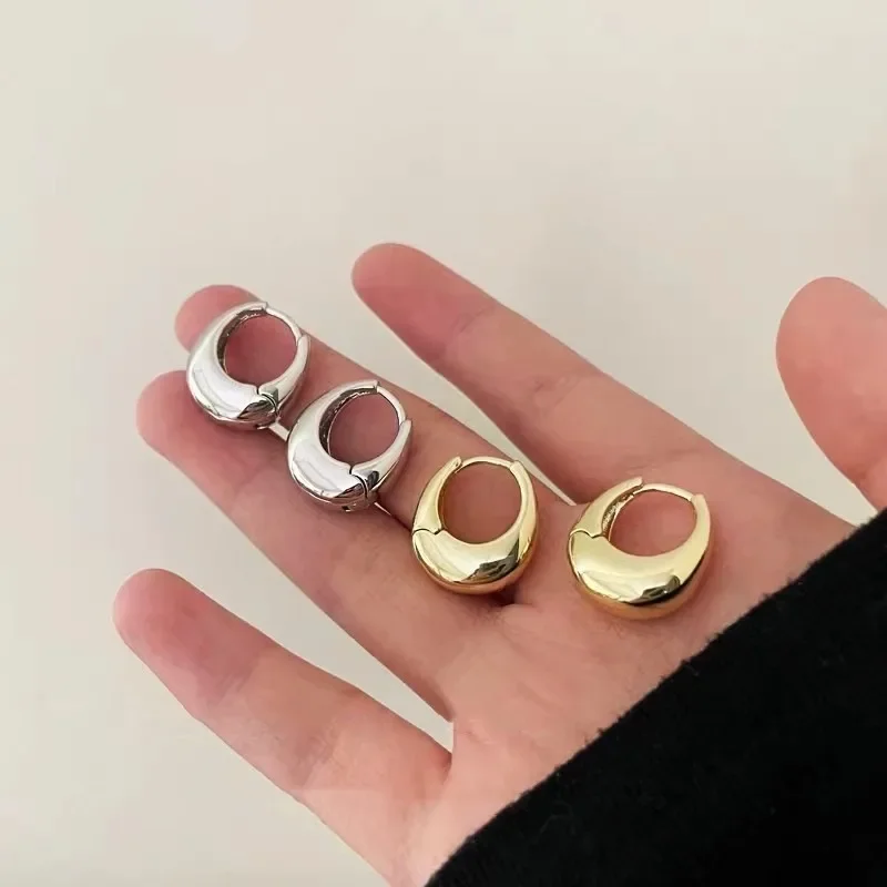 Stainless Steel Smooth Metal Chunky Hoop Earrings for Women Fashion Round Circle Hoops Statement Earrings 2024 Trendy Jewelry