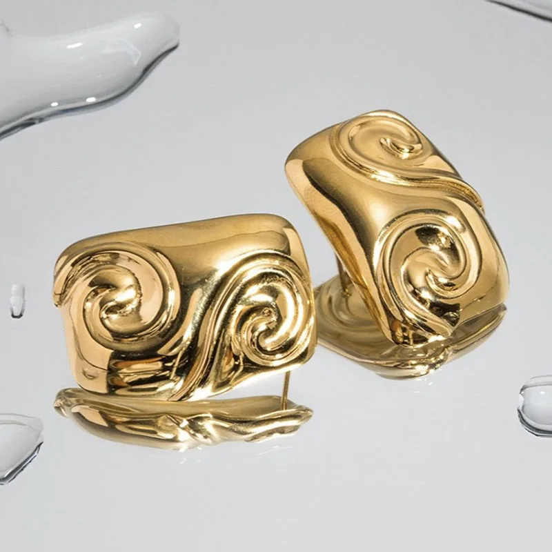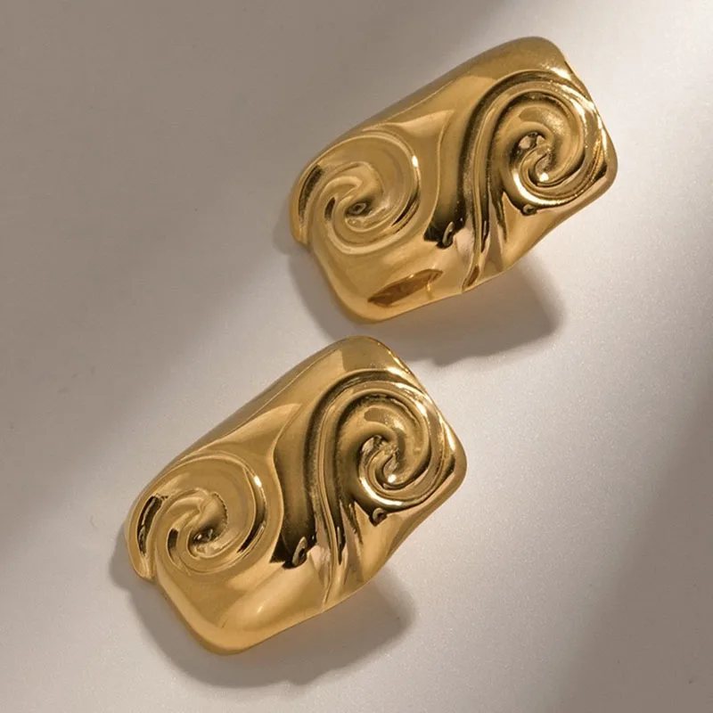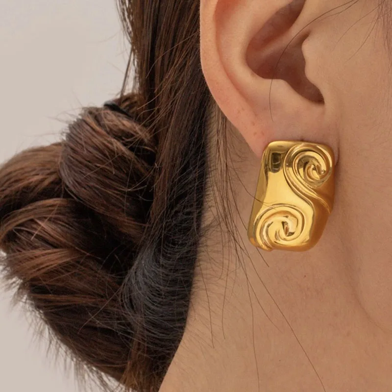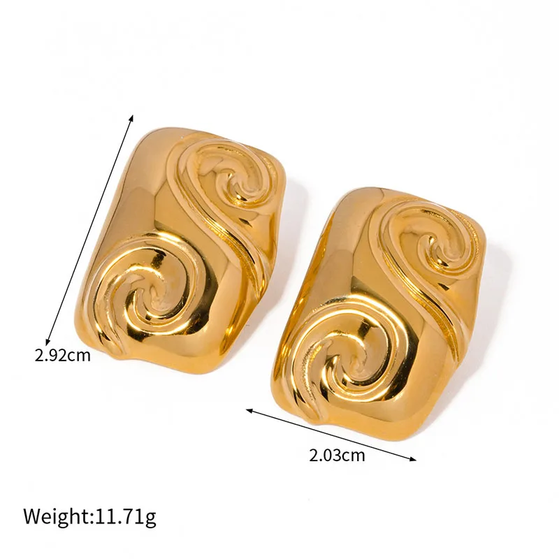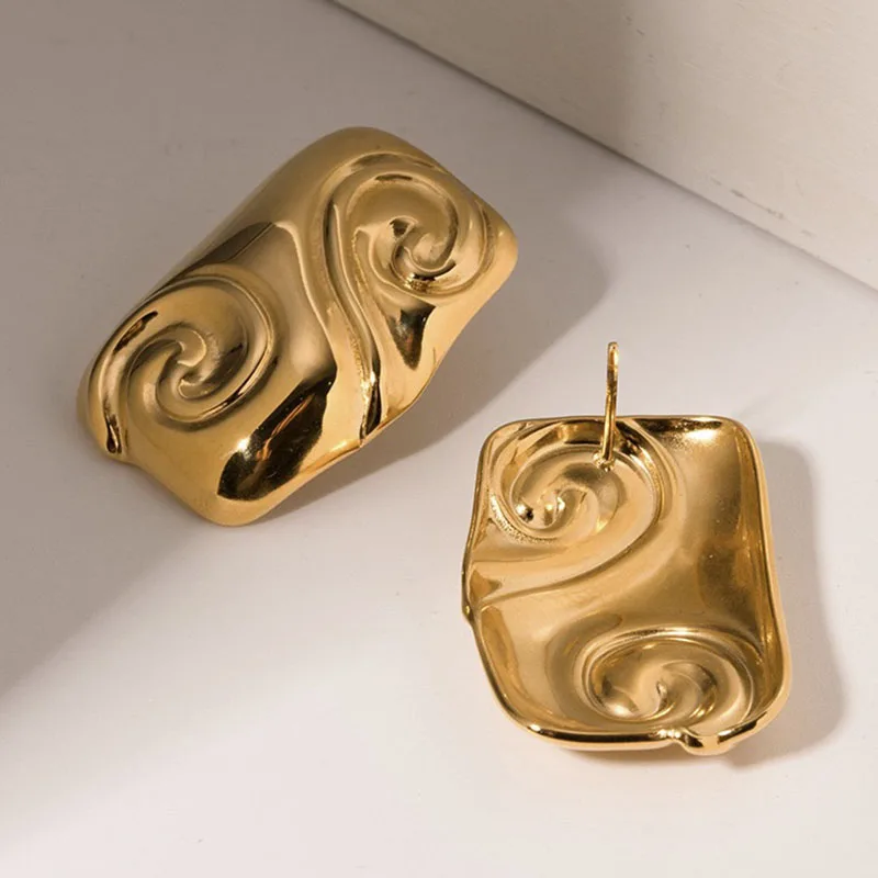 Swirling pattern rectangle statement earrings stainless steel earrings for women vintage simple waterproof jewelry