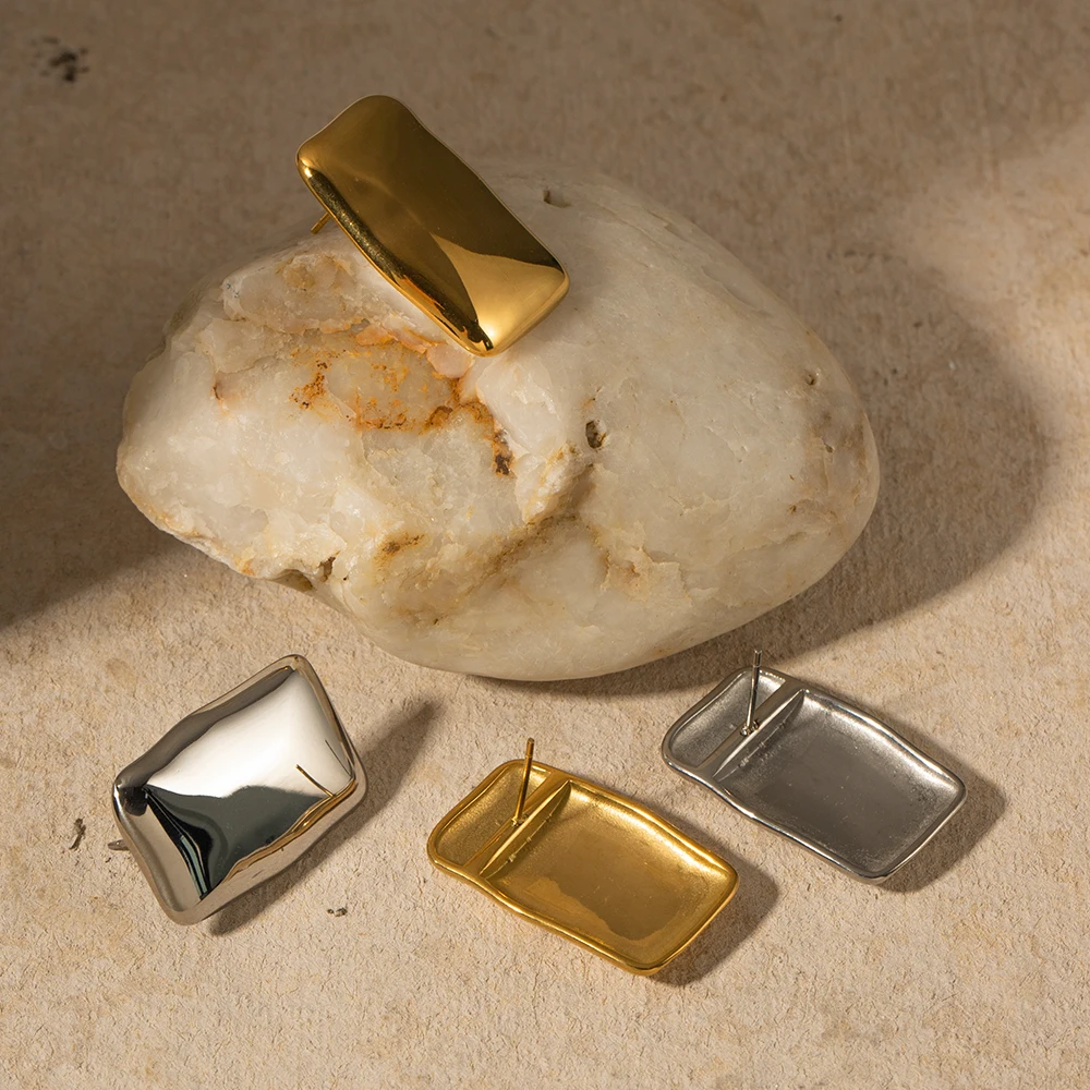 Tarnish Free Stainless Steel Chunky Geometric Unusual Rectangle Earrings Geometric Frosted 18k PVD Gold Plated Jewelry For Women