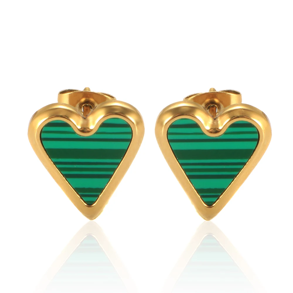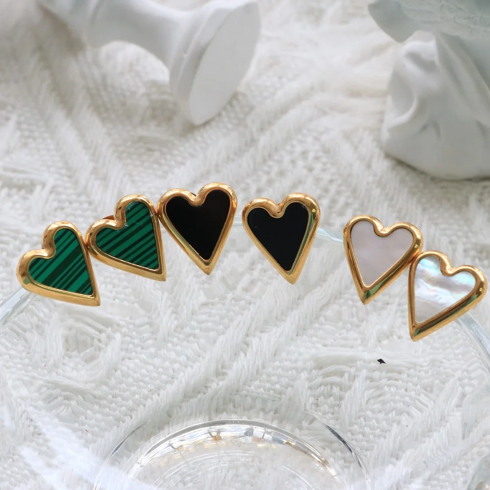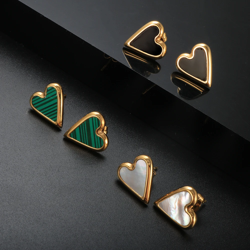 Trend Natural Malachite Love Heart Stud Earrings For Woman Girls Stainless Steel Black/White/Green Shell Birthday Jewelry Gifts