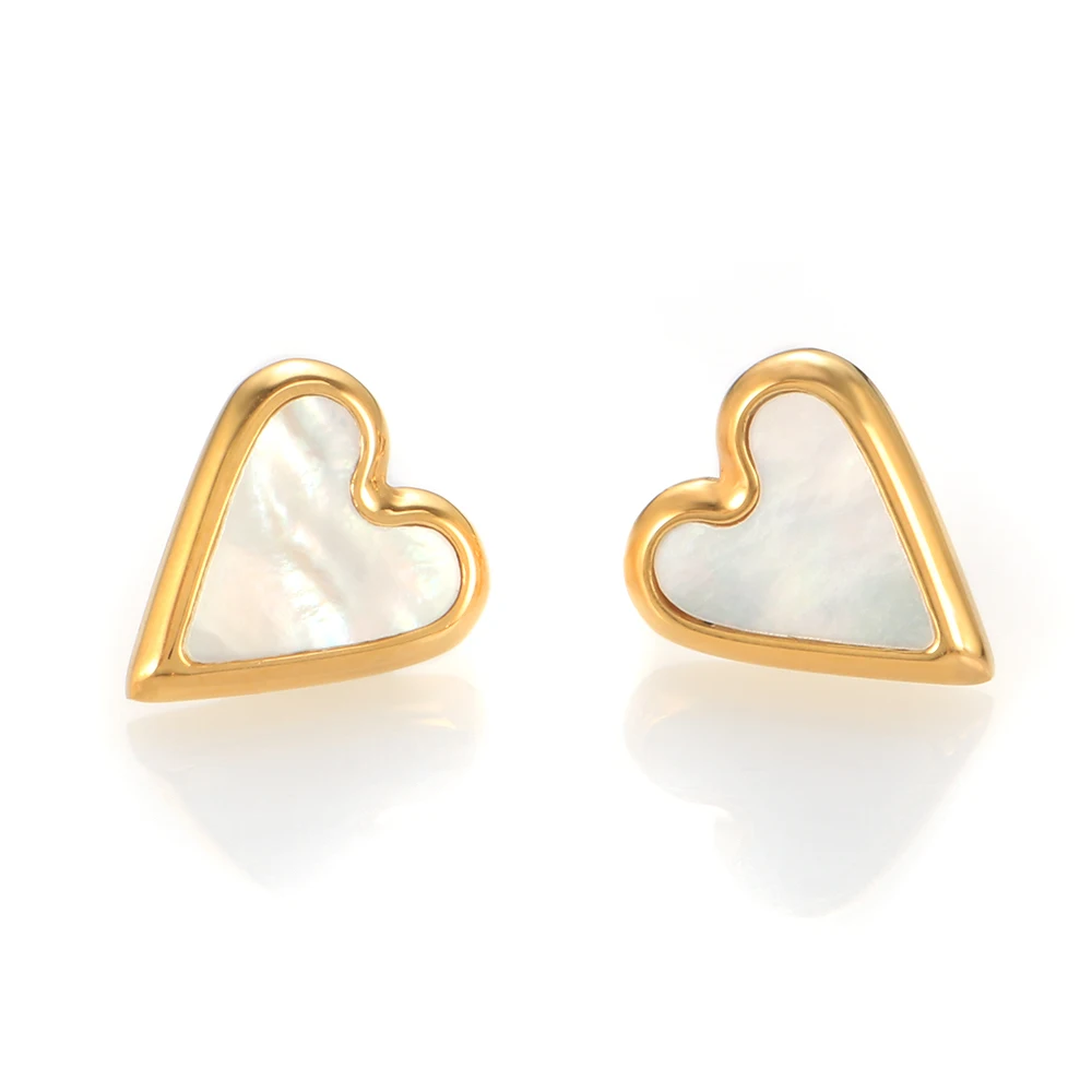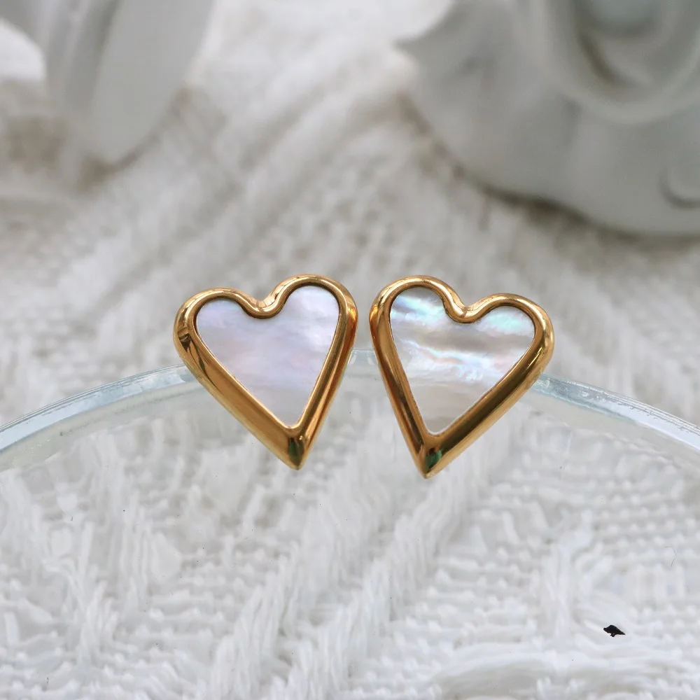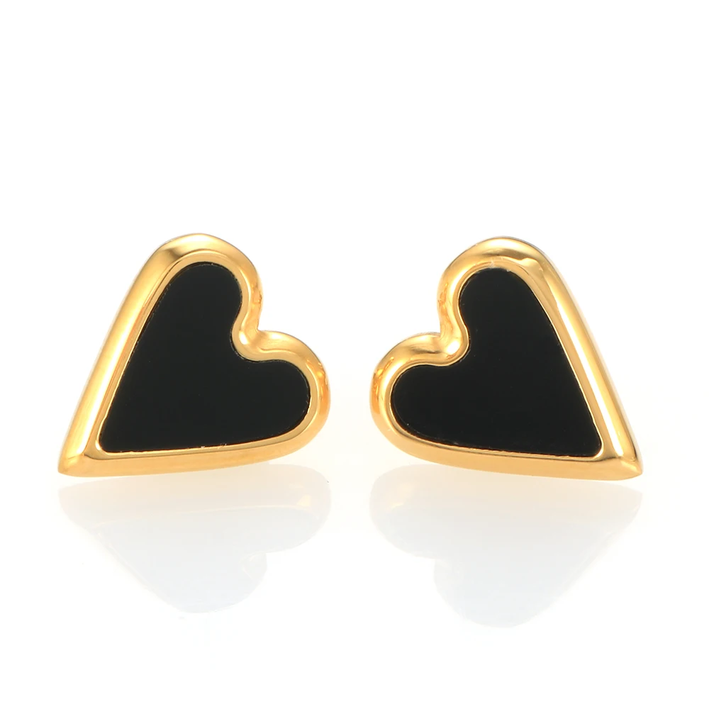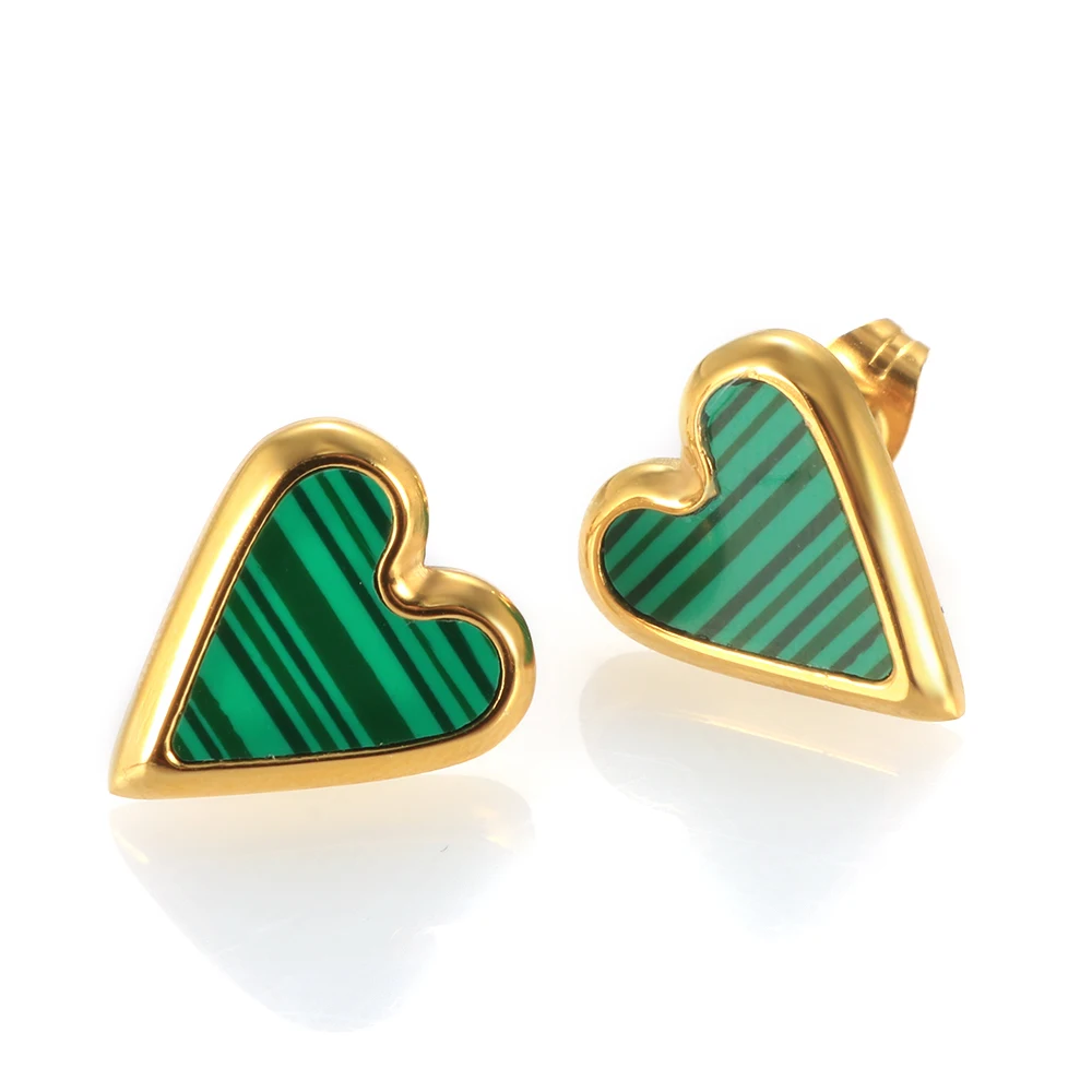 Trend Natural Malachite Love Heart Stud Earrings For Woman Girls Stainless Steel Black/White/Green Shell Birthday Jewelry Gifts