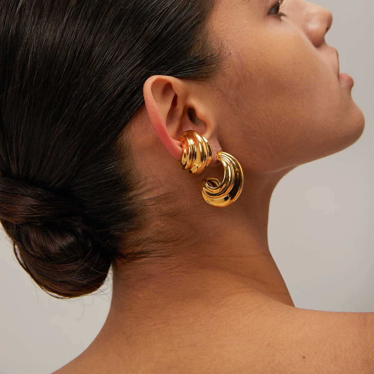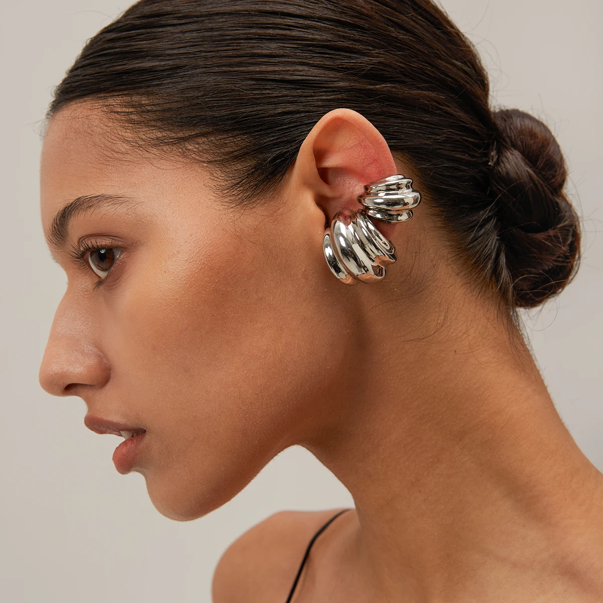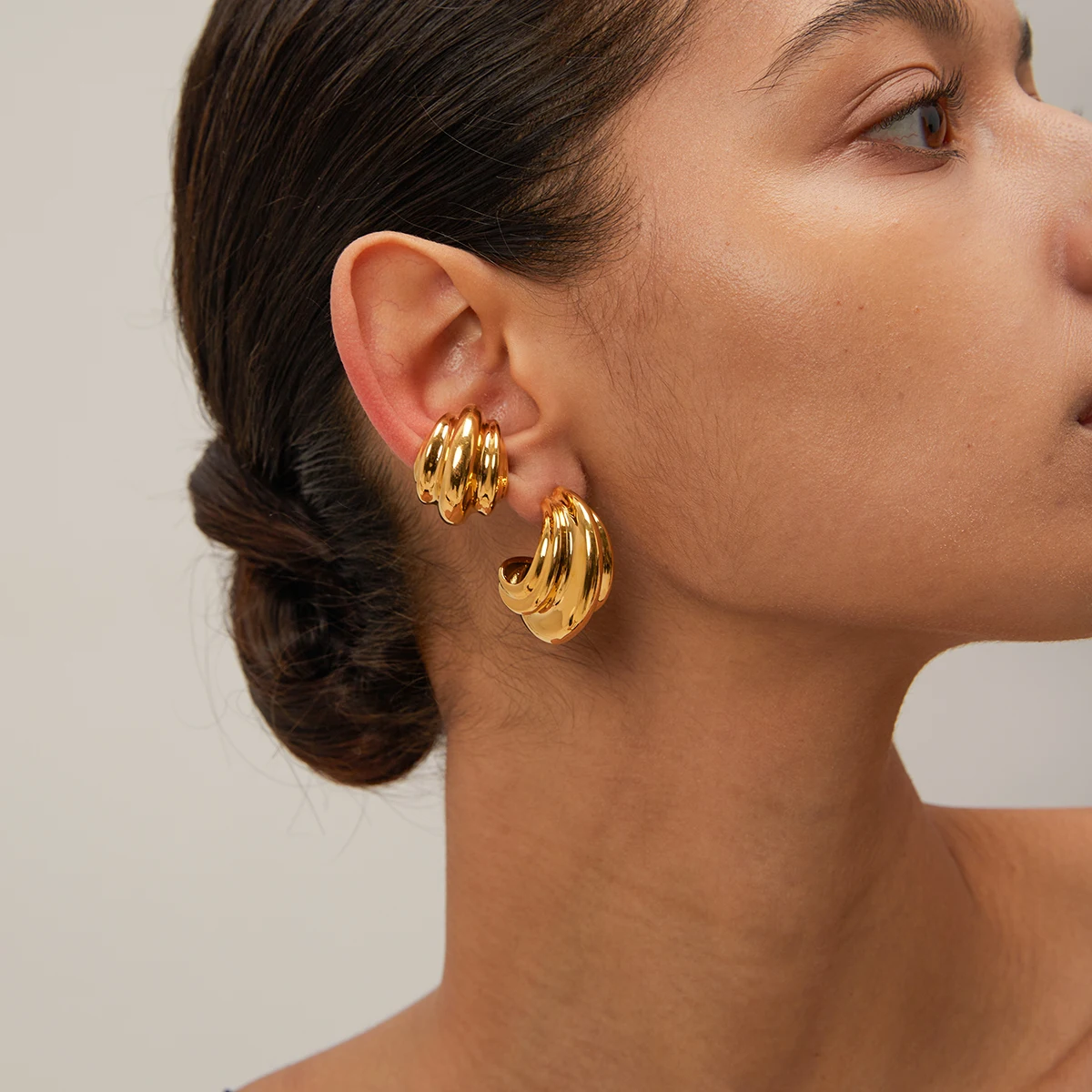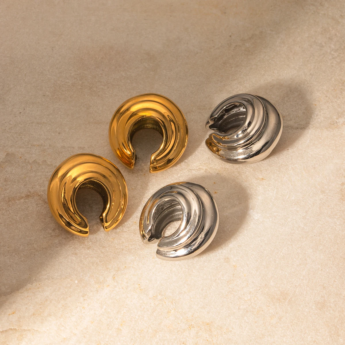 Uworld Designer Minimalist Geometric Stainless Steel C-shaped Hoop Ear Clip Small Earring Fashion Women Valentine's Day Gift