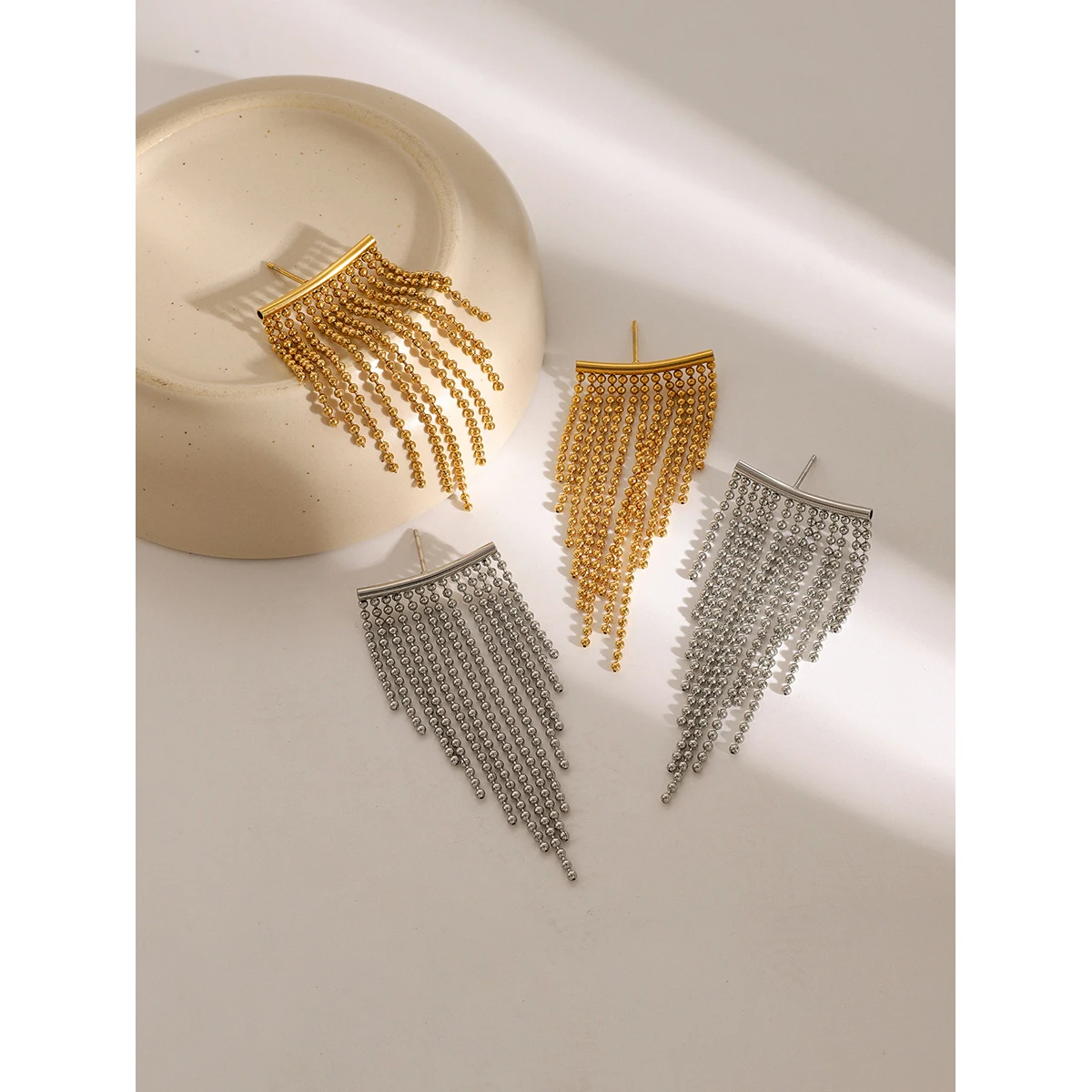 Uworld Fashion Stainless Steel Long Tassel Drop Dangle Party Earrings Metal Rust Proof 18K Gold Color Plated Charm Jewelry Bijou