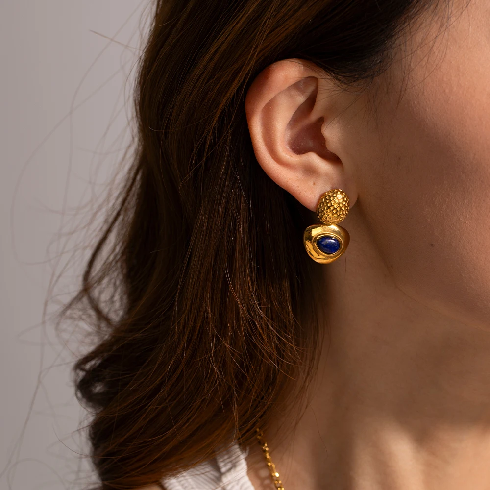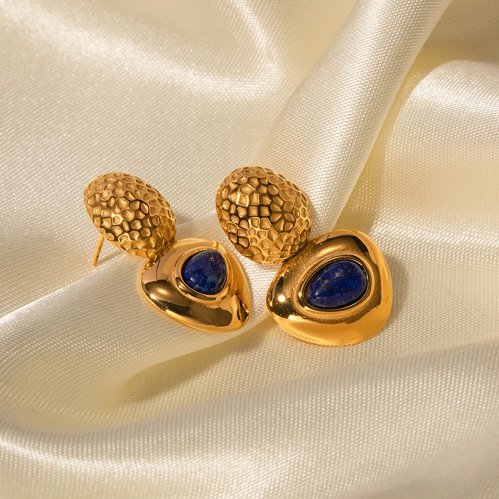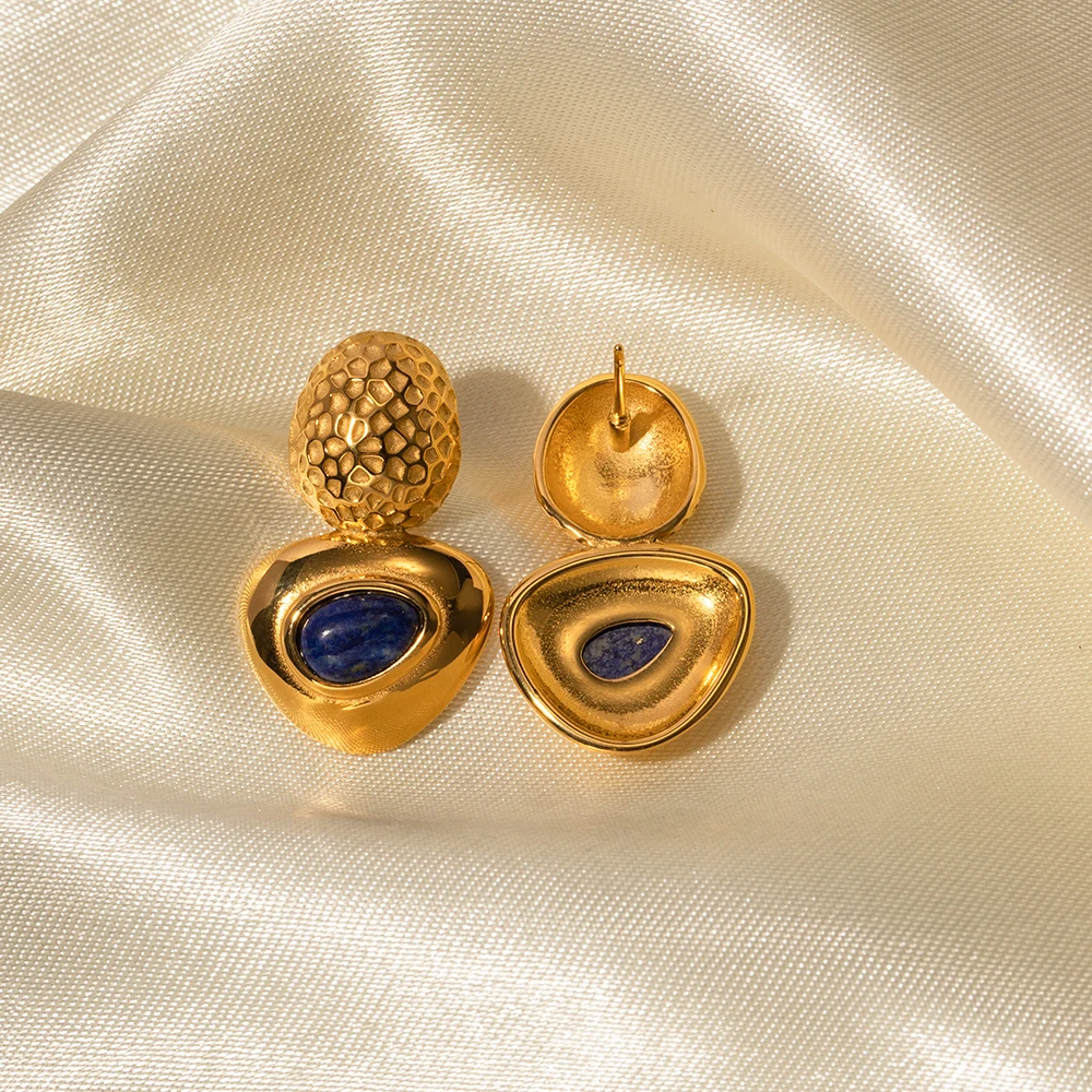 Uworld Oval hammer triangular Lazurite Designer Style 18K Gold-plated Stainless Steel Hoop earrings For Women