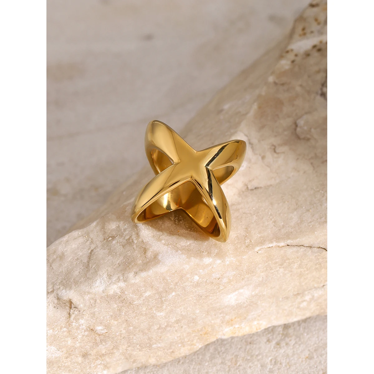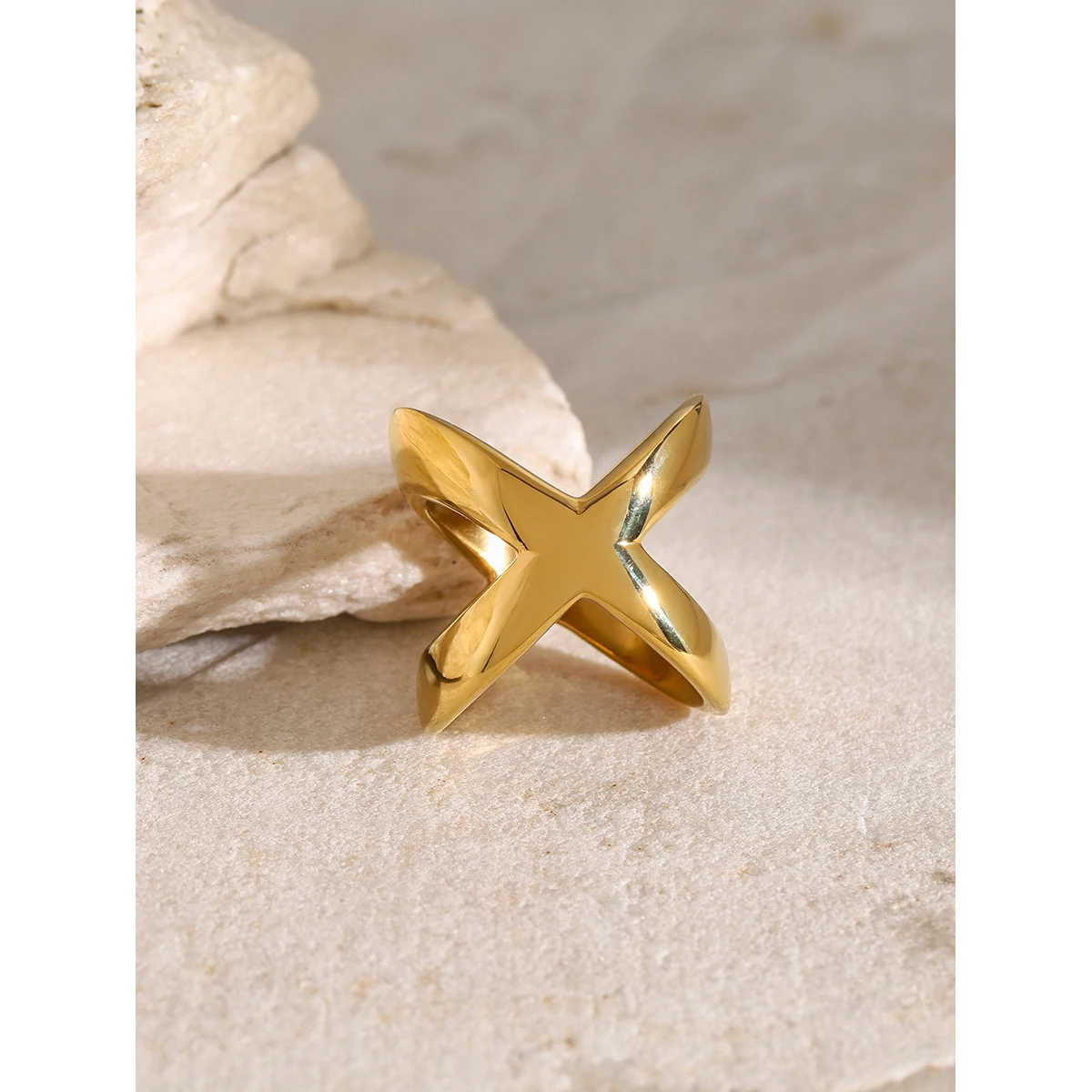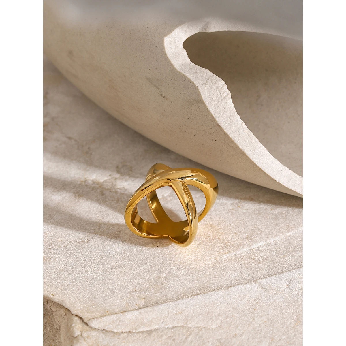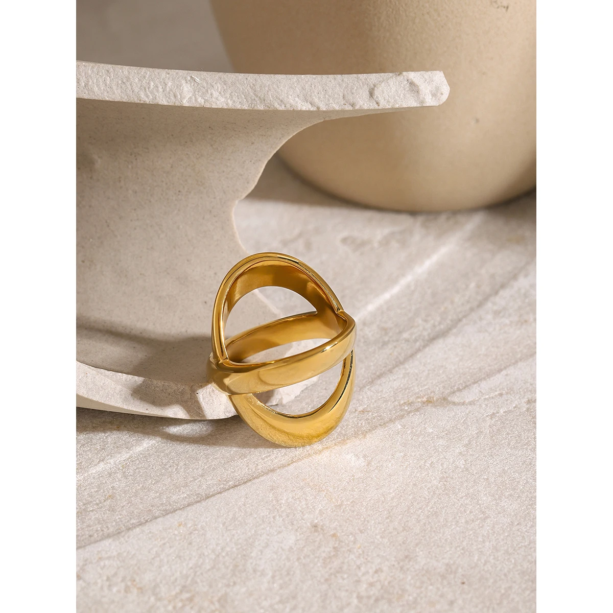 Uworld Stainless Steel Metal Overlap Ring Minimalist Fashion Waterproof Trendy Statement Jewelry 18k Gold Plated Bijoux Women